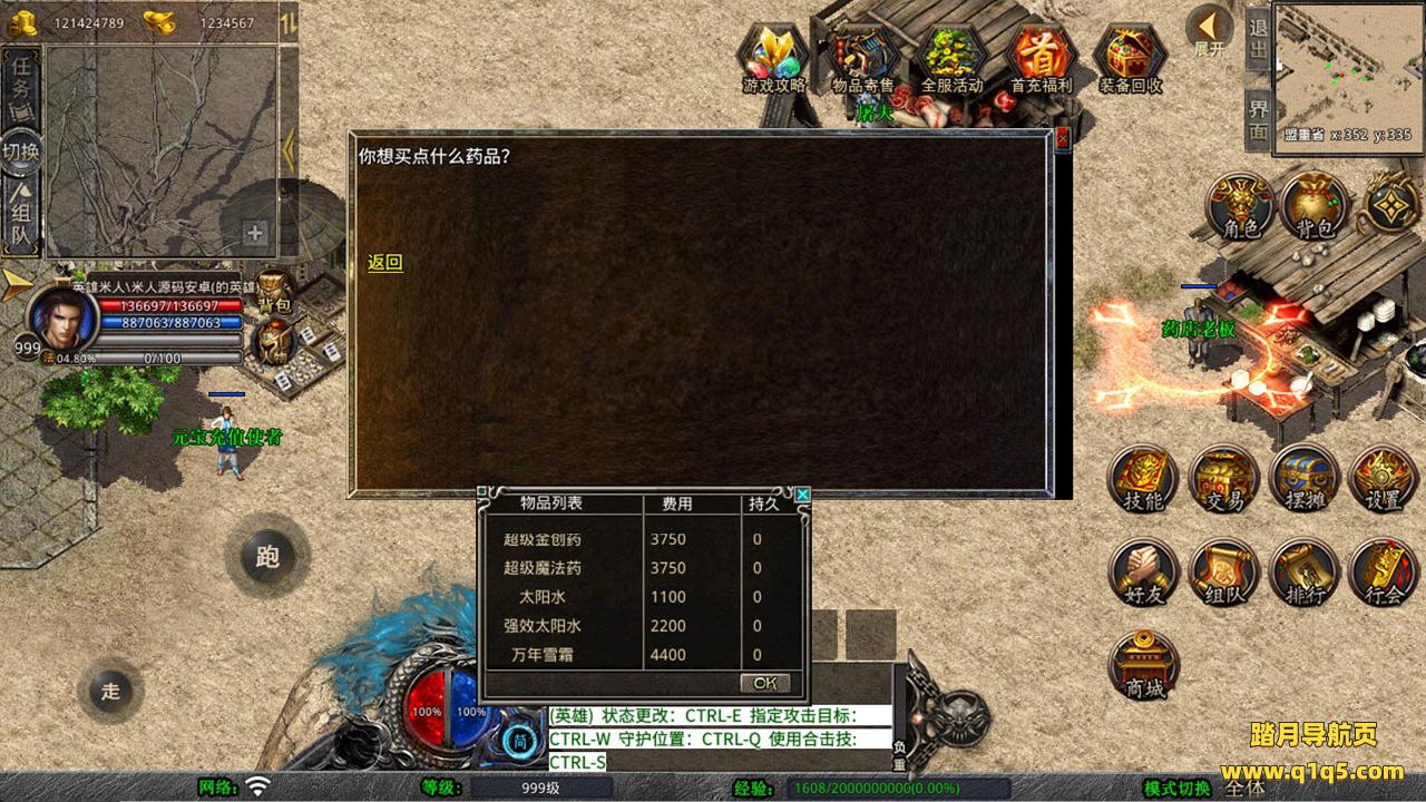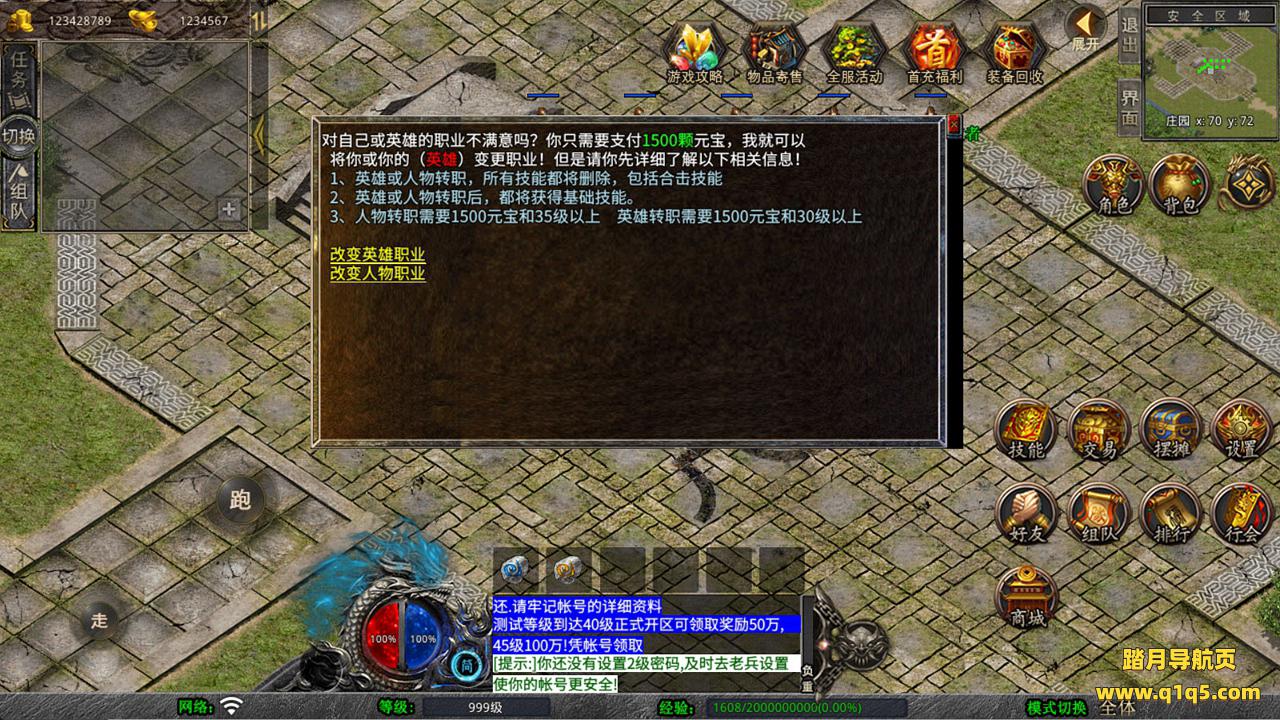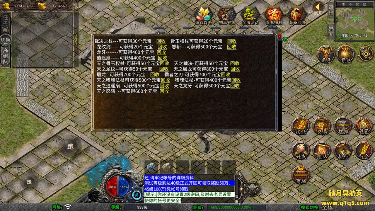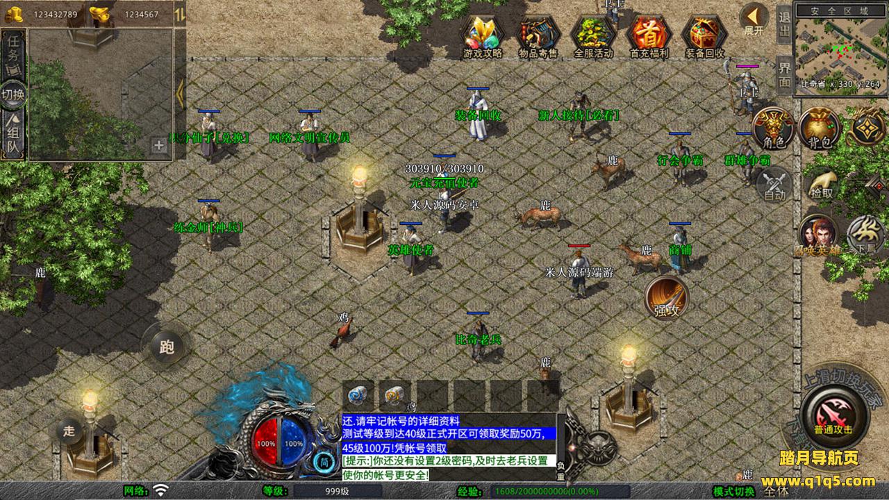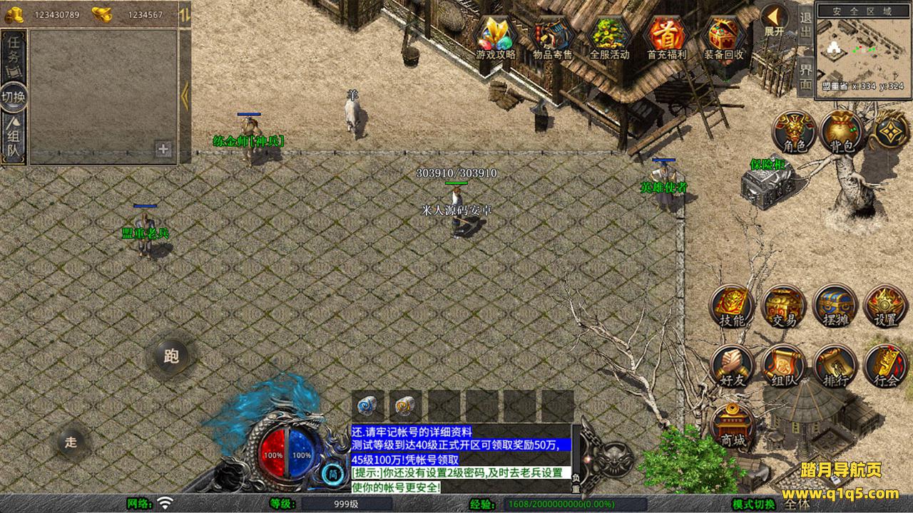 下面我们来测试下游戏里的功能看看。好了,其他功能就自行测试吧。更多的游戏资源可以访问www.q1q5.com下载,我们每款游戏资源均单独制作的有独立的视频架设教程,让小白也可以快速上手游戏架设,快来体验自己做GM的乐趣吧!