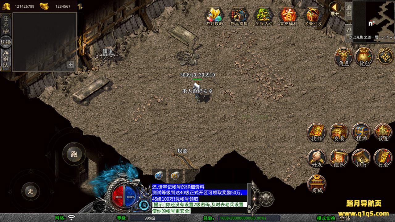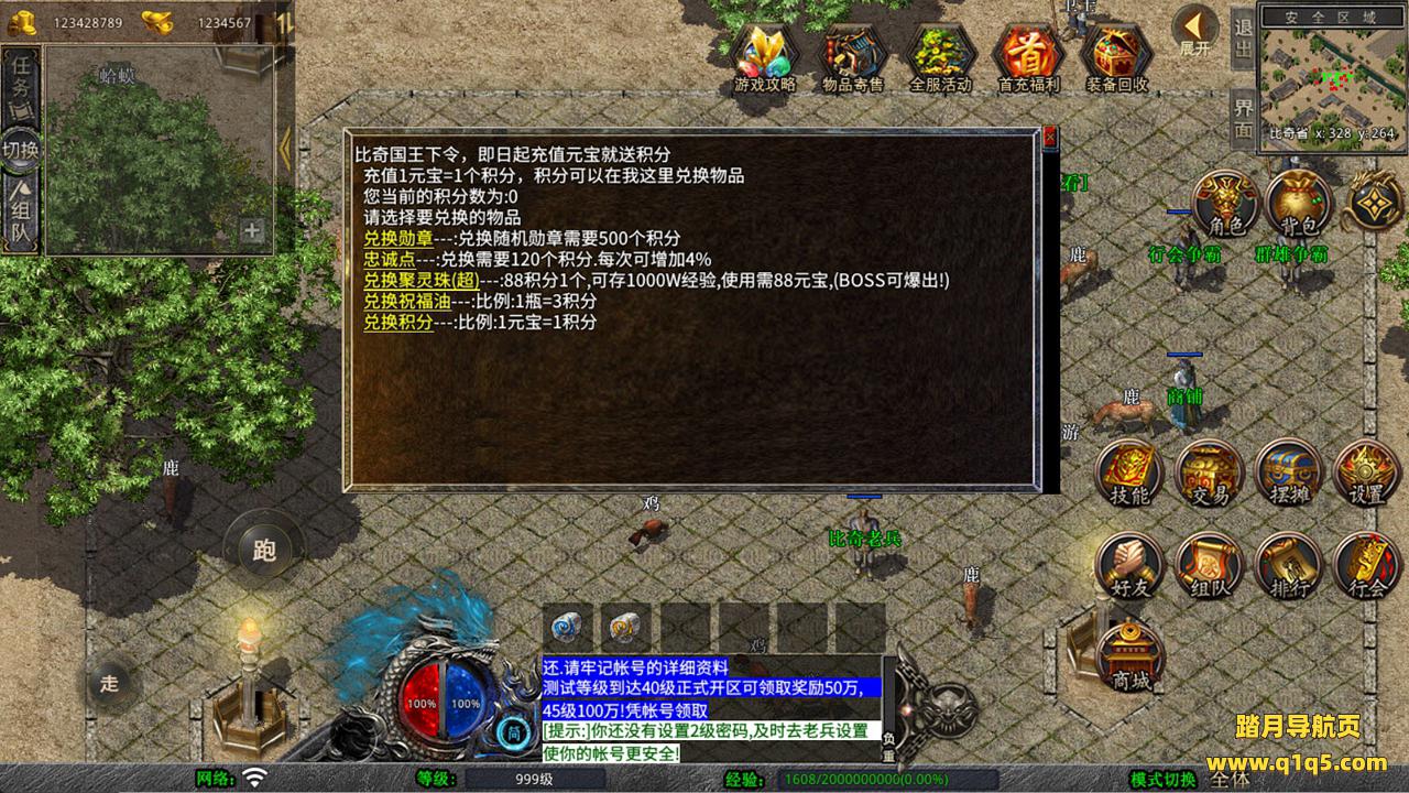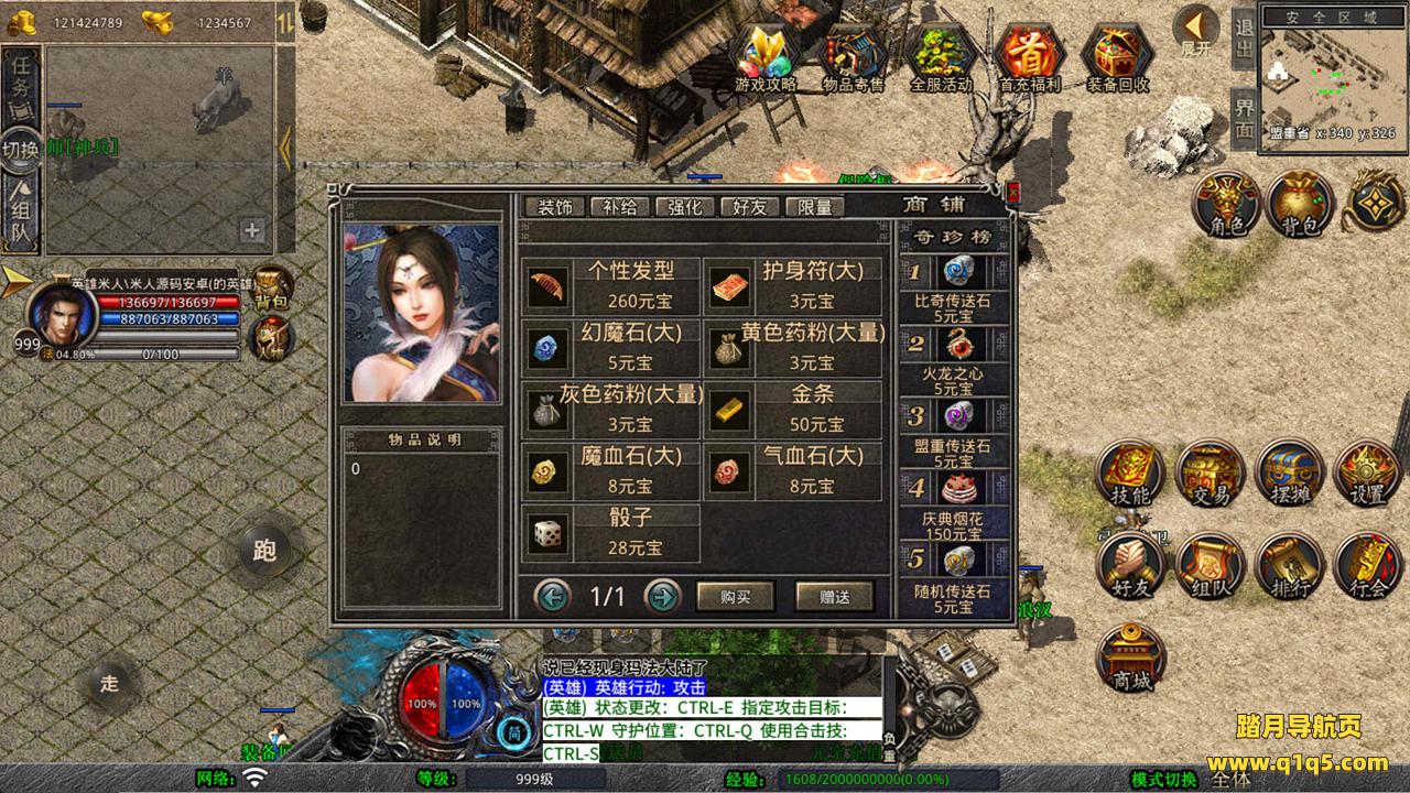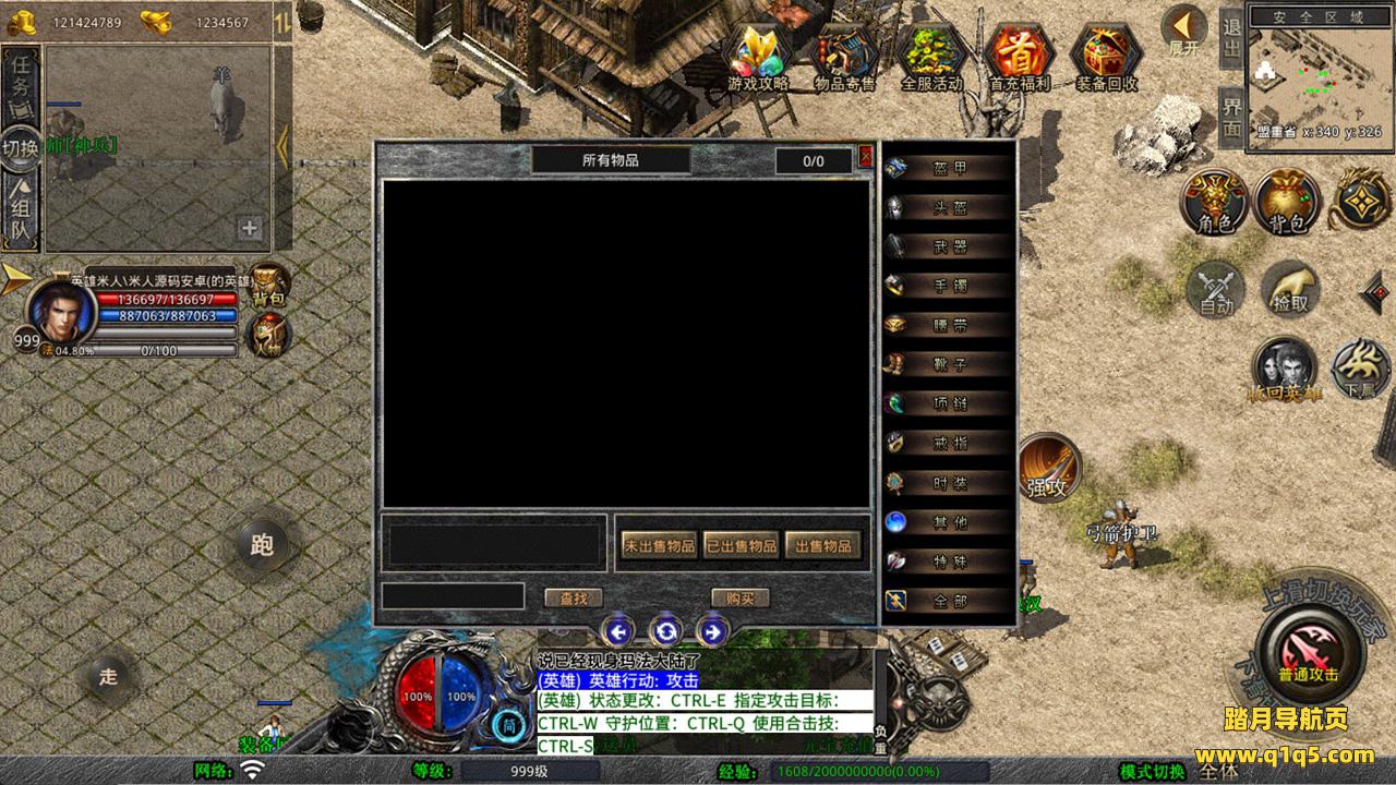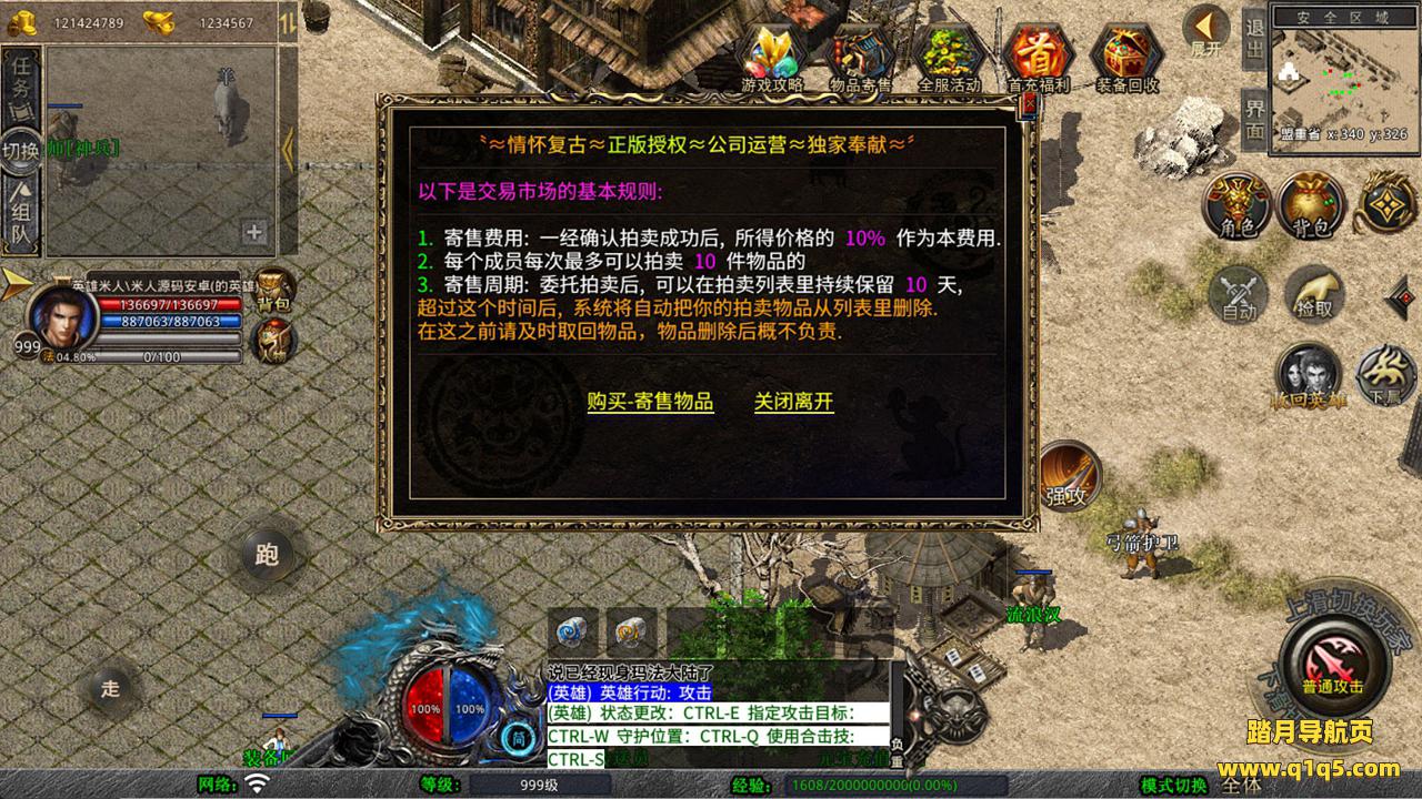 下面我们来测试下游戏里的功能看看。好了,其他功能就自行测试吧。更多的游戏资源可以访问www.q1q5.com下载,我们每款游戏资源均单独制作的有独立的视频架设教程,让小白也可以快速上手游戏架设,快来体验自己做GM的乐趣吧!