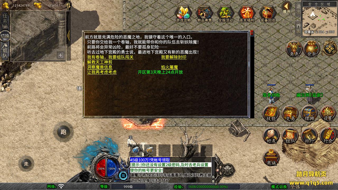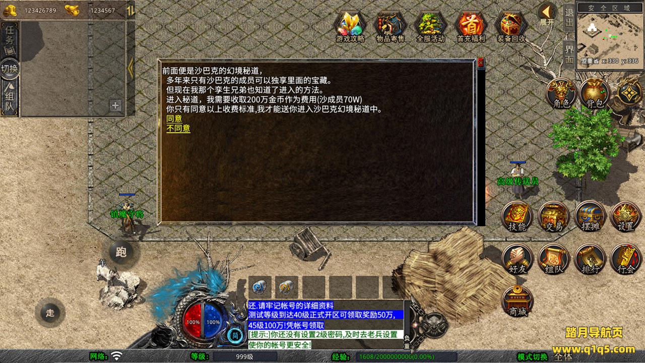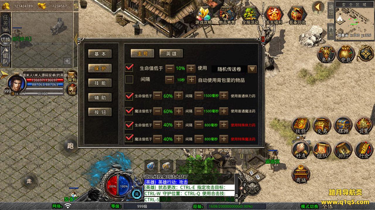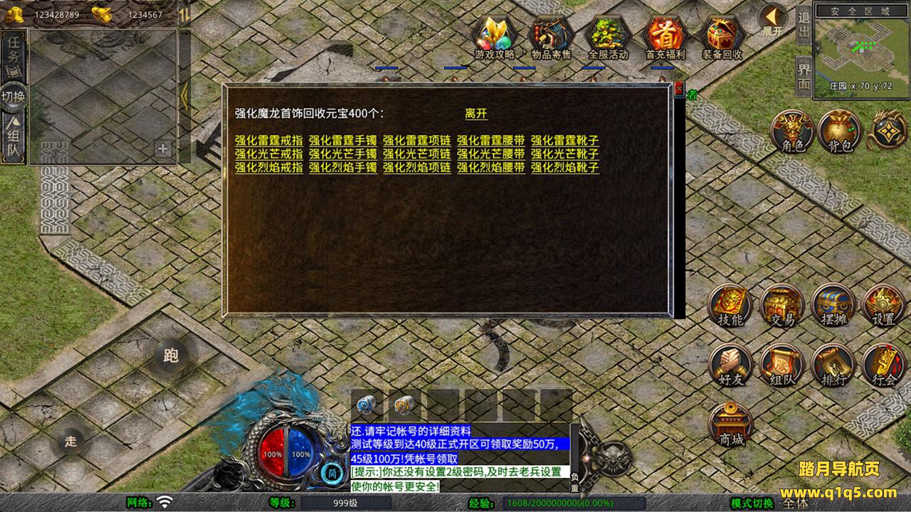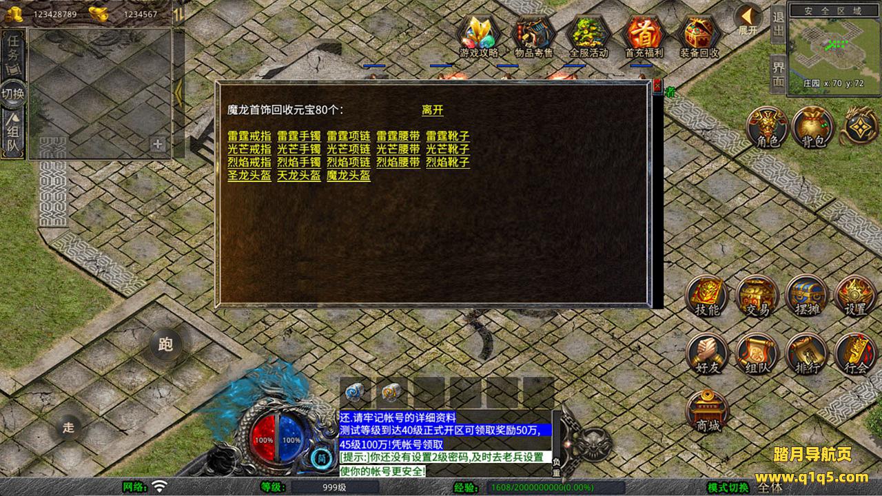 下面我们来测试下游戏里的功能看看。好了,其他功能就自行测试吧。更多的游戏资源可以访问www.q1q5.com下载,我们每款游戏资源均单独制作的有独立的视频架设教程,让小白也可以快速上手游戏架设,快来体验自己做GM的乐趣吧!