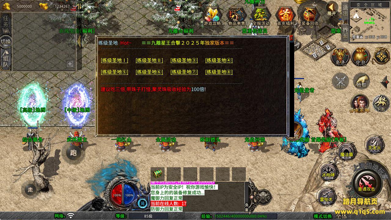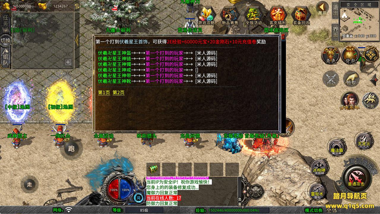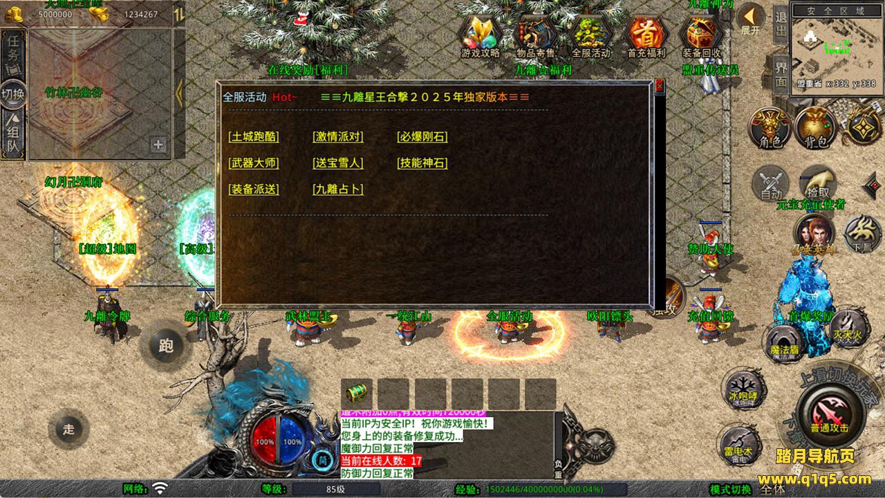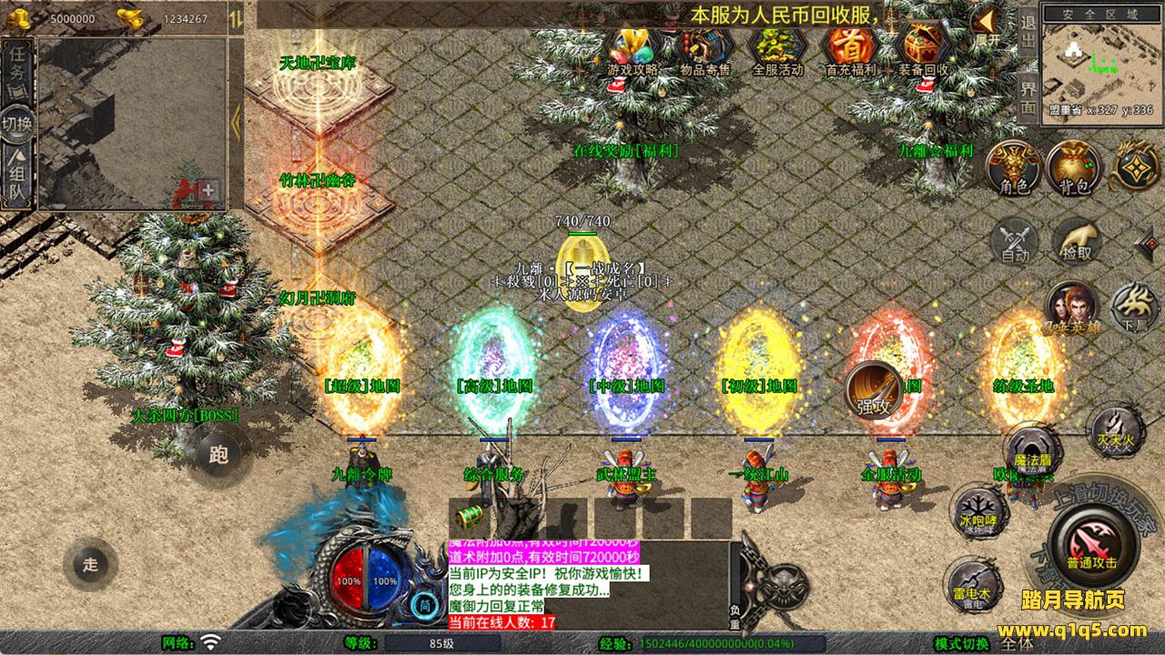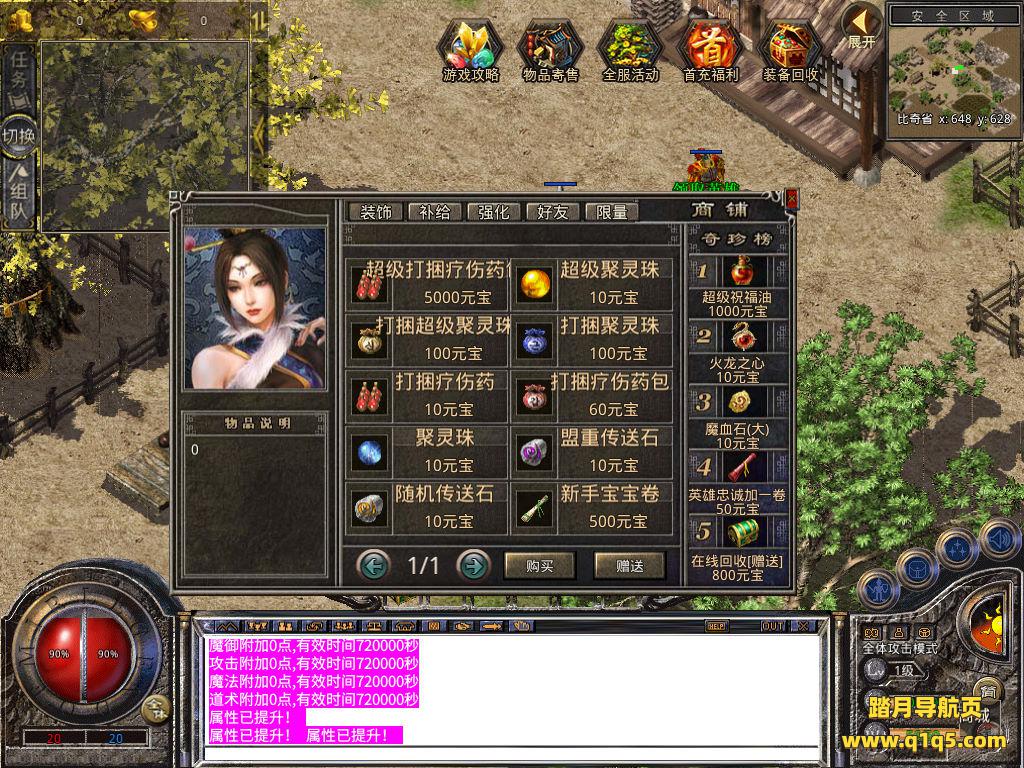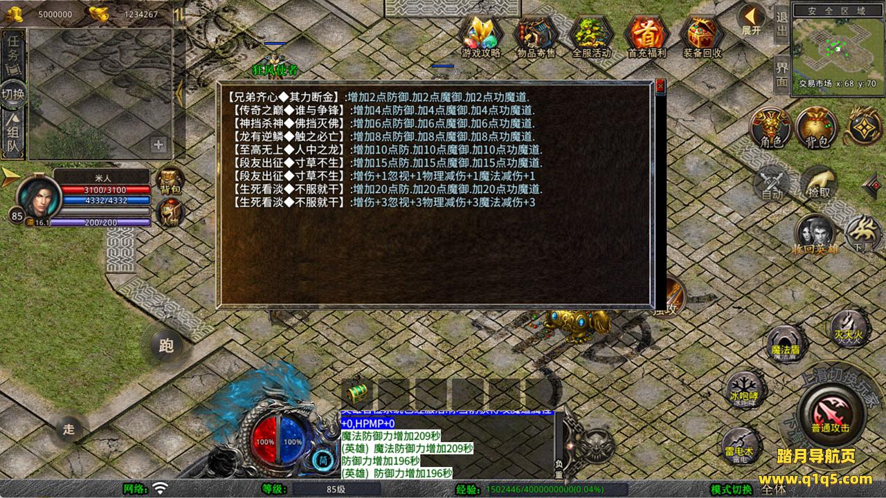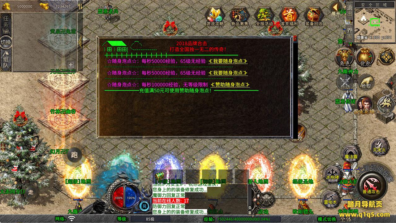下面我们来测试下游戏里的功能看看。好了,其他功能就自行测试吧。更多的游戏资源可以访问www.q1q5.com下载,我们每款游戏资源均单独制作了独立的视频架设教程,让小白也可以快速上手游戏架设,快来体验自己做GM的乐趣吧!