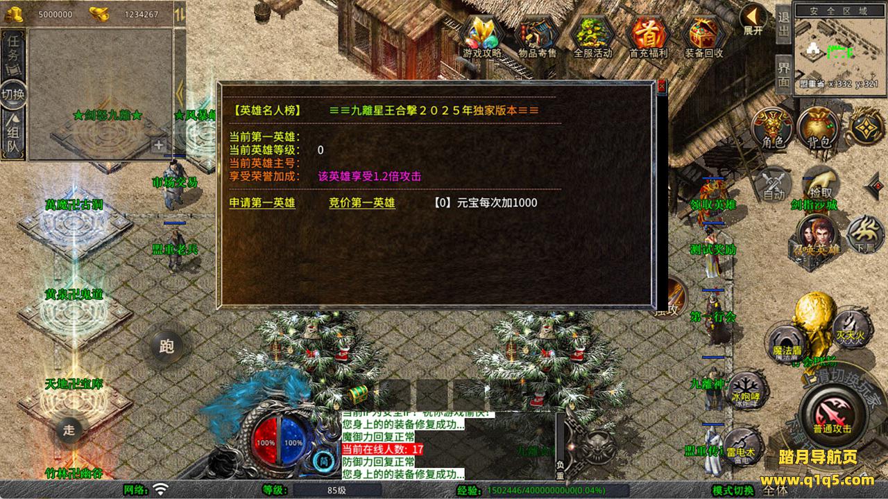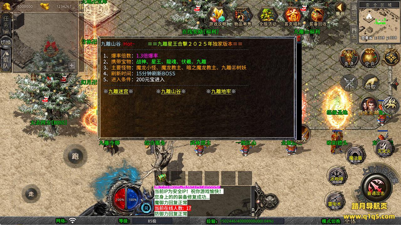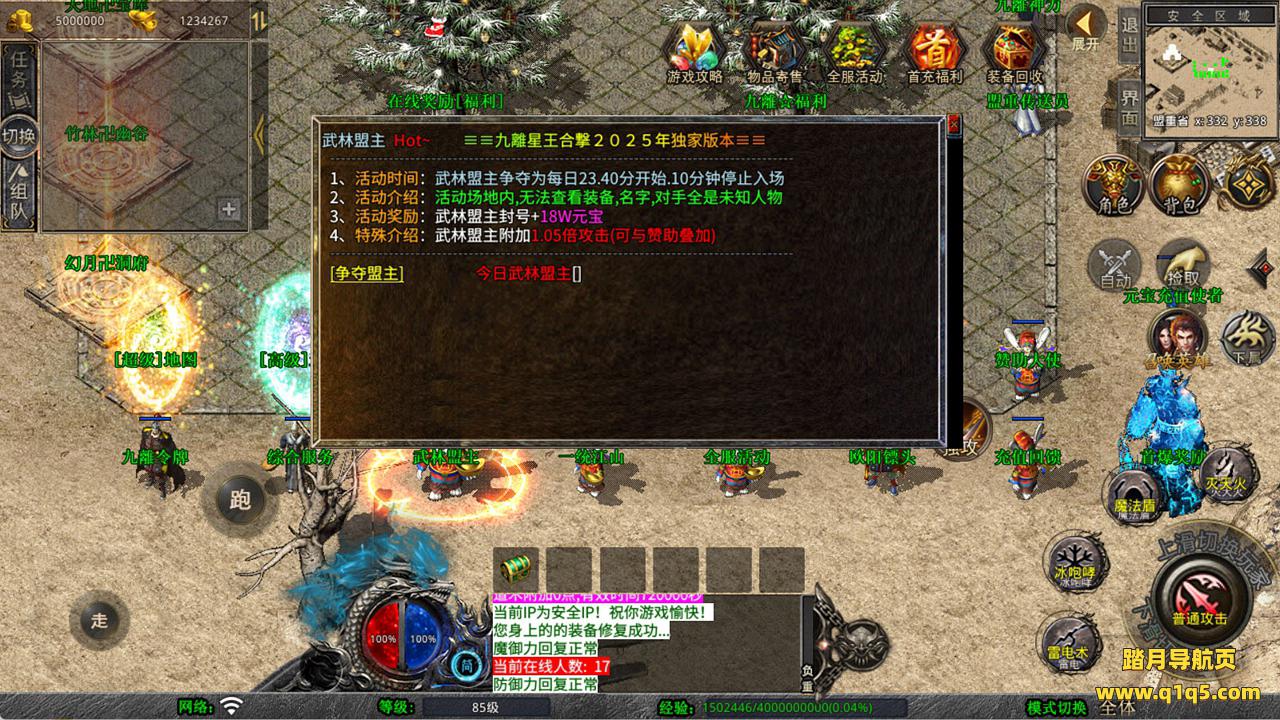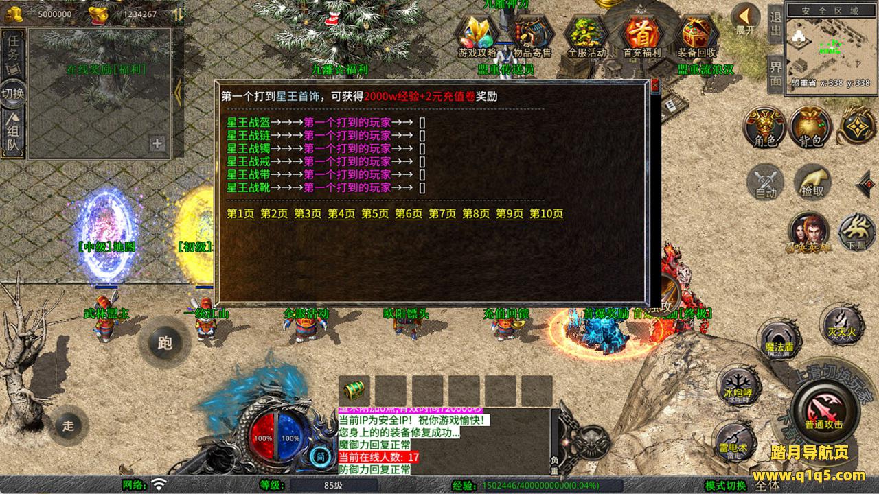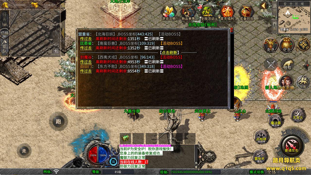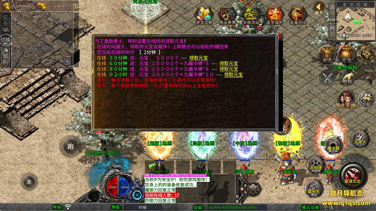 下面我们来测试下游戏里的功能看看。好了,其他功能就自行测试吧。更多的游戏资源可以访问www.q1q5.com下载,我们每款游戏资源均单独制作了独立的视频架设教程,让小白也可以快速上手游戏架设,快来体验自己做GM的乐趣吧!