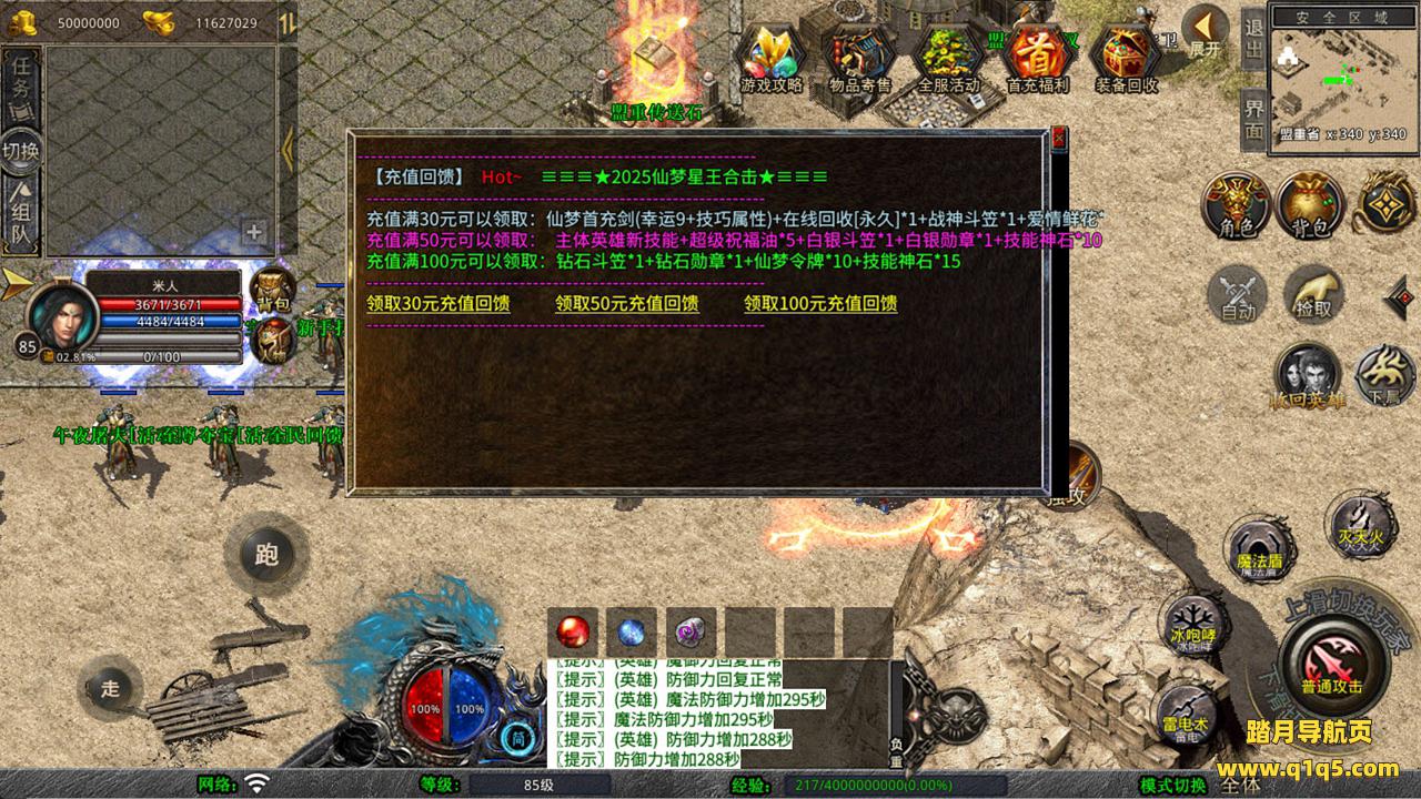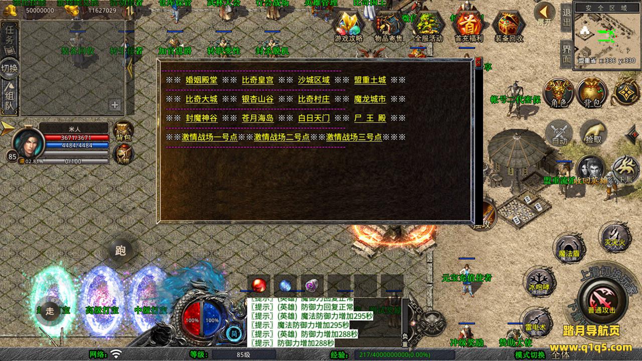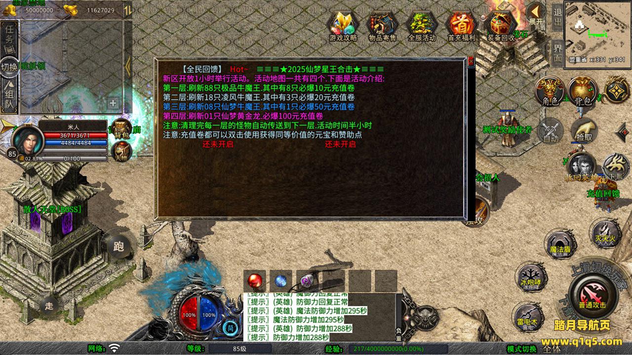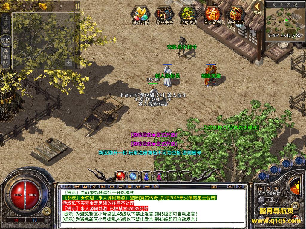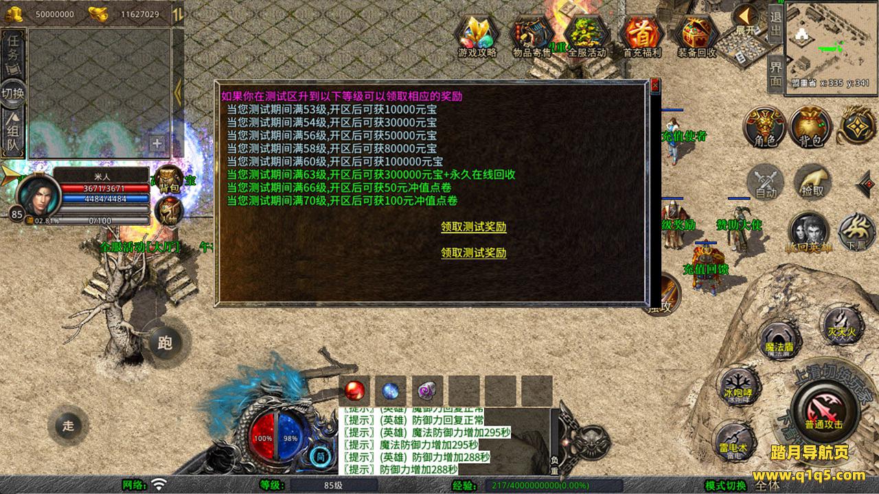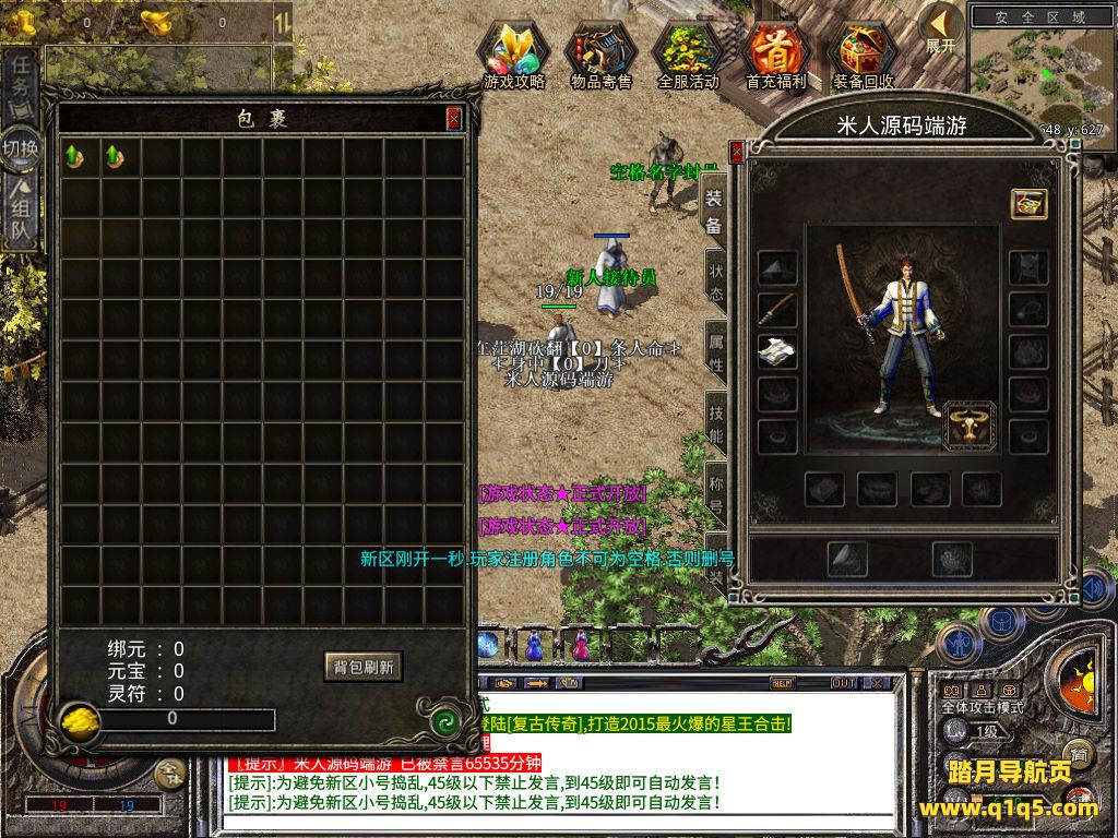 下面我们来测试下游戏里的功能看看吧。好了,其他功能就自行测试吧。更多的游戏资源可以访问www.q1q5.com下载,我们每款游戏资源均单独制作了独立的视频架设教程,让小白也可以快速上手游戏架设,快来体验自己做GM的乐趣吧!