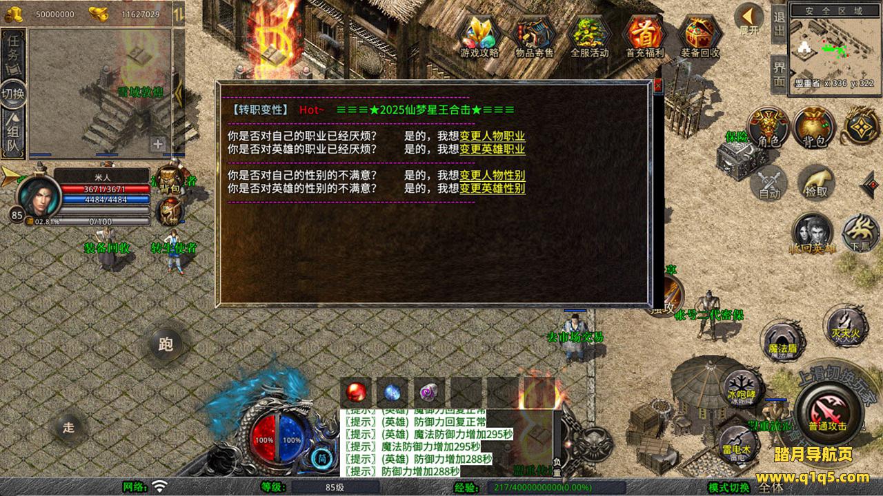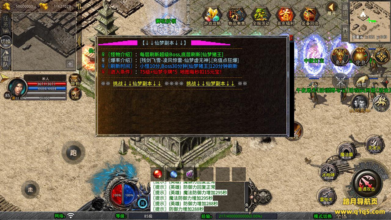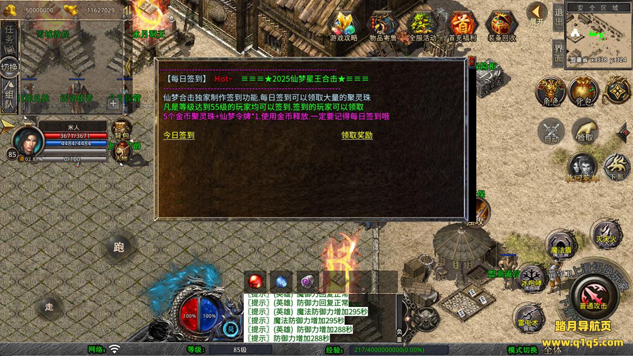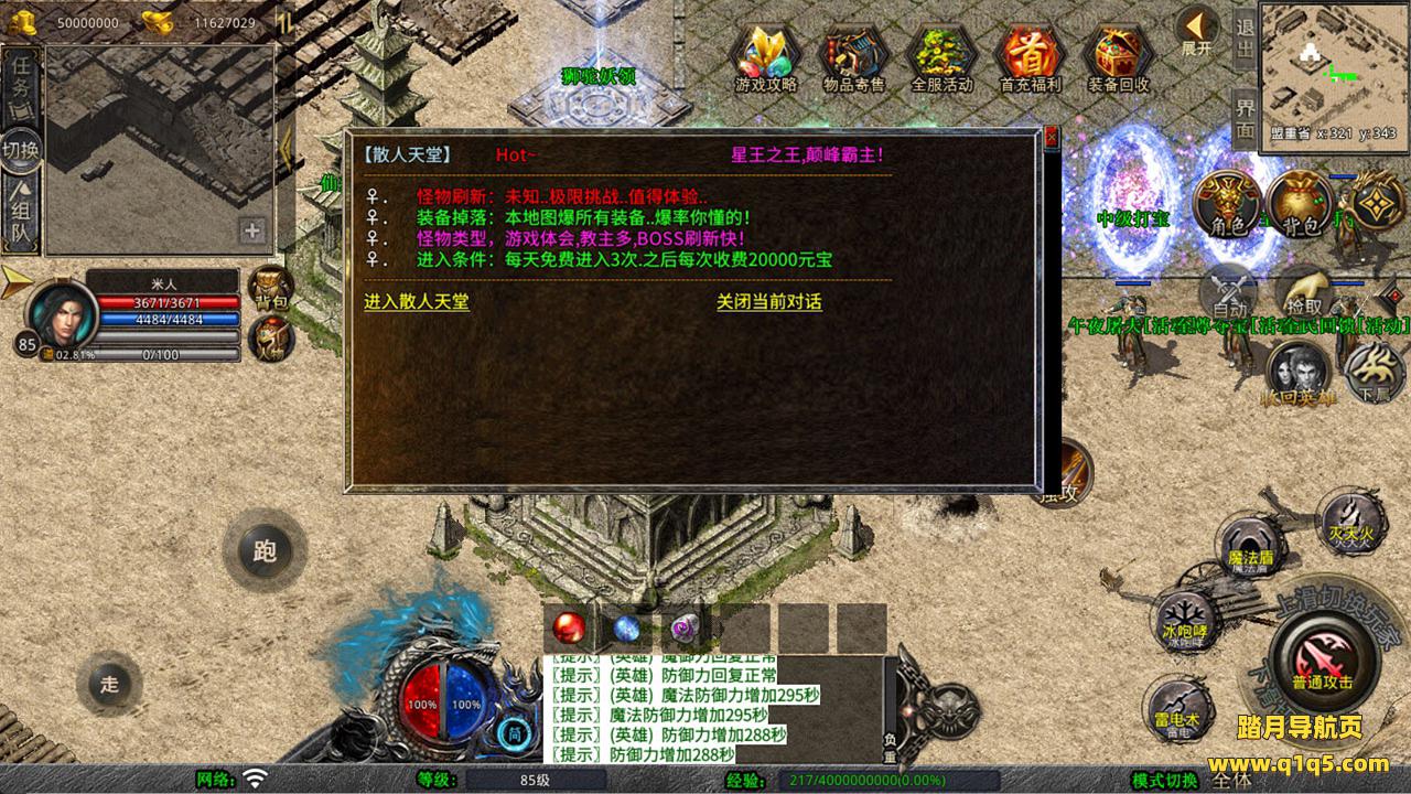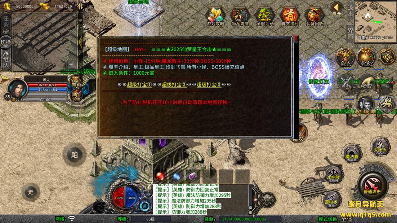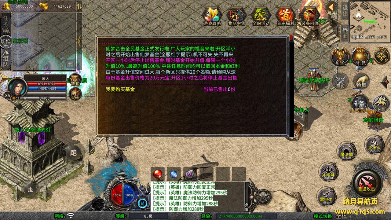 下面我们来测试下游戏里的功能看看吧。好了,其他功能就自行测试吧。更多的游戏资源可以访问www.q1q5.com下载,我们每款游戏资源均单独制作了独立的视频架设教程,让小白也可以快速上手游戏架设,快来体验自己做GM的乐趣吧!