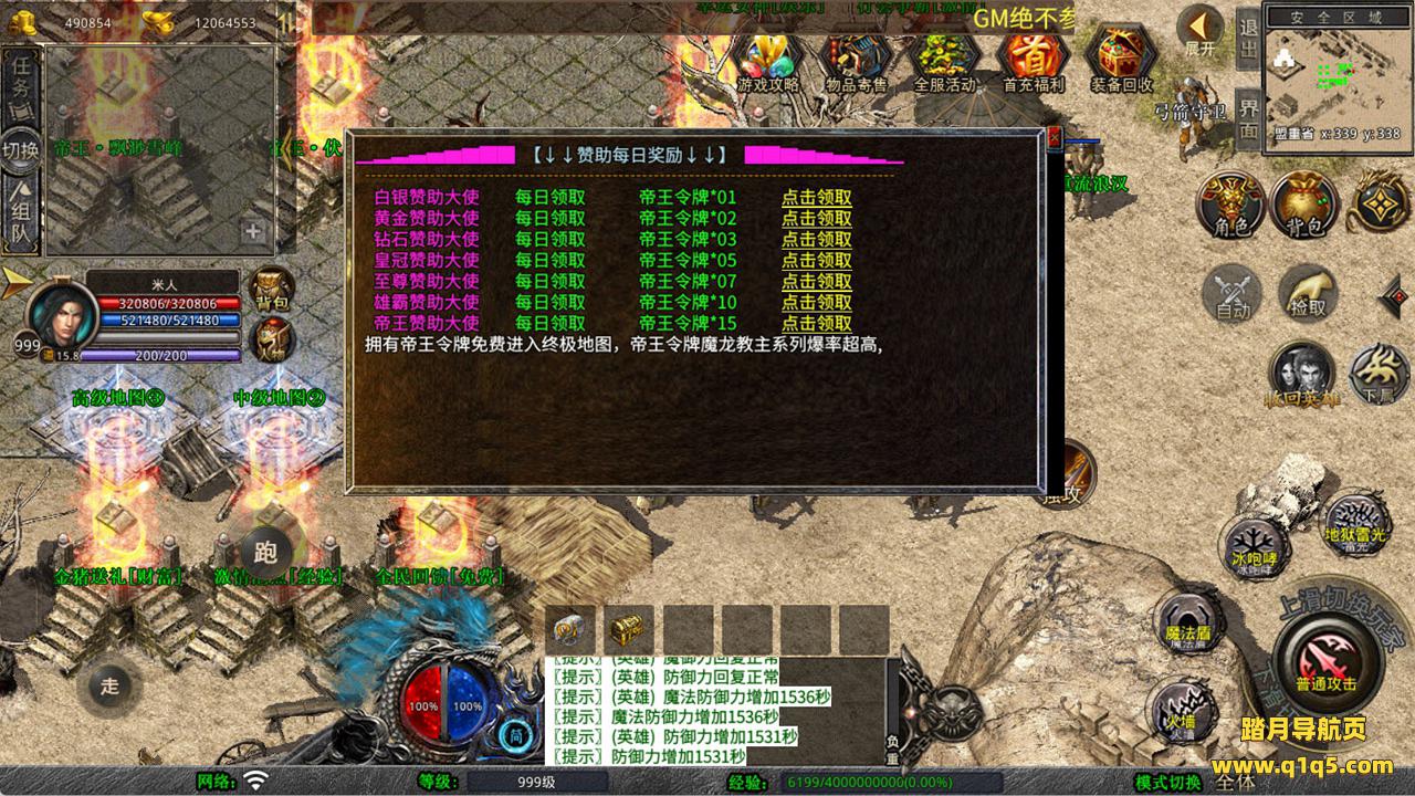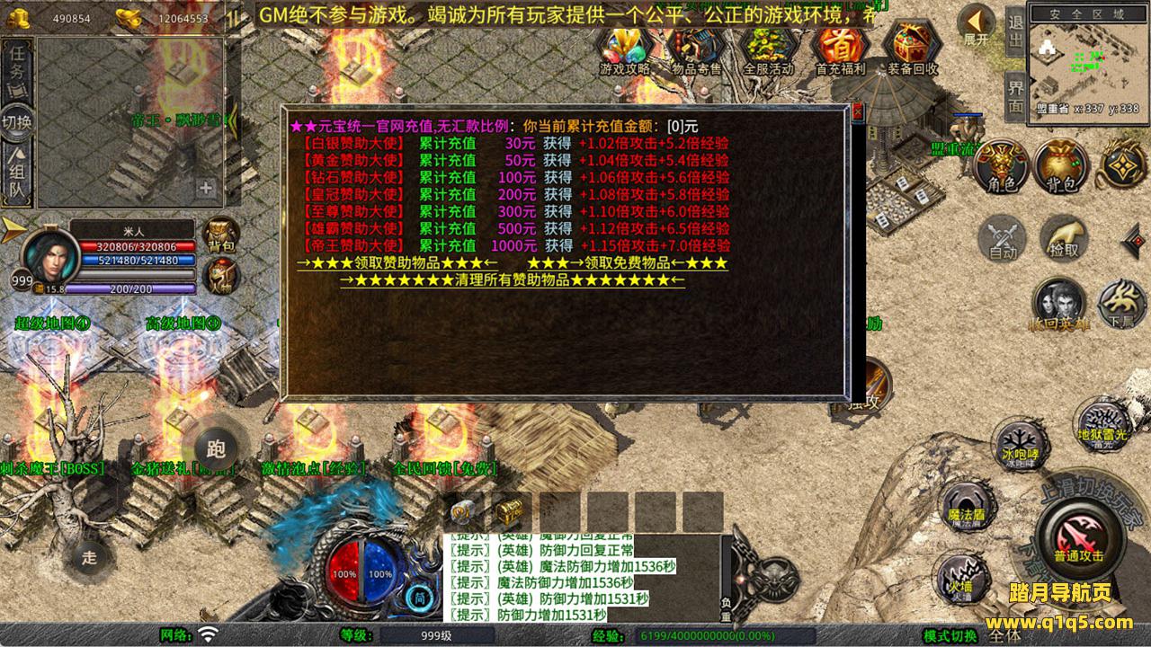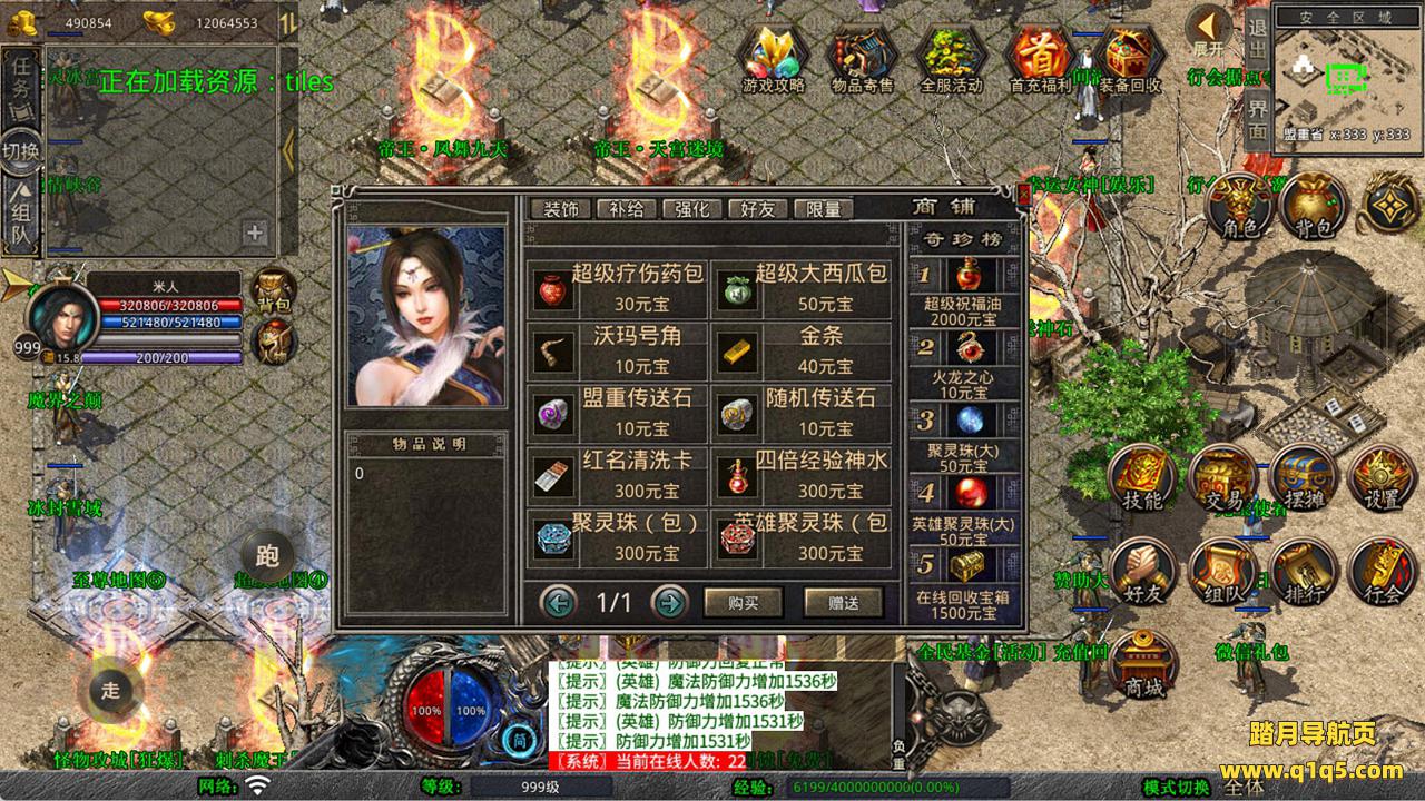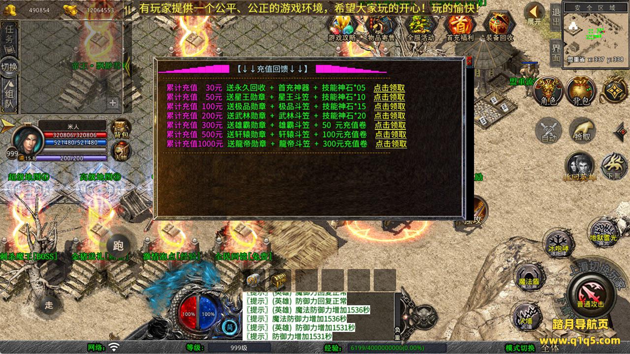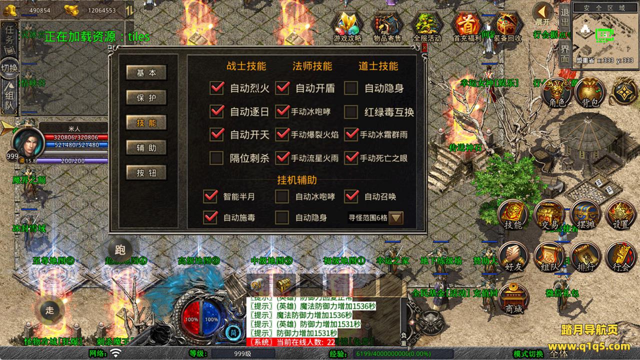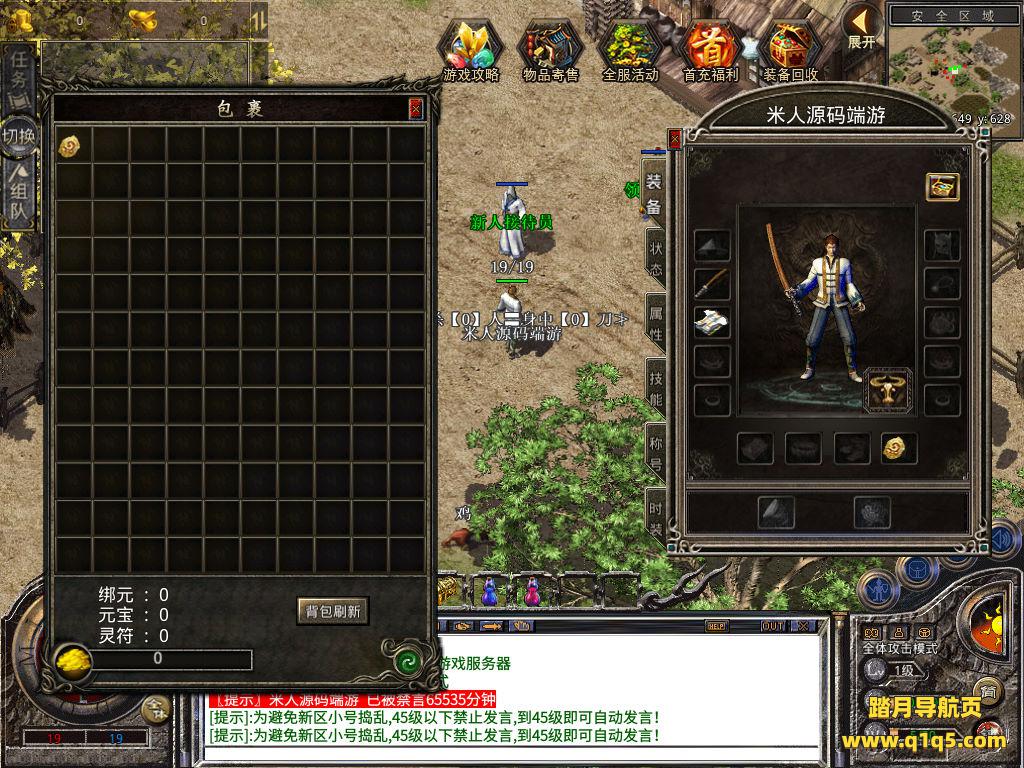 下面我们来测试下游戏里的功能看看。好了,其他功能就自行测试吧。更多的游戏资源可以访问www.q1q5.com下载,我们每款游戏资源均单独制作了独立的视频架设教程,让小白也可以快速上手游戏架设,快来体验自己做GM的乐趣吧!