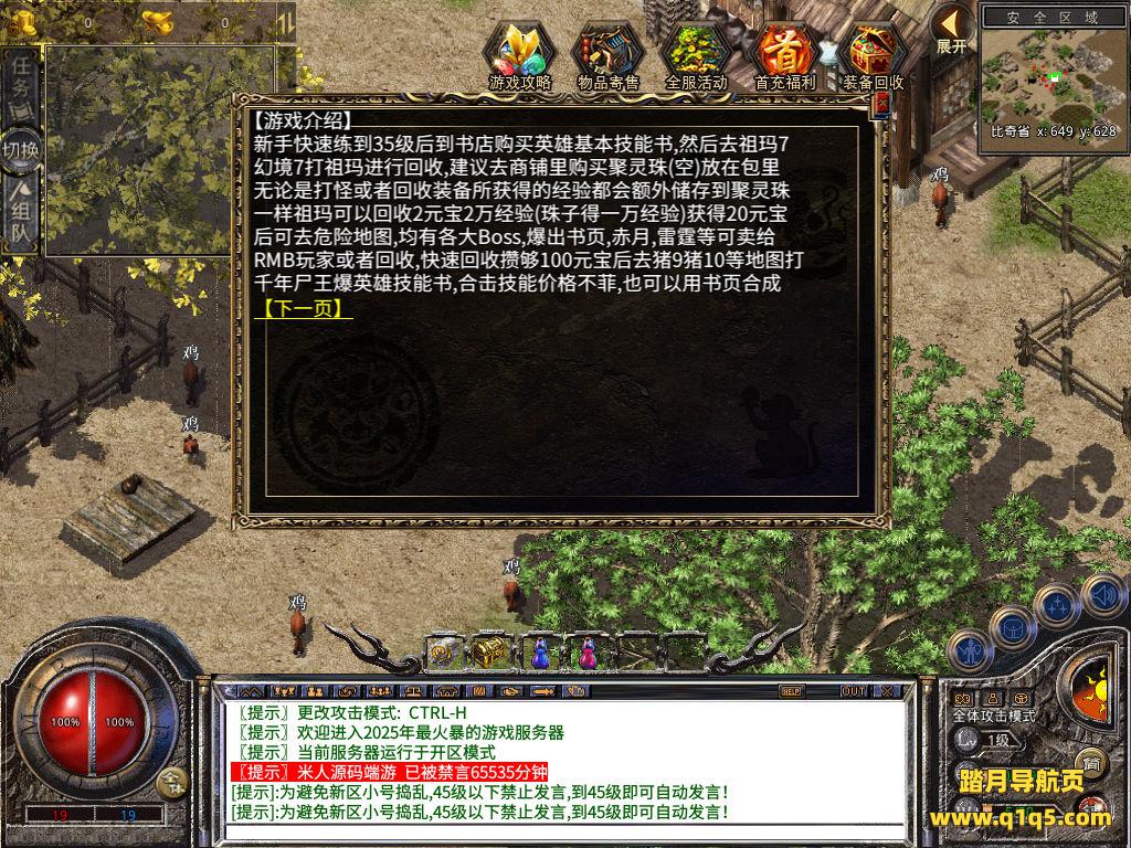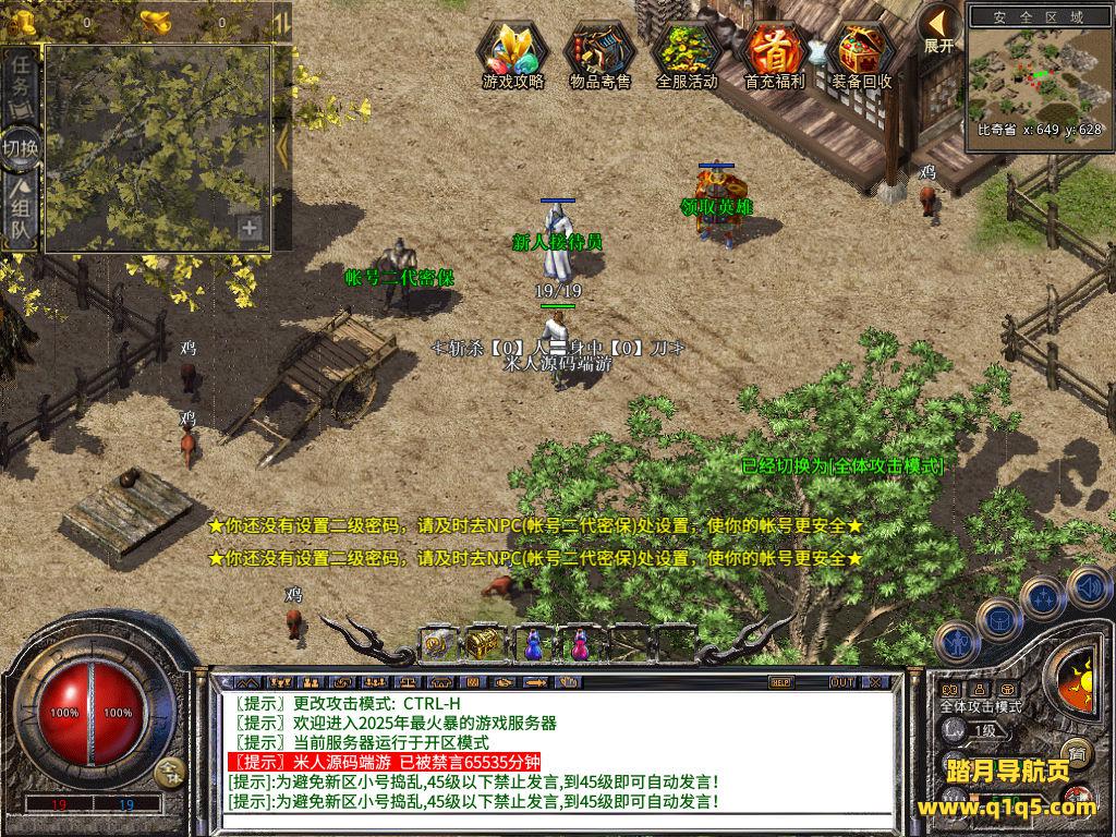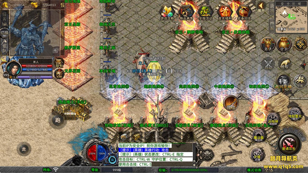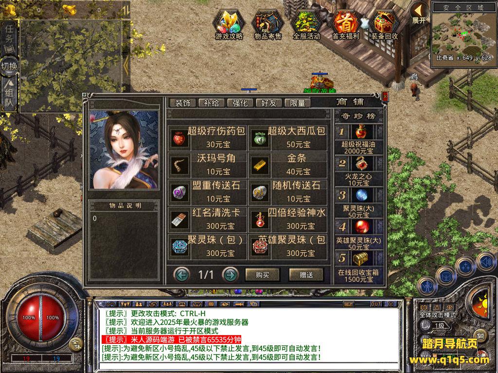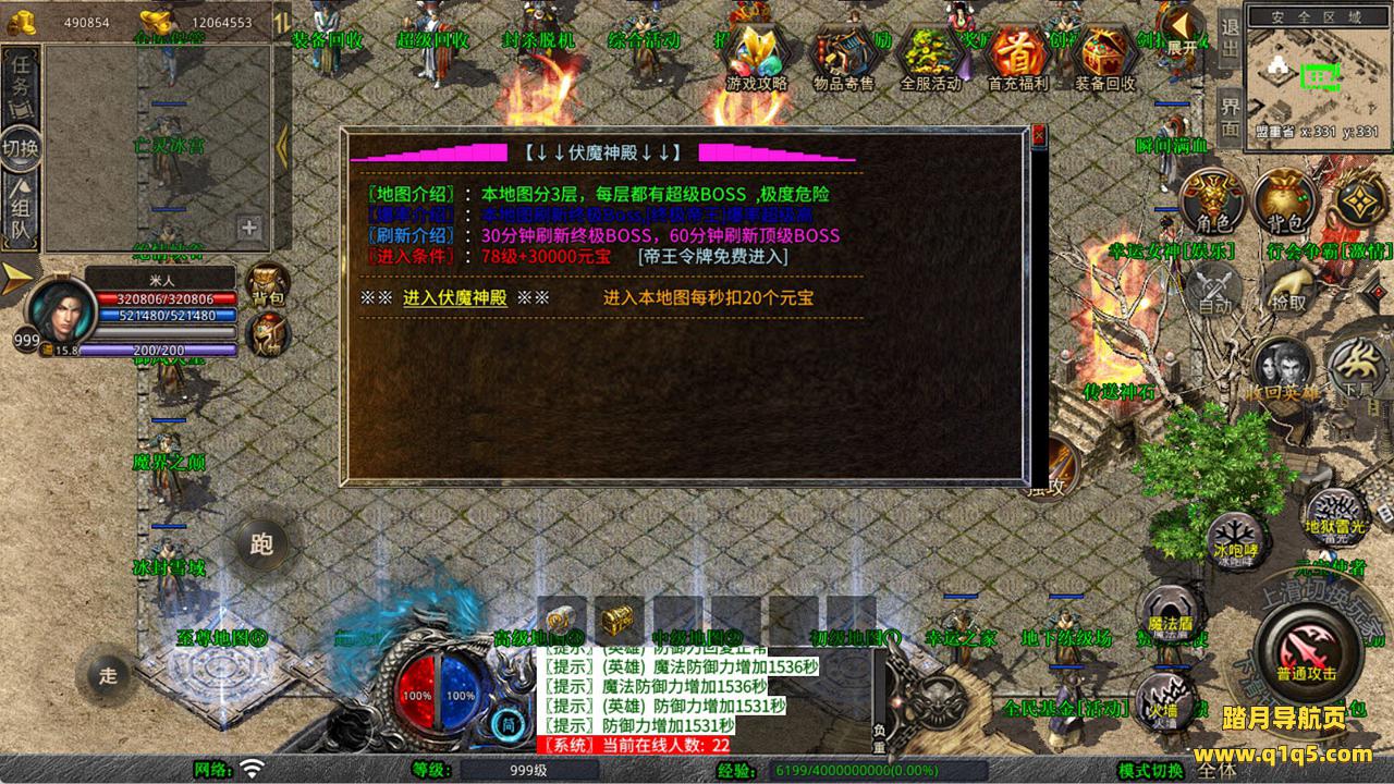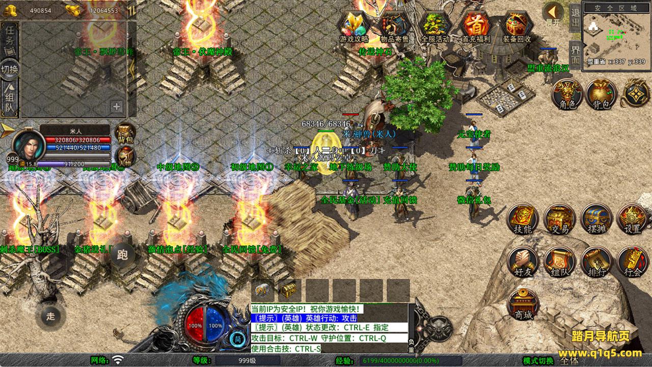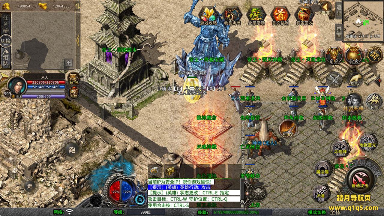 下面我们来测试下游戏里的功能看看。好了,其他功能就自行测试吧。更多的游戏资源可以访问www.q1q5.com下载,我们每款游戏资源均单独制作了独立的视频架设教程,让小白也可以快速上手游戏架设,快来体验自己做GM的乐趣吧!