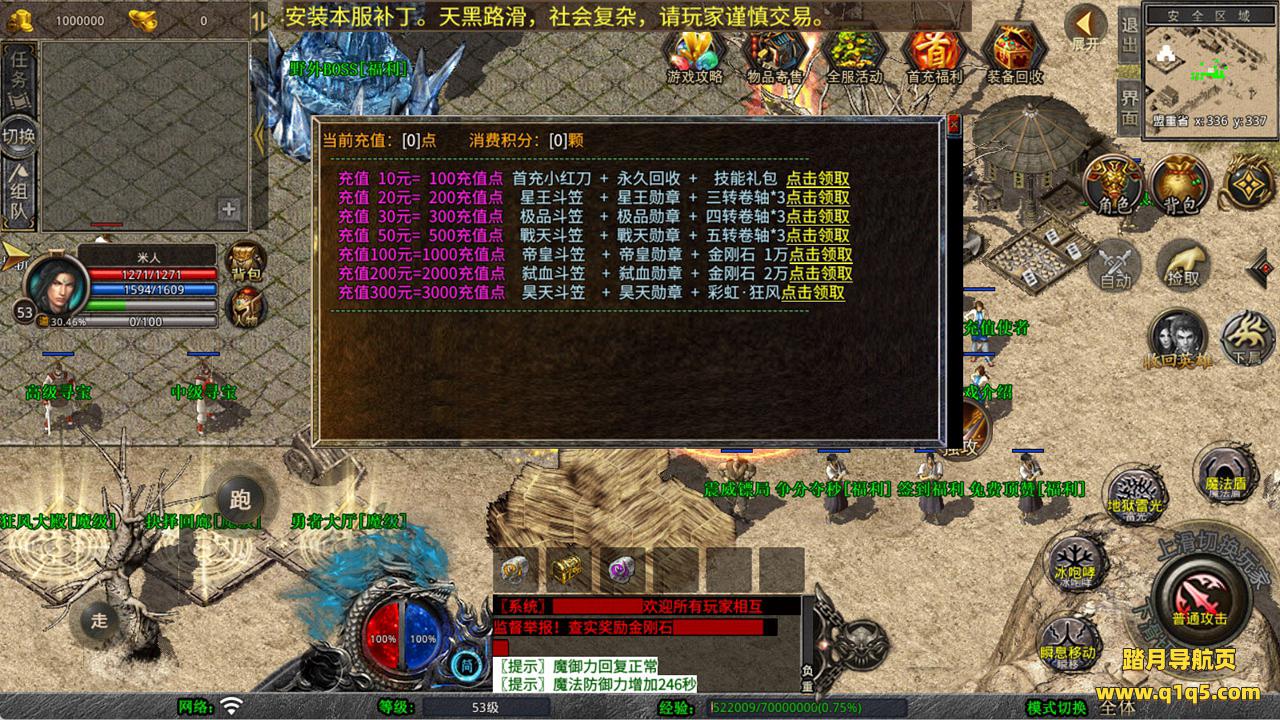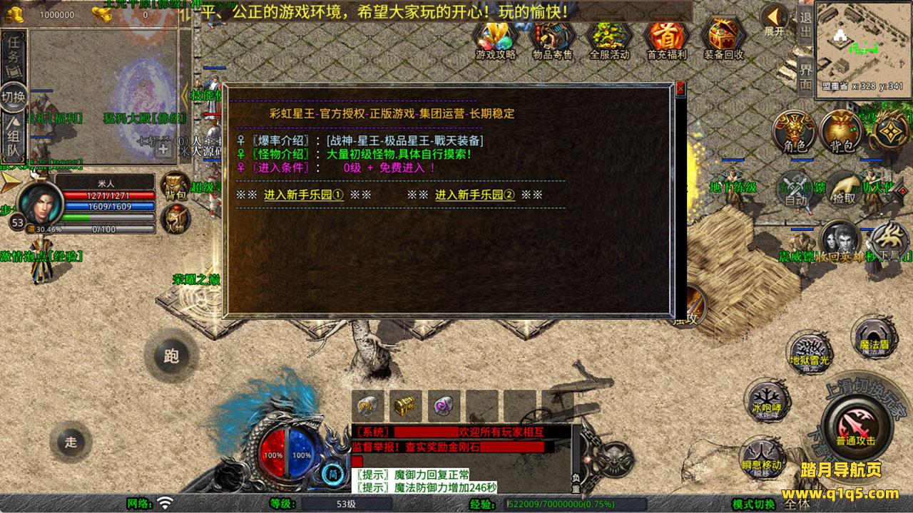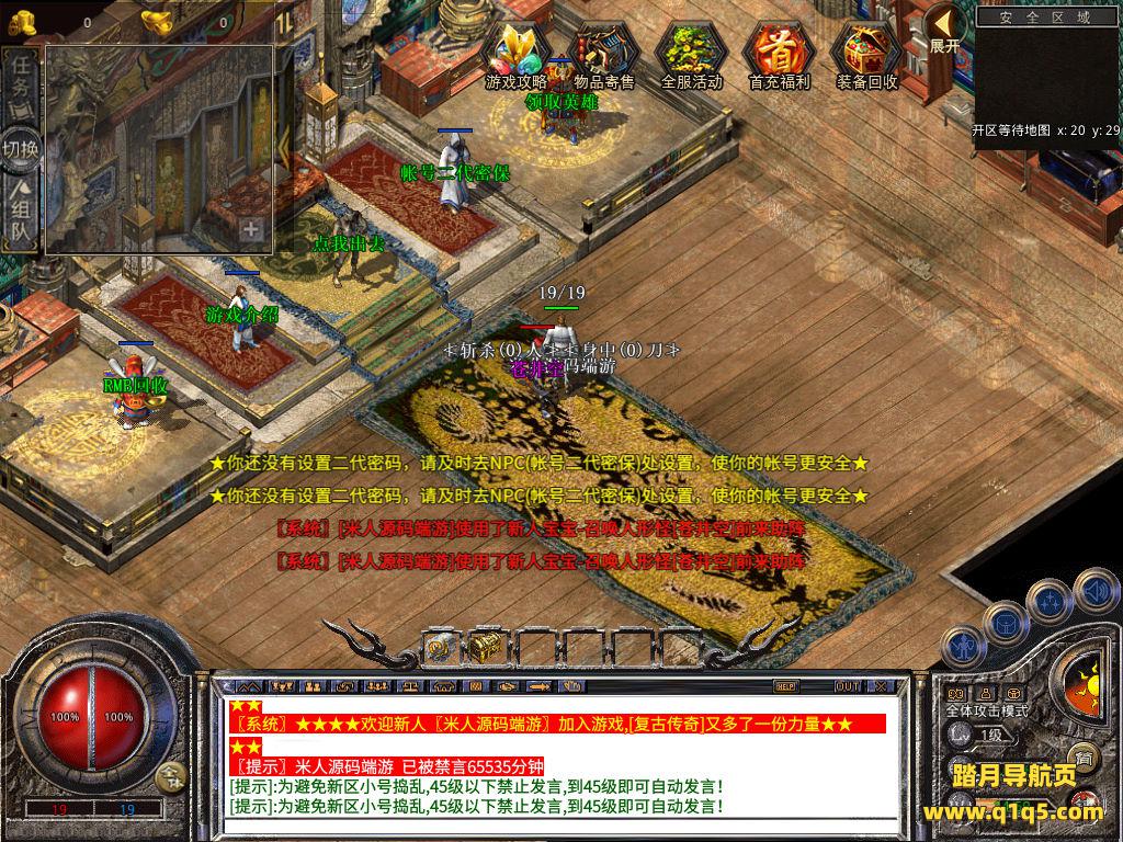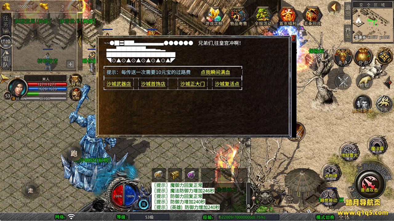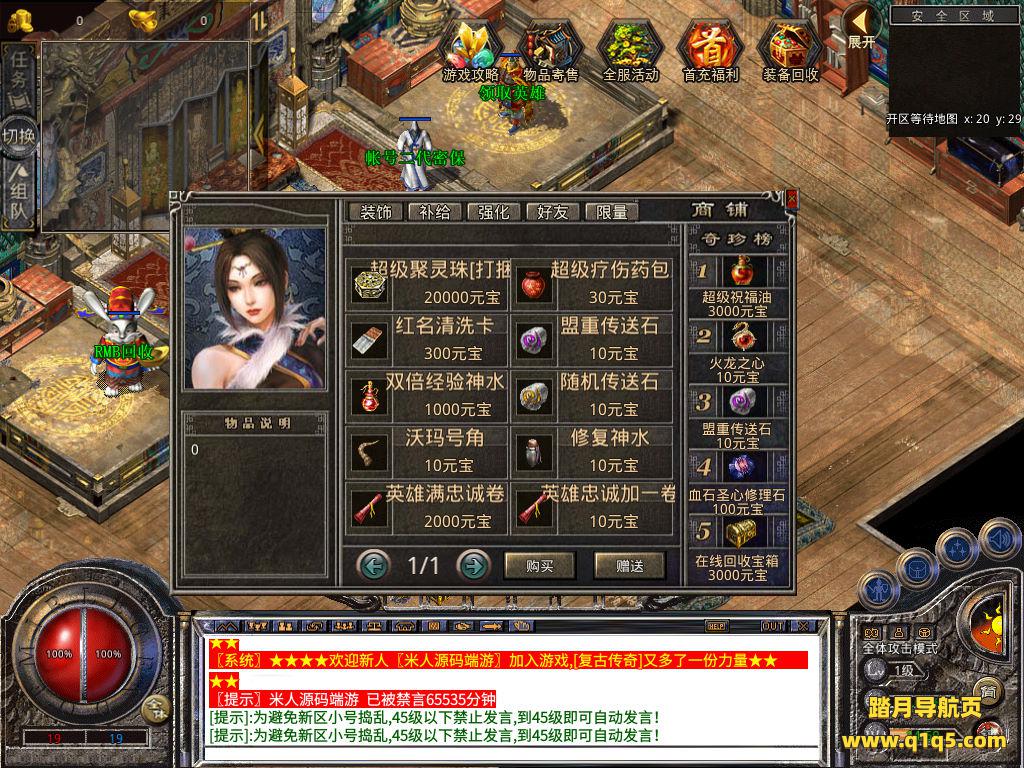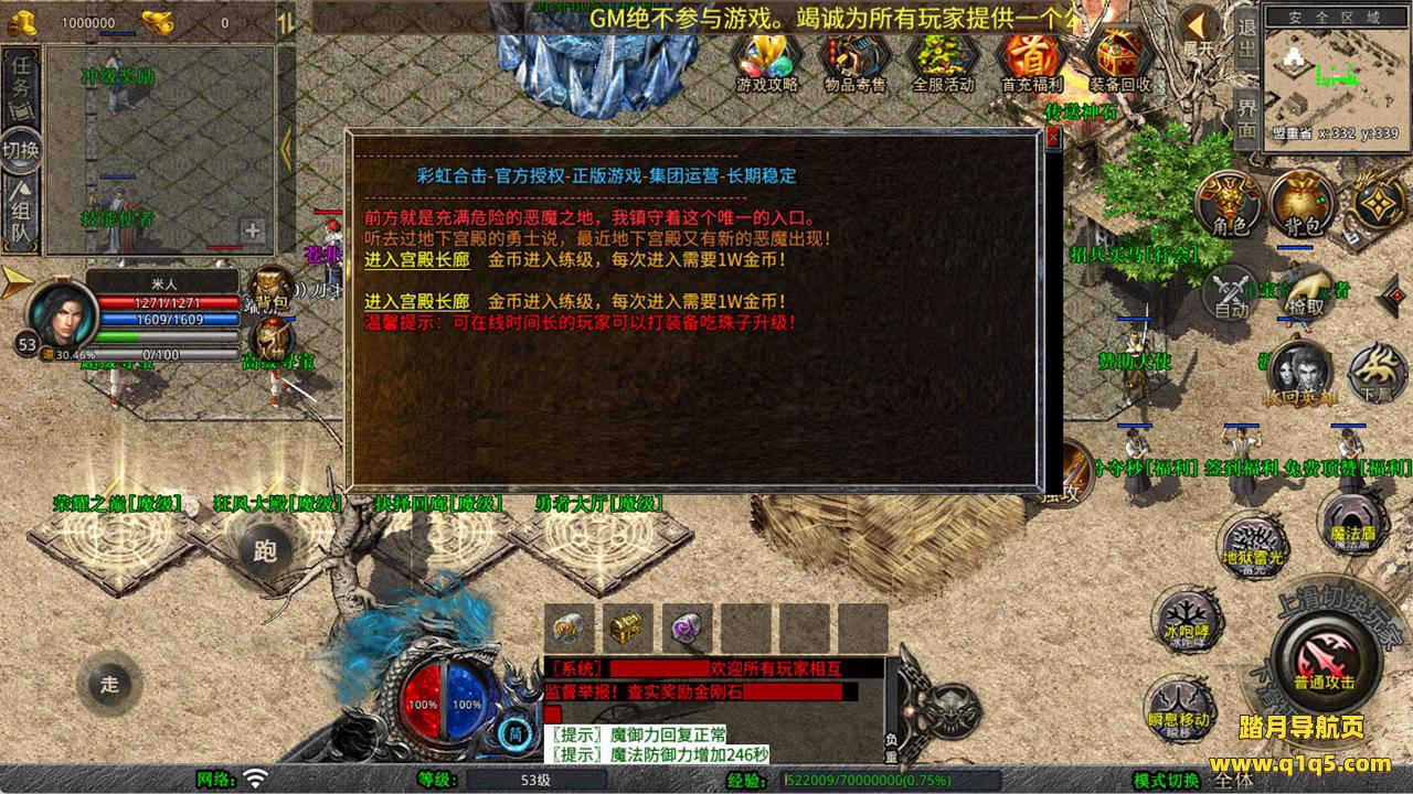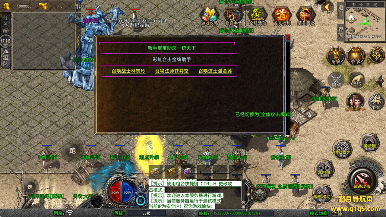 下面我们来测试下游戏里的功能看看。好了,其他功能就自行测试吧。更多的游戏资源可以访问www.q1q5.com下载,我们每款游戏资源均单独制作了独立的视频架设教程,让小白也可以快速上手游戏架设,快来体验自己做GM的乐趣吧!
