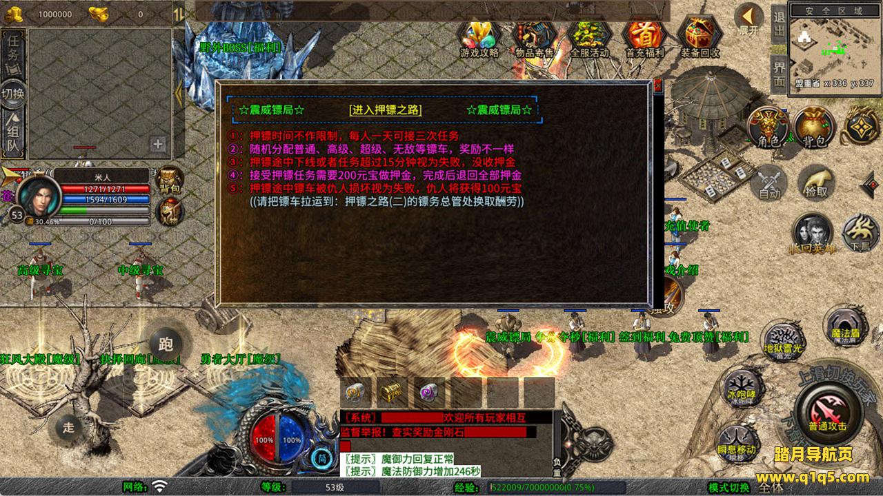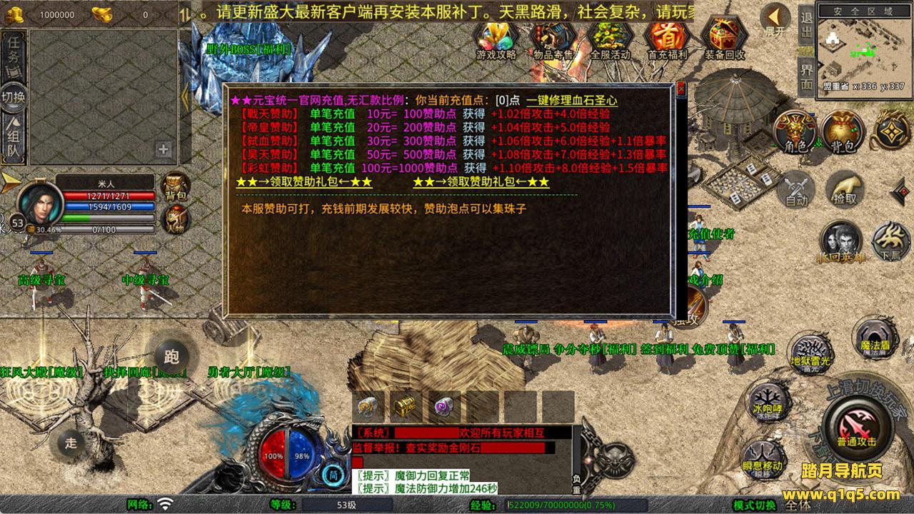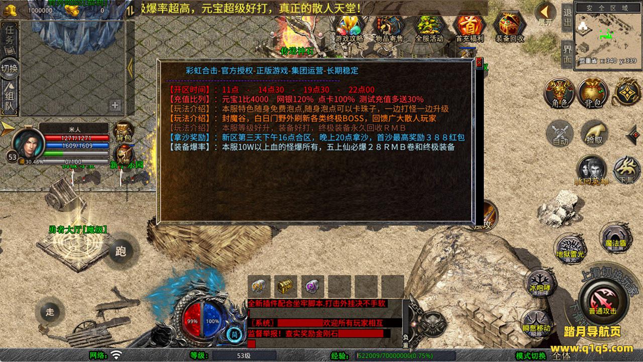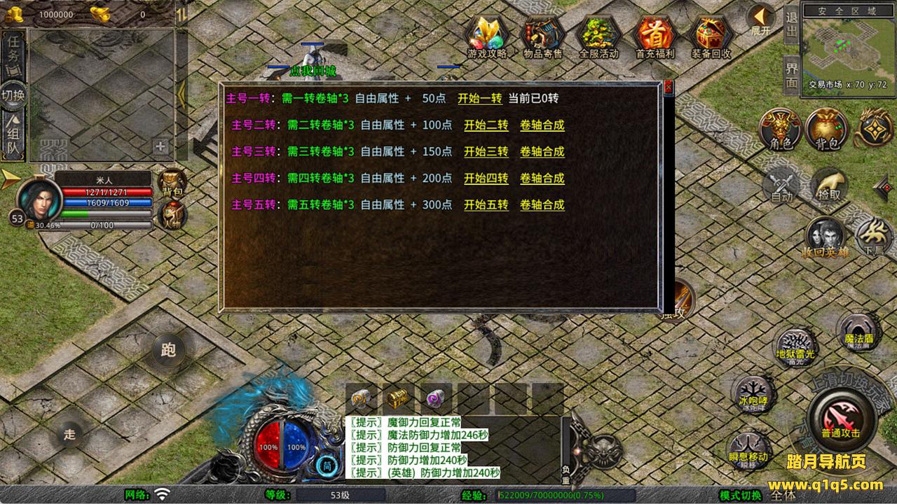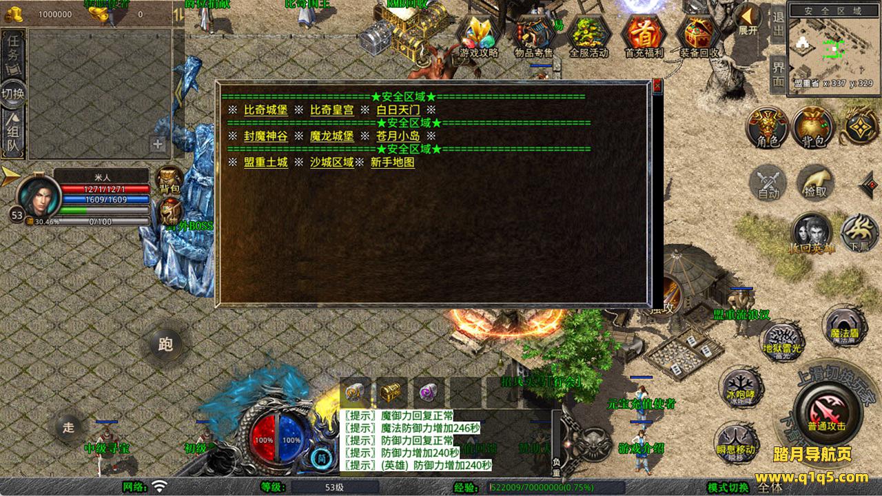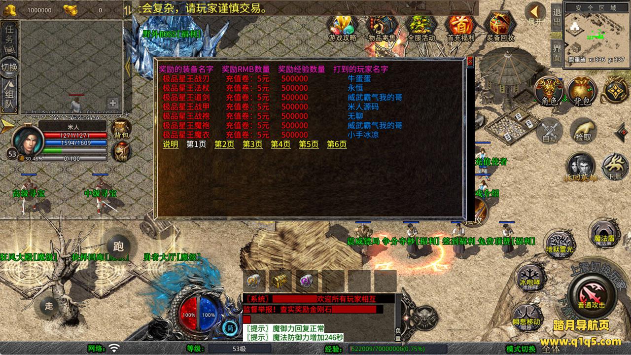 下面我们来测试下游戏里的功能看看。好了,其他功能就自行测试吧。更多的游戏资源可以访问www.q1q5.com下载,我们每款游戏资源均单独制作了独立的视频架设教程,让小白也可以快速上手游戏架设,快来体验自己做GM的乐趣吧!