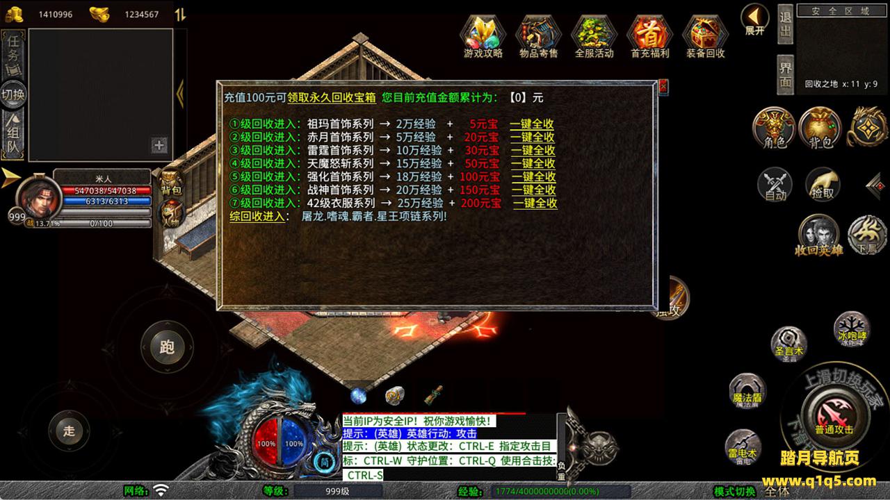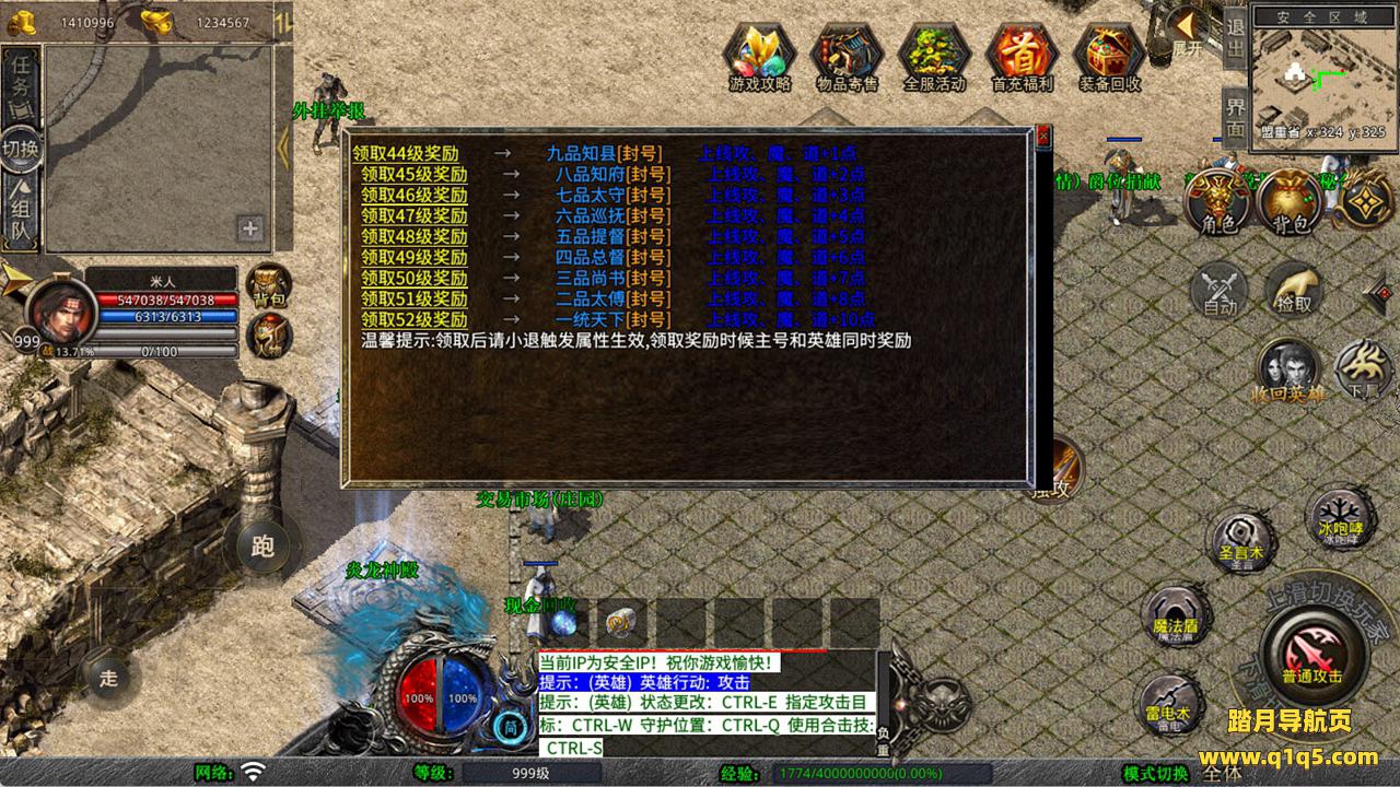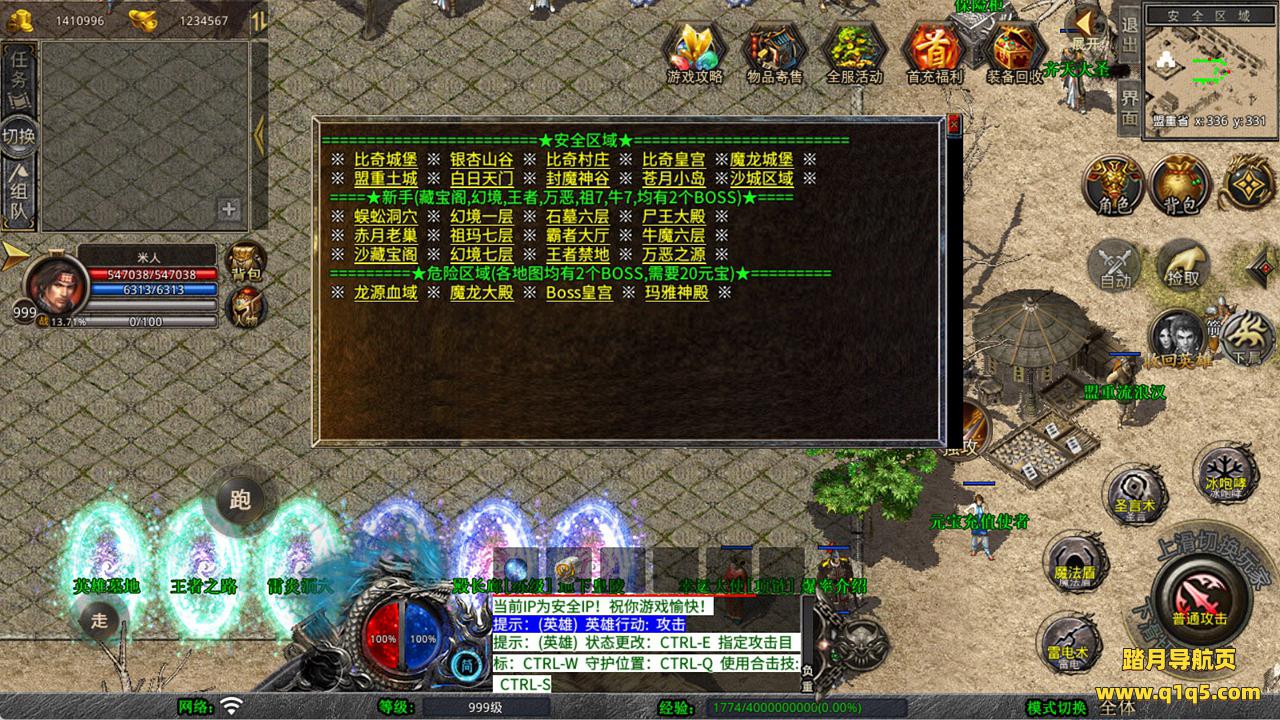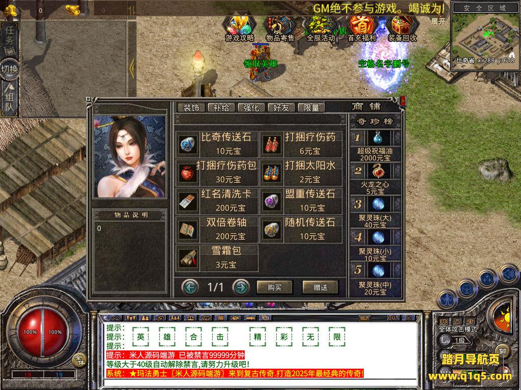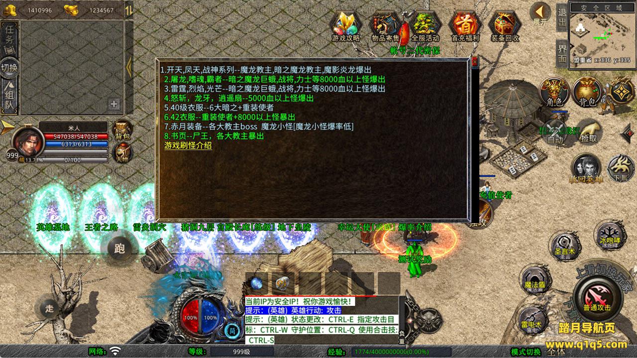 下面我们来测试下游戏里的功能看看。好了,其他功能就自行测试吧。更多的游戏资源可以访问www.q1q5.com下载,我们每款游戏资源均单独制作了独立的视频架设教程,让小白也可以快速上手游戏架设,快来体验自己做GM的乐趣吧!