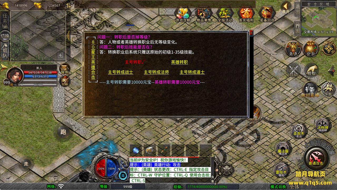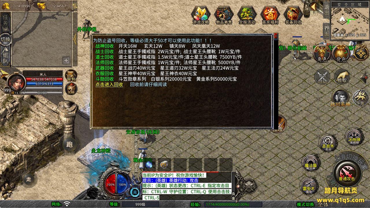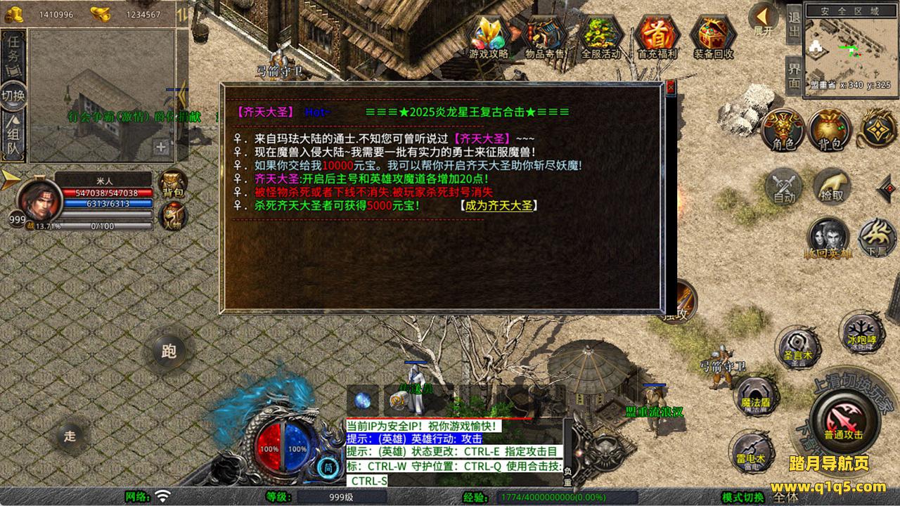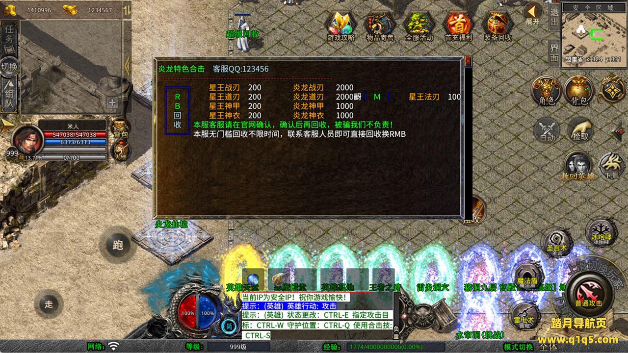 下面我们来测试下游戏里的功能看看。好了,其他功能就自行测试吧。更多的游戏资源可以访问www.q1q5.com下载,我们每款游戏资源均单独制作了独立的视频架设教程,让小白也可以快速上手游戏架设,快来体验自己做GM的乐趣吧!