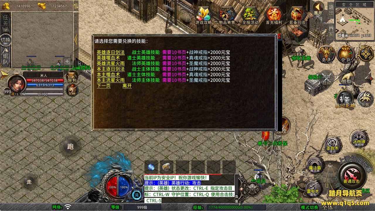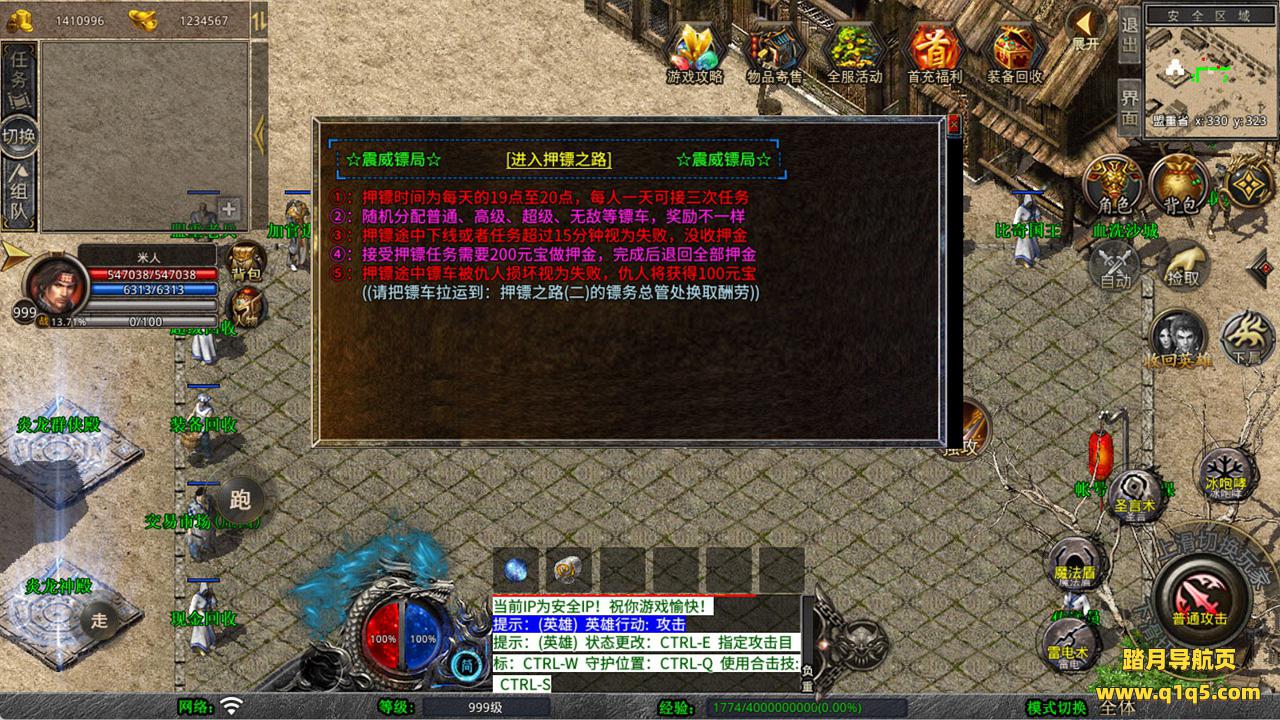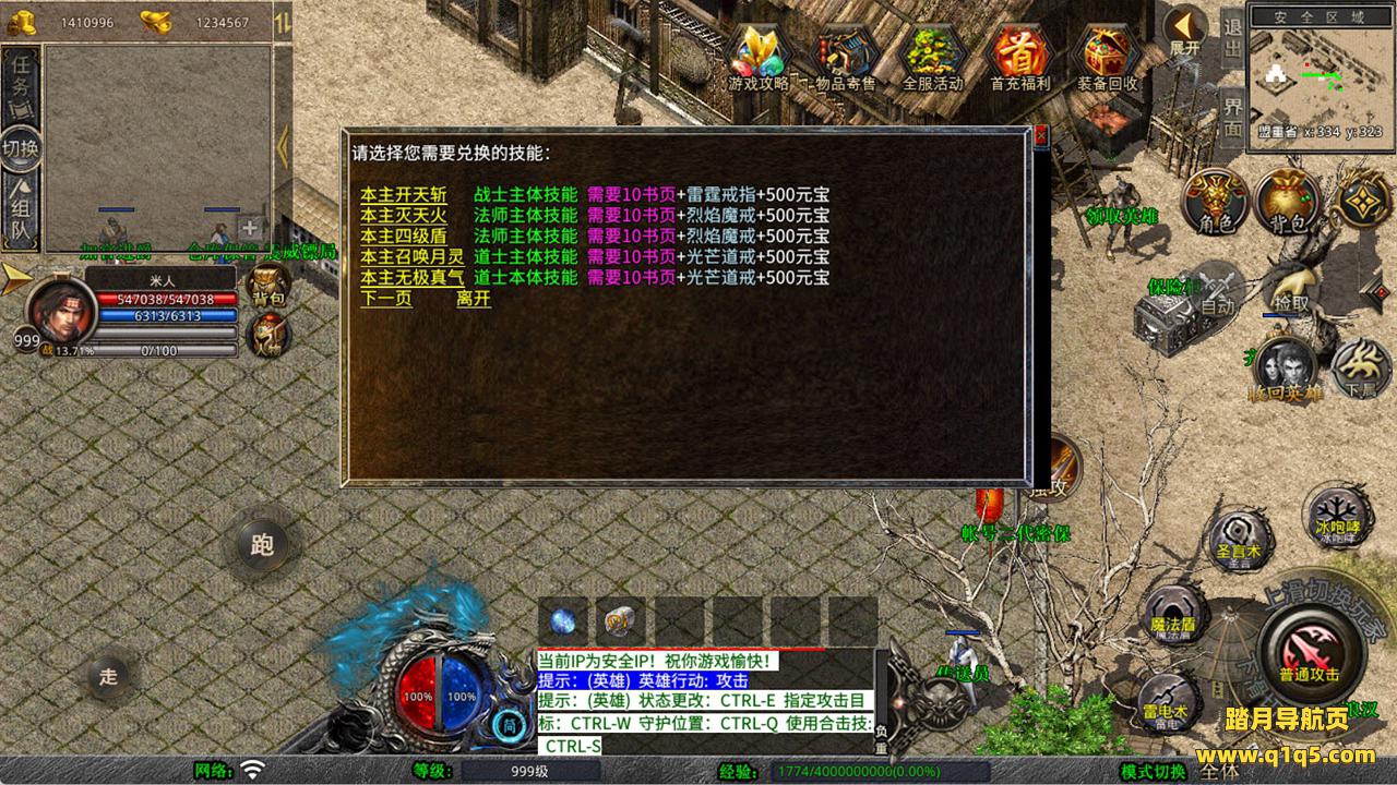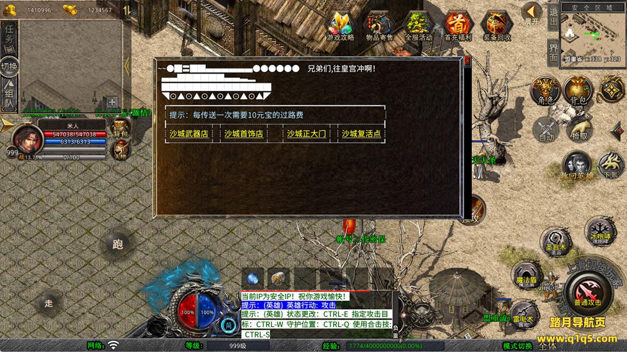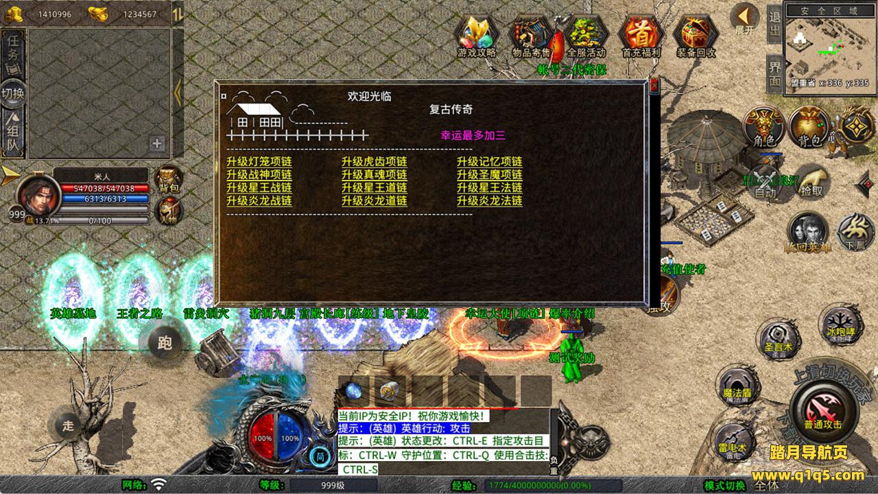 下面我们来测试下游戏里的功能看看。好了,其他功能就自行测试吧。更多的游戏资源可以访问www.q1q5.com下载,我们每款游戏资源均单独制作了独立的视频架设教程,让小白也可以快速上手游戏架设,快来体验自己做GM的乐趣吧!