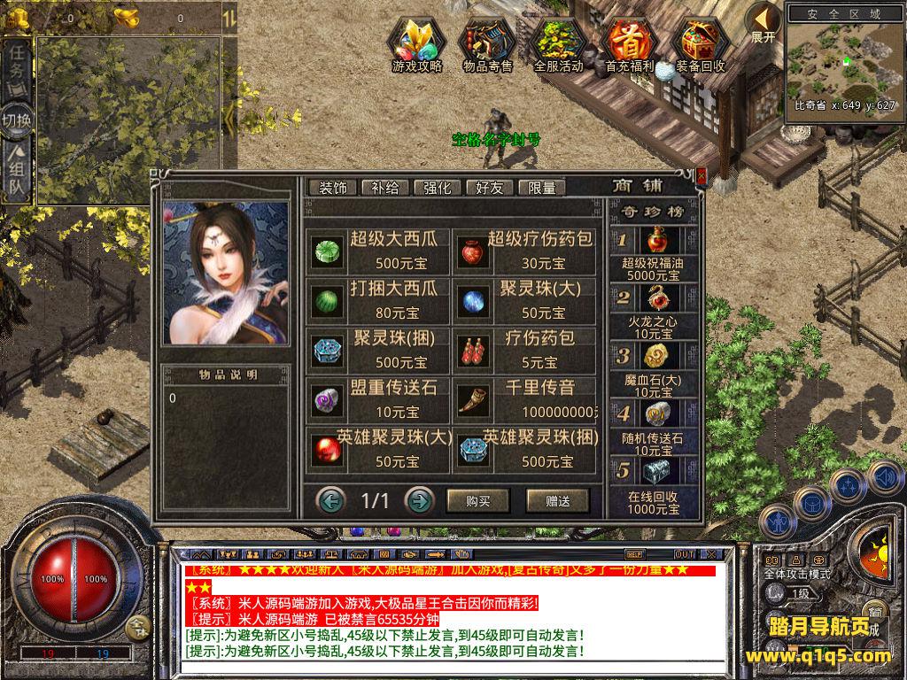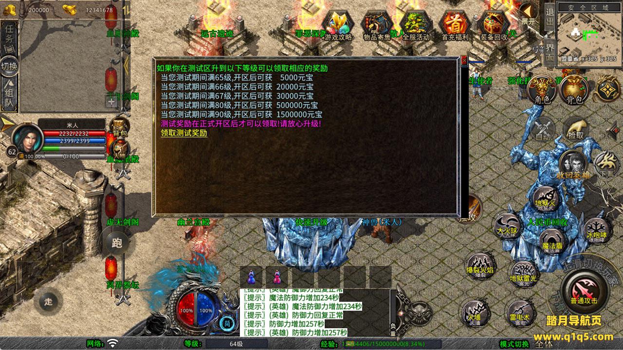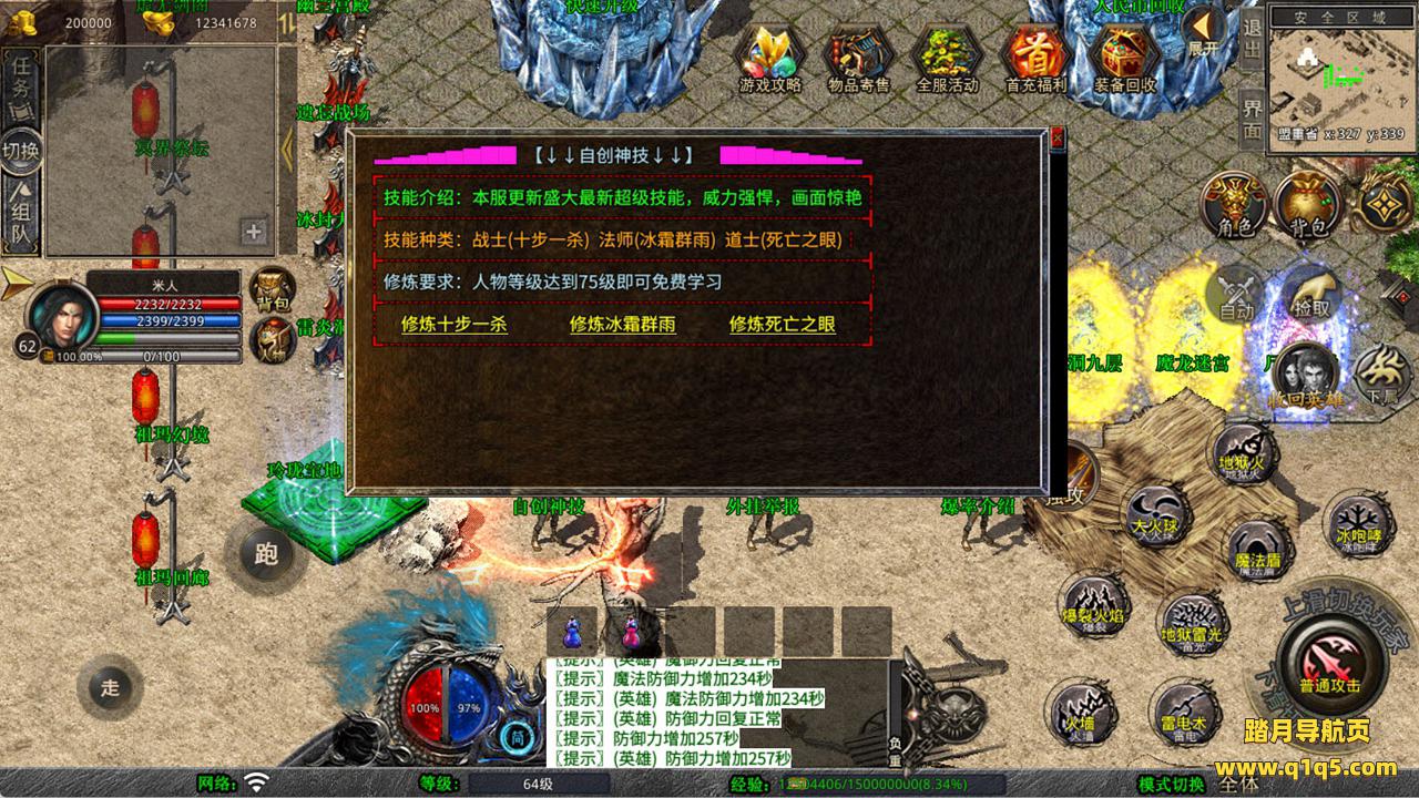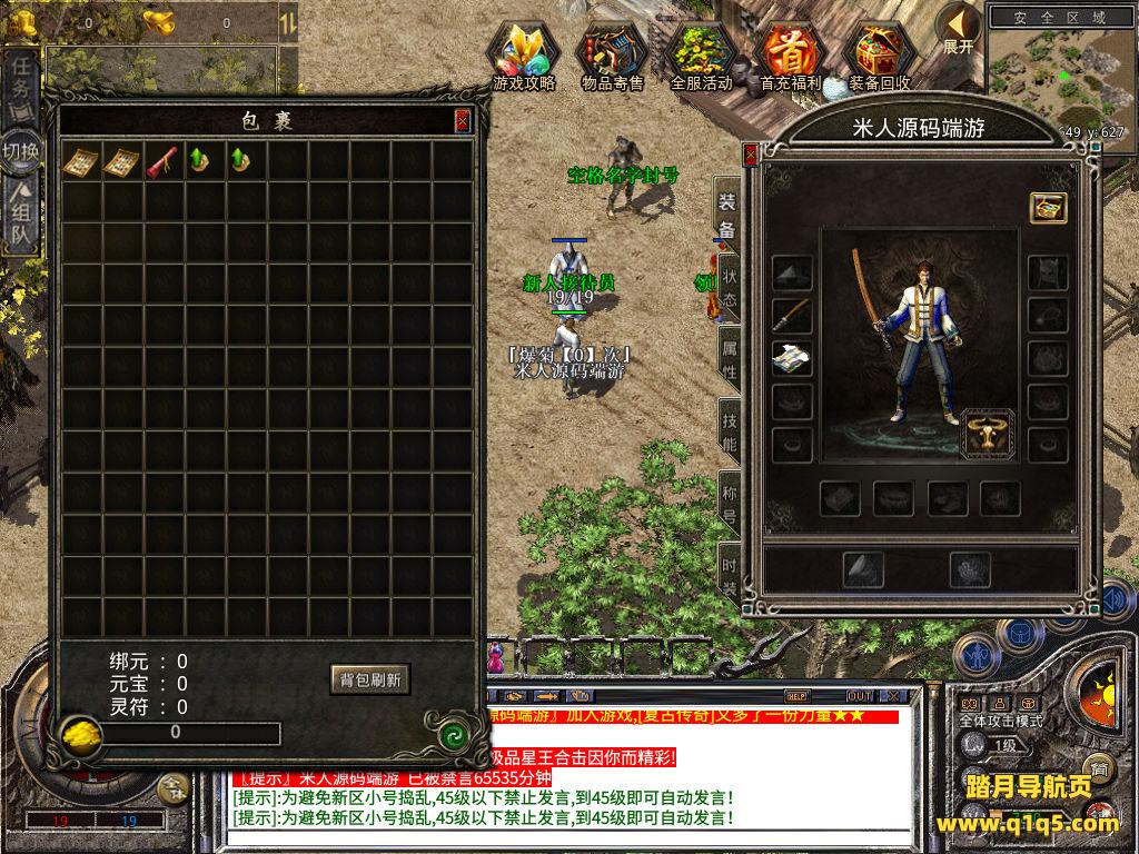 下面我们来测试下游戏里的功能看看。好了,其他功能就自行测试吧。更多的游戏资源可以访问www.q1q5.com下载,我们每款游戏资源均单独制作了独立的视频架设教程,让小白也可以快速上手游戏架设,快来体验自己做GM的乐趣吧!