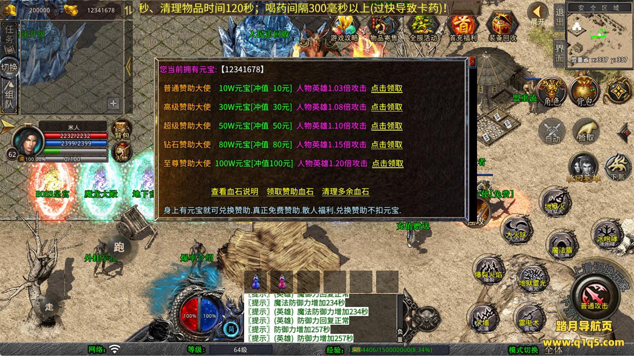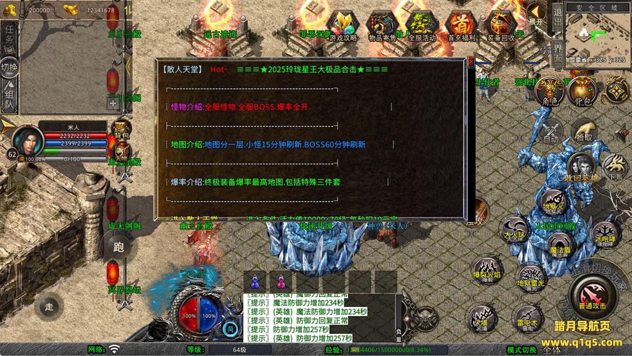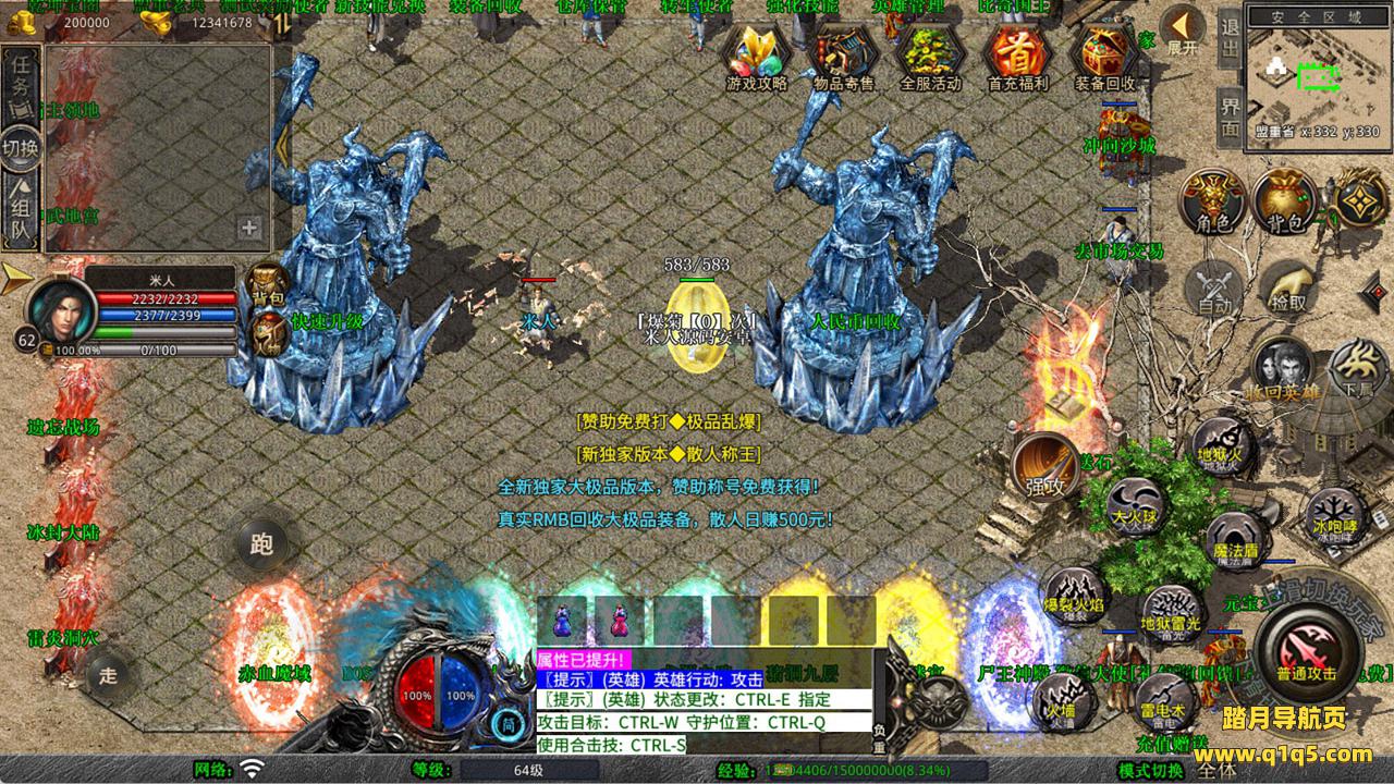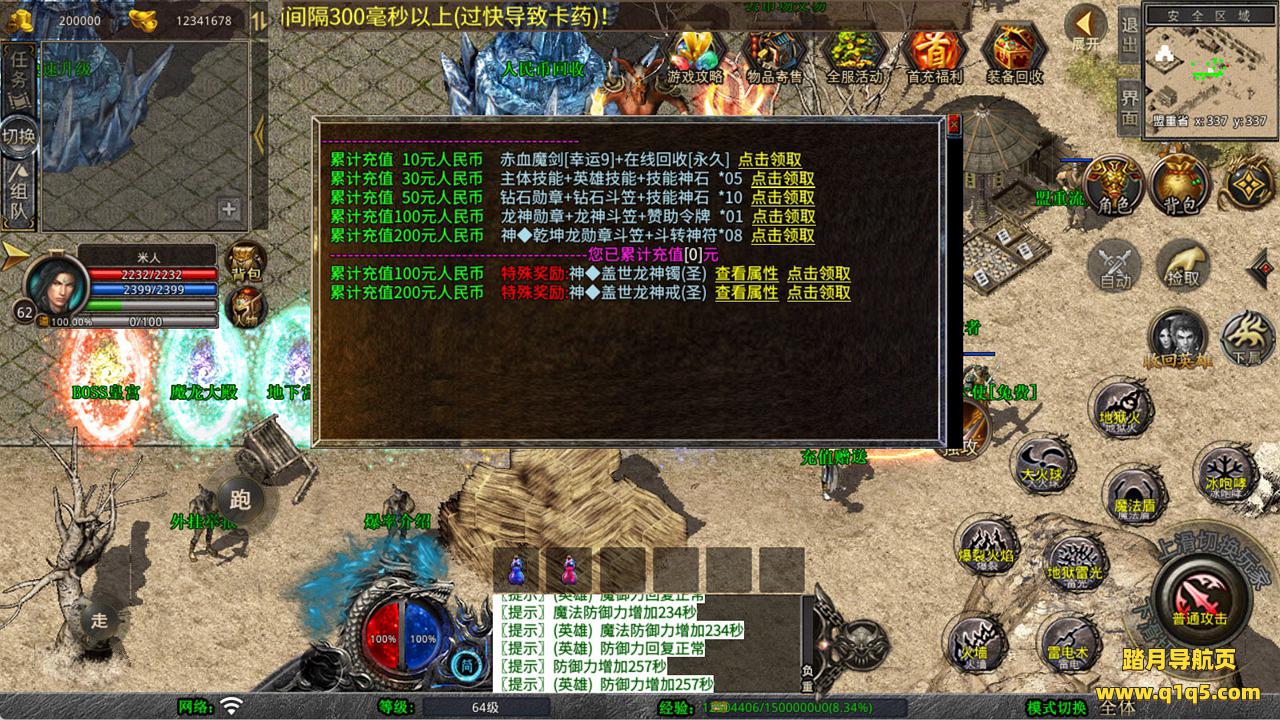 下面我们来测试下游戏里的功能看看。好了,其他功能就自行测试吧。更多的游戏资源可以访问www.q1q5.com下载,我们每款游戏资源均单独制作了独立的视频架设教程,让小白也可以快速上手游戏架设,快来体验自己做GM的乐趣吧!