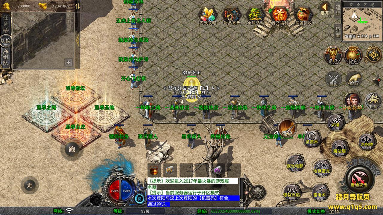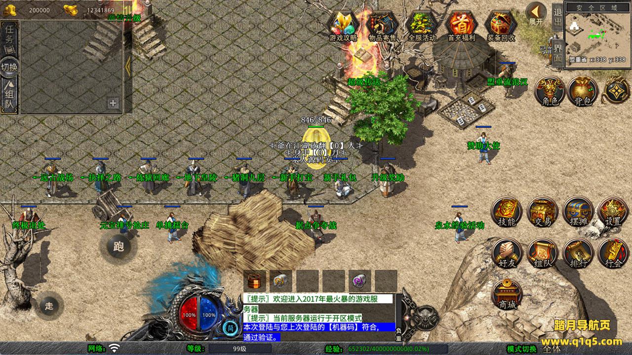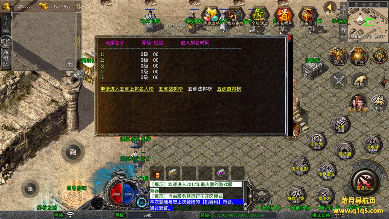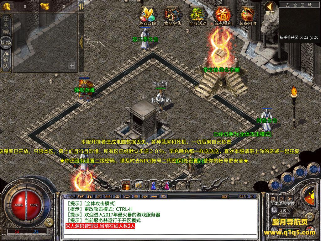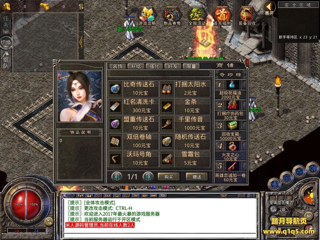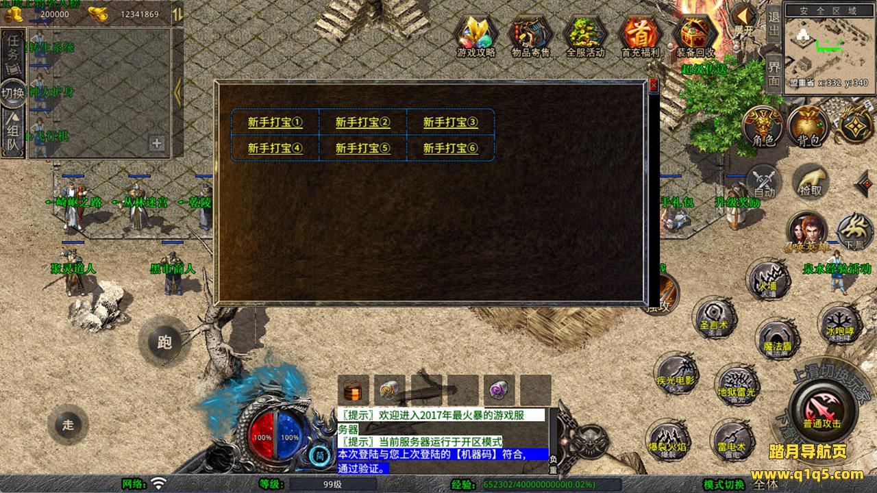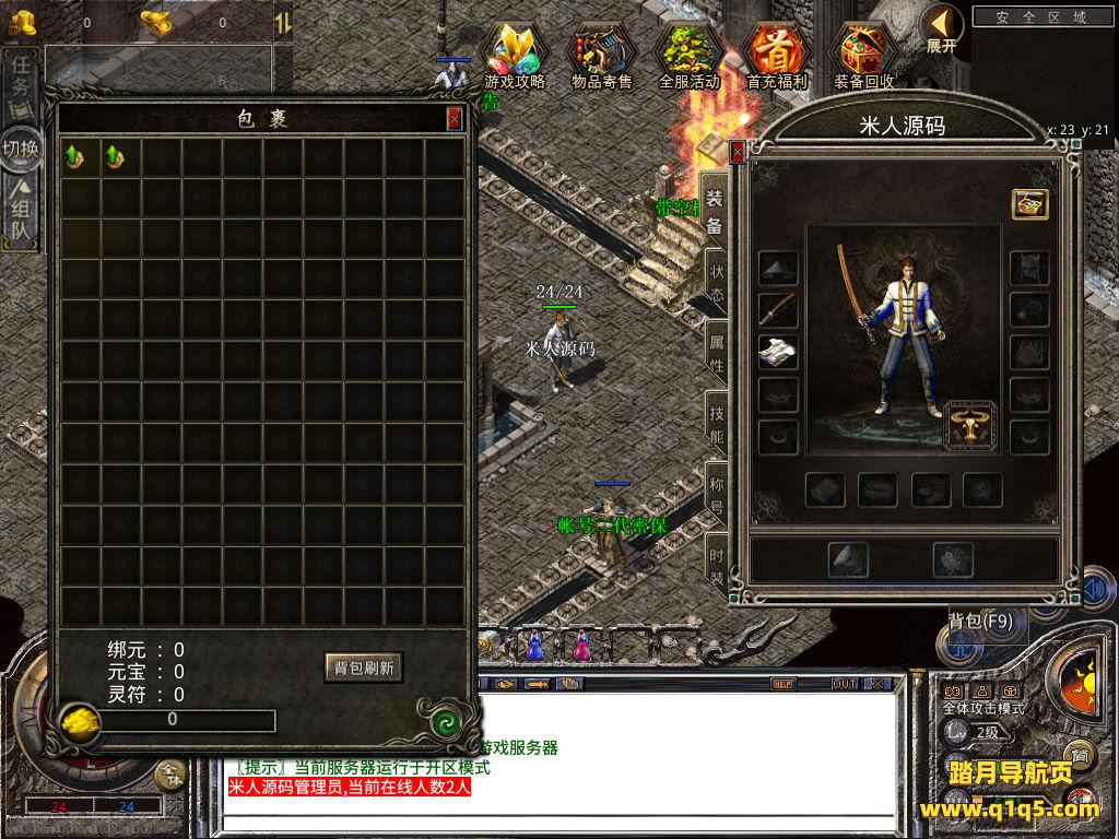 下面我们去测试下游戏里的功能看看。好了。其他功能就自行测试吧。更多的游戏资源可以访问www.q1q5.com下载,我们每款游戏资源均单独制作了独立的视频架设教程,让小白也可以快速上手游戏架设,快来体验自己做GM的乐趣吧!