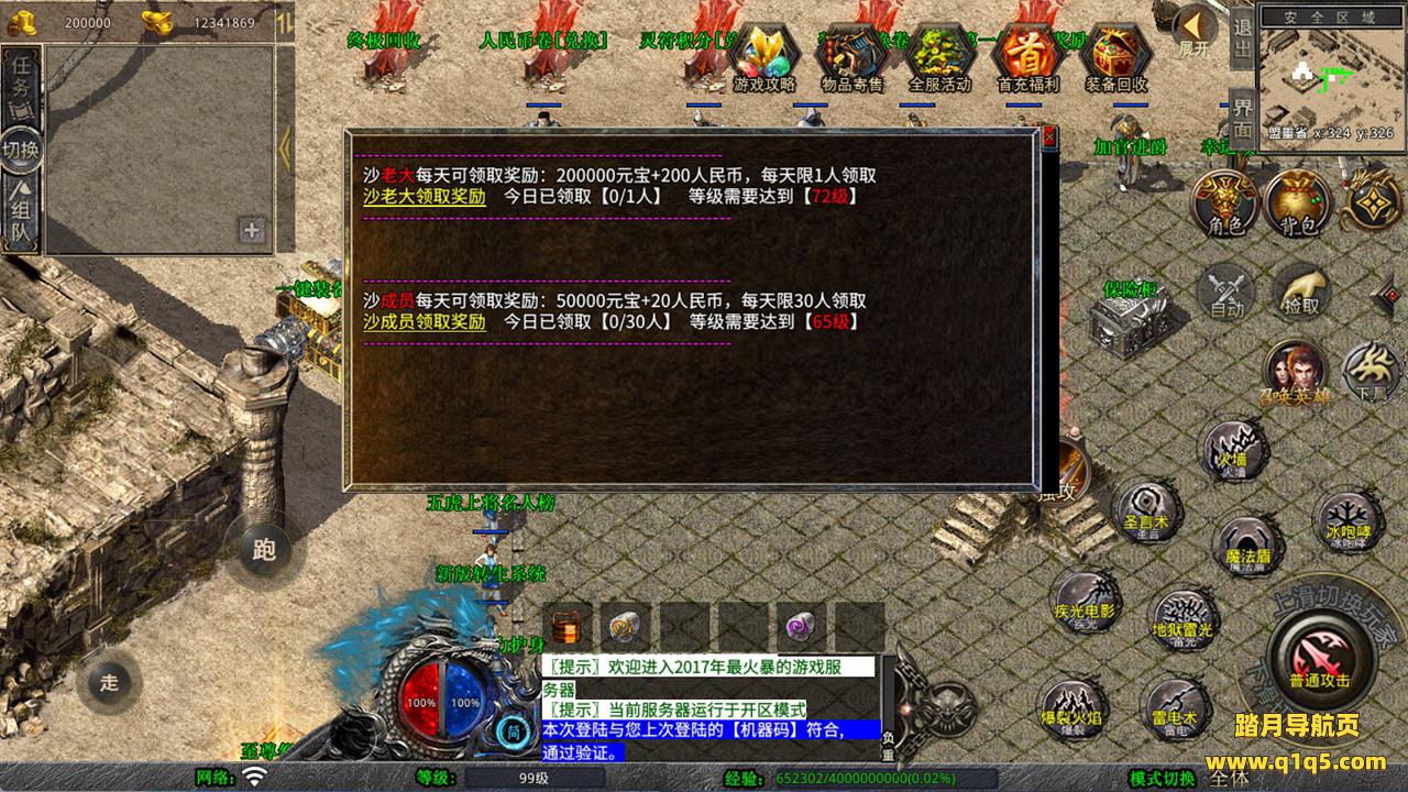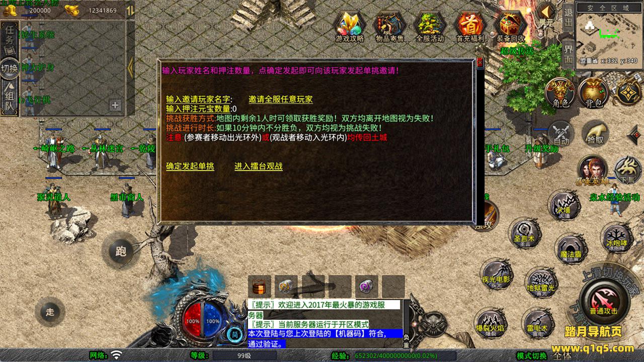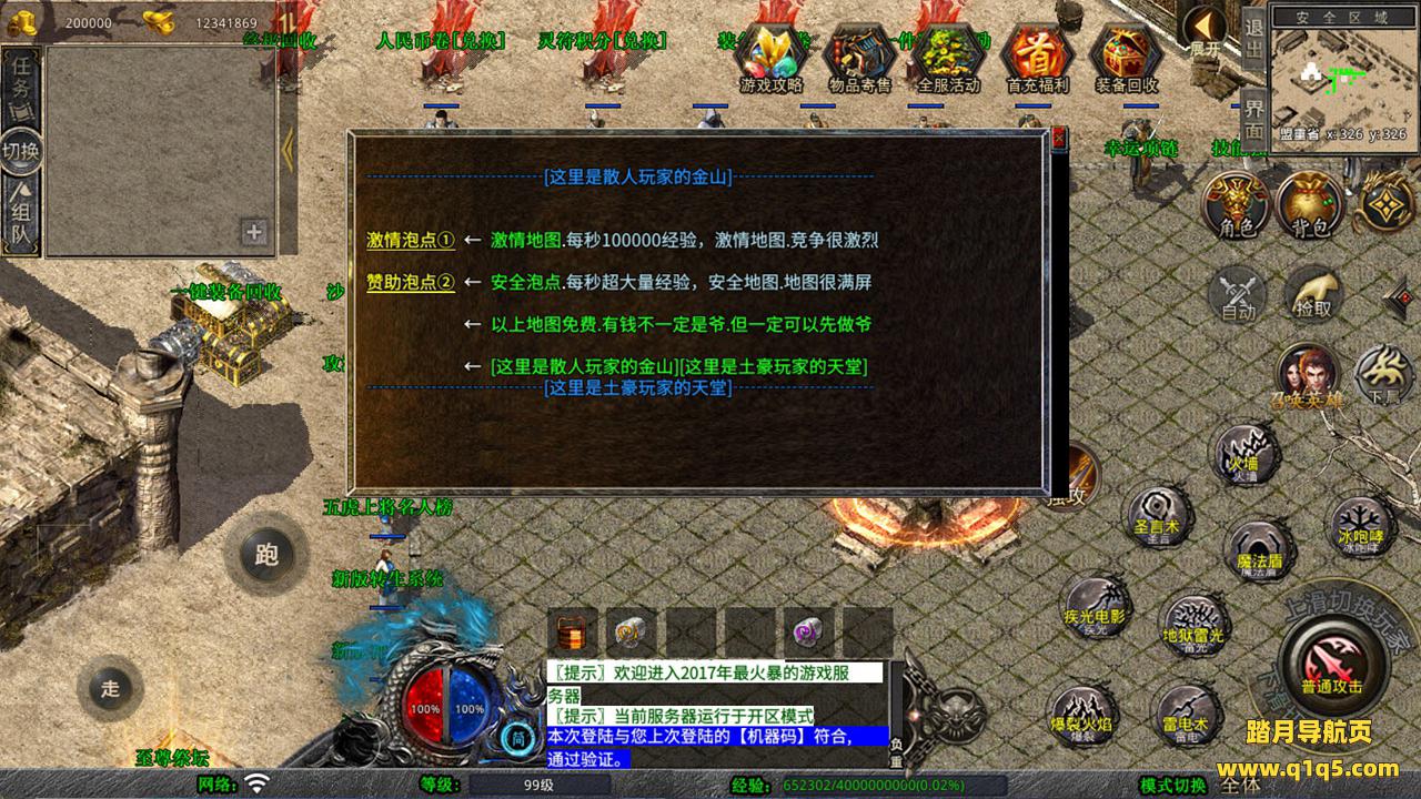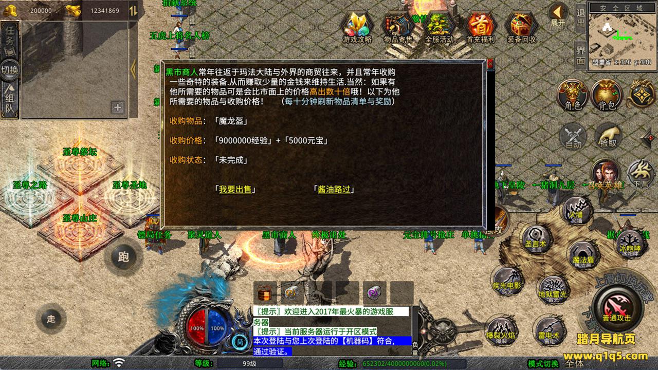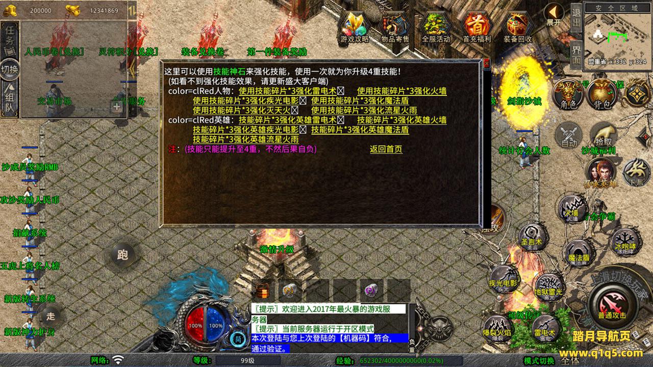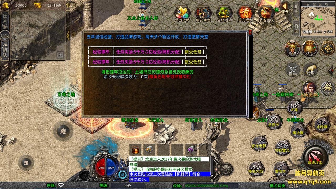 下面我们去测试下游戏里的功能看看。好了。其他功能就自行测试吧。更多的游戏资源可以访问www.q1q5.com下载,我们每款游戏资源均单独制作了独立的视频架设教程,让小白也可以快速上手游戏架设,快来体验自己做GM的乐趣吧!