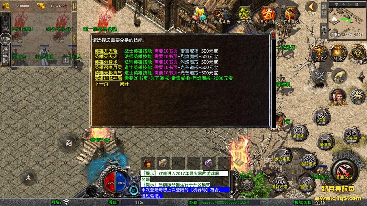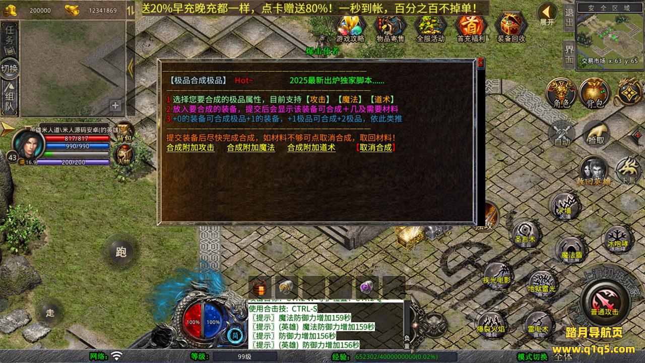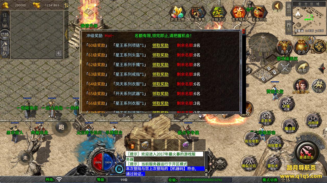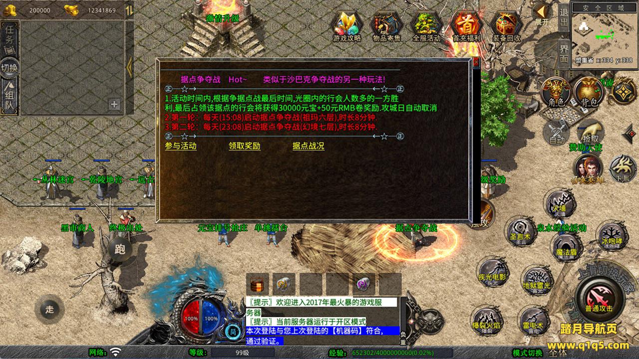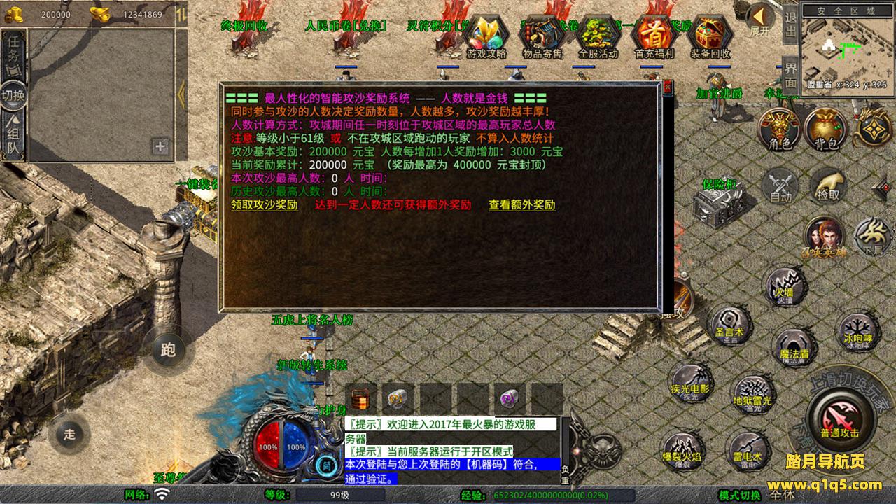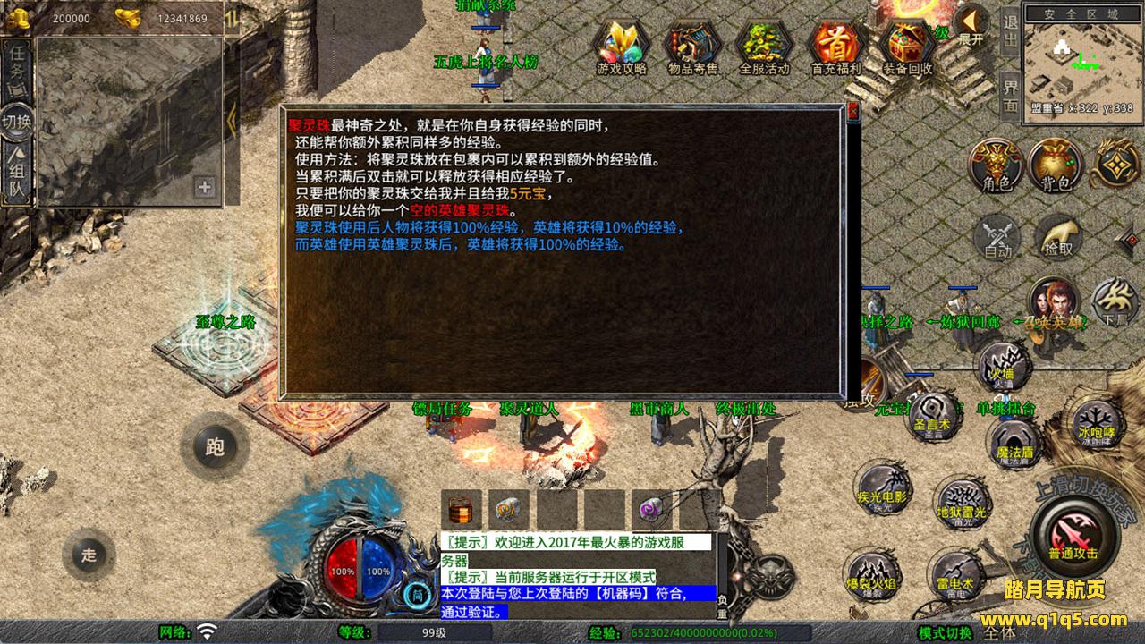 下面我们去测试下游戏里的功能看看。好了。其他功能就自行测试吧。更多的游戏资源可以访问www.q1q5.com下载,我们每款游戏资源均单独制作了独立的视频架设教程,让小白也可以快速上手游戏架设,快来体验自己做GM的乐趣吧!