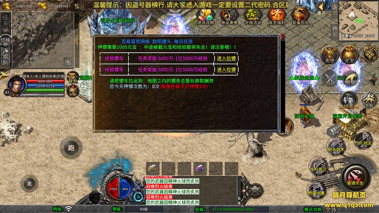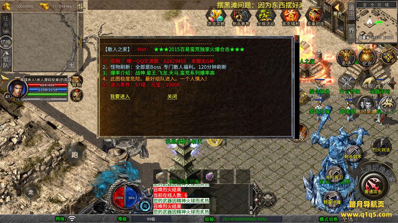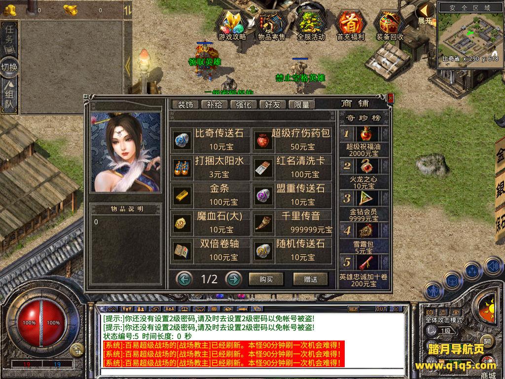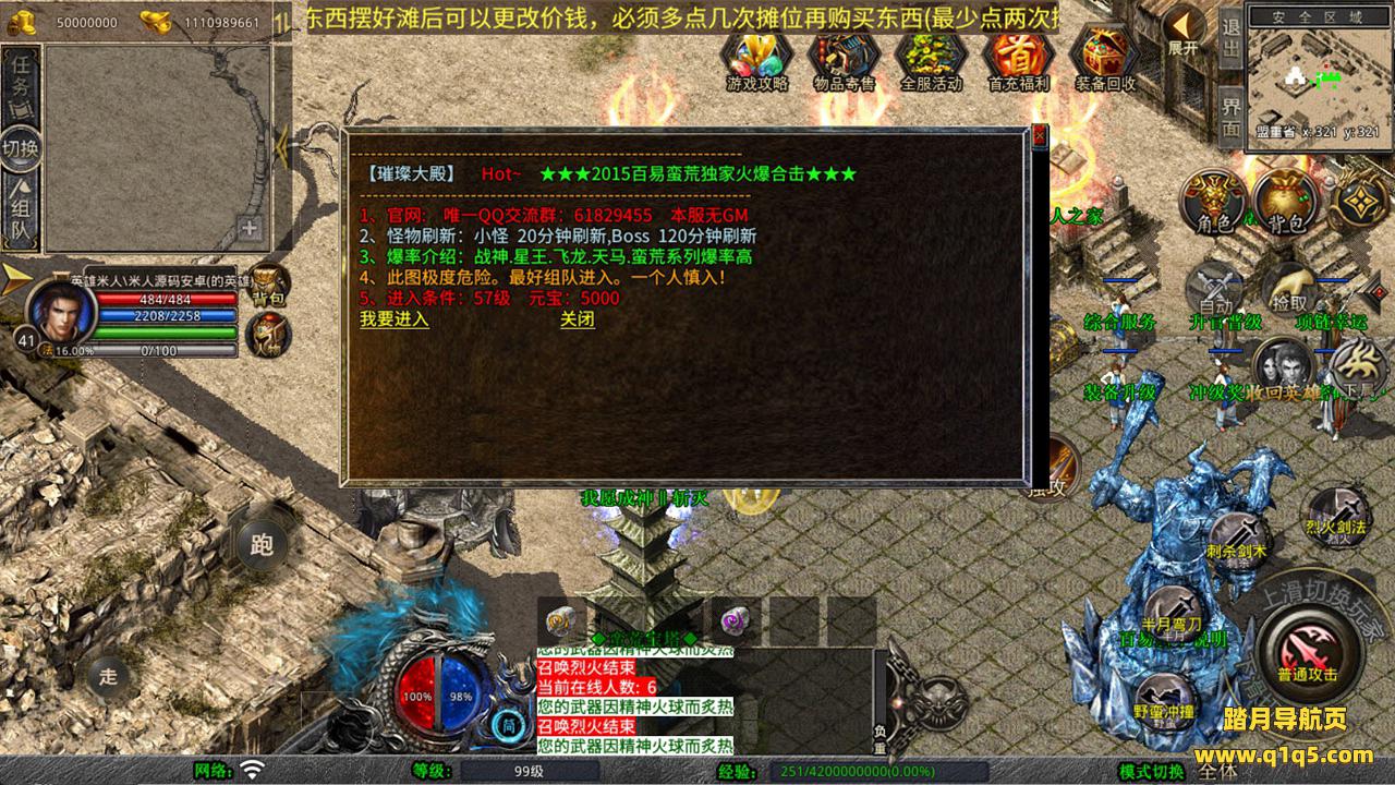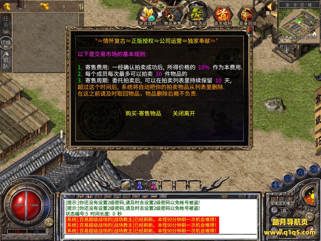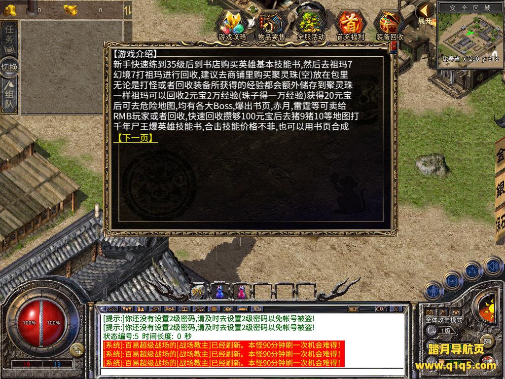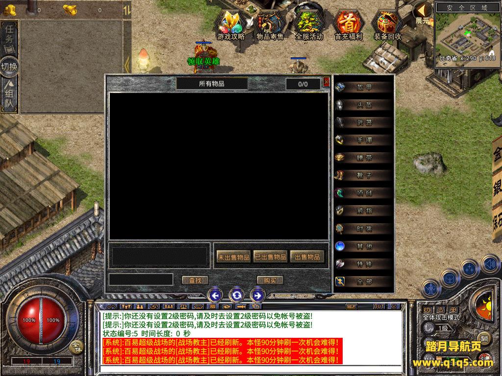 下面我们测试下游戏里的功能看看。好了,其他功能就自行测试吧。更多的游戏资源可以访问www.q1q5.com下载,我们每款游戏资源均单独制作了独立的视频架设教程,让小白也可以快速上手游戏架设,快来体验自己做GM的乐趣吧!