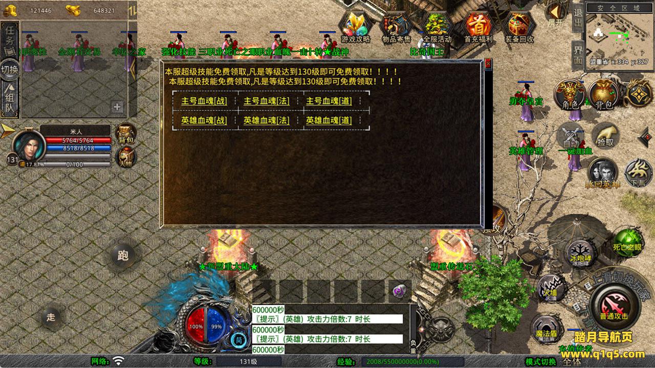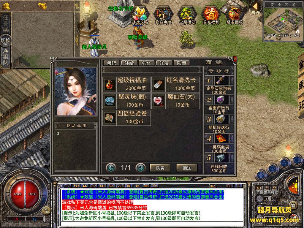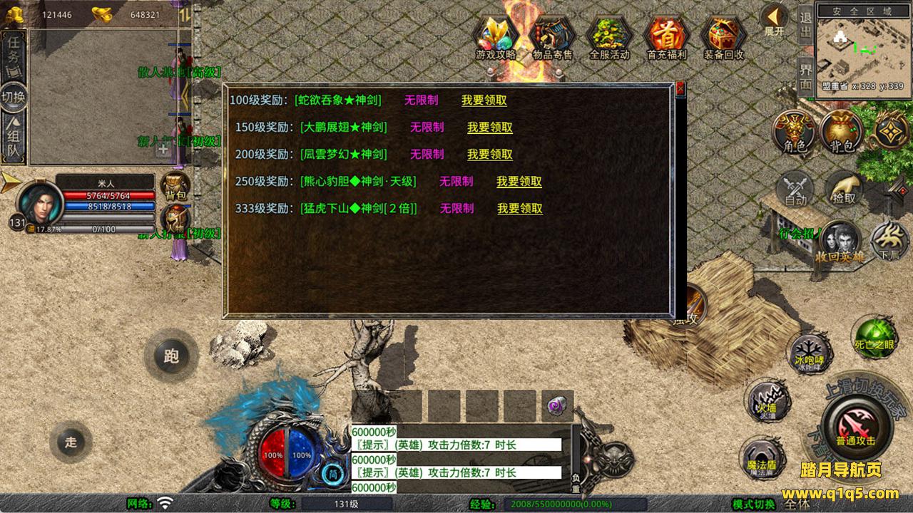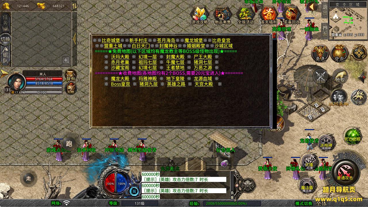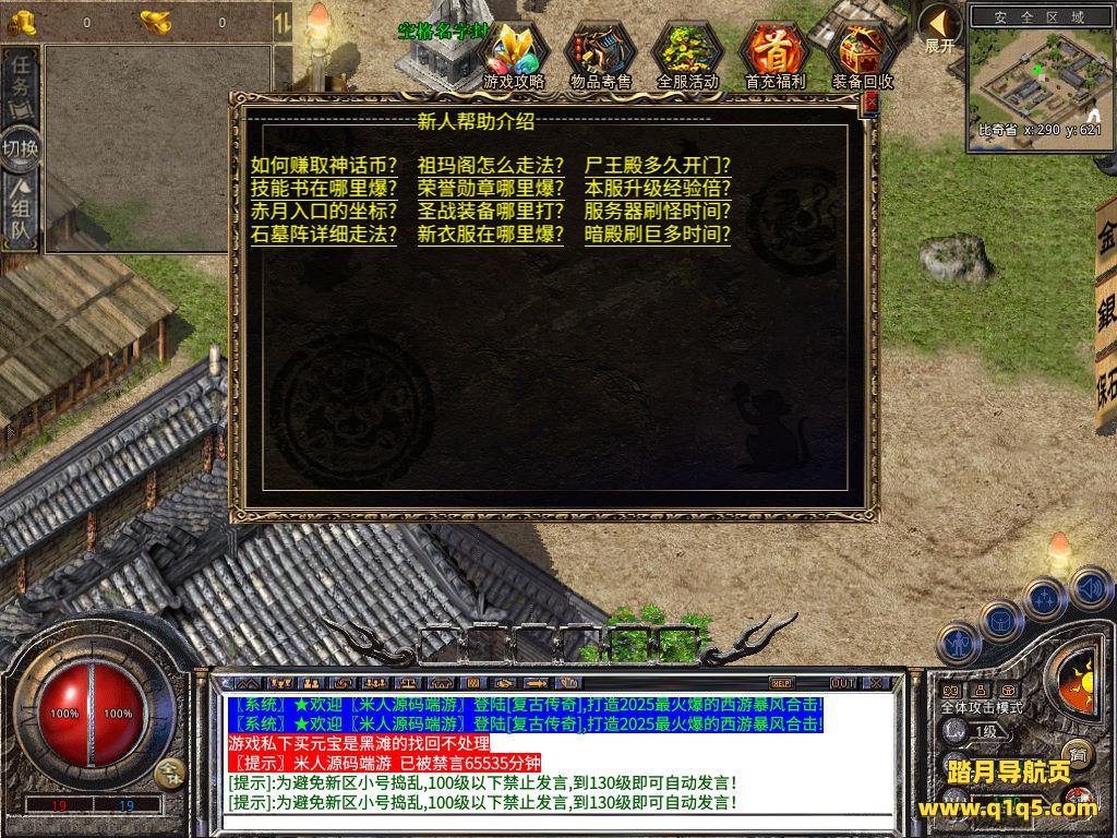 下面我们来测试下游戏里的功能看看。好了,其他功能就自行测试吧。更多的游戏资源可以访问www.q1q5.com下载,我们每款游戏资源均单独制作了独立的视频架设教程,让小白也可以快速上手游戏架设,快来体验自己做GM的乐趣吧!