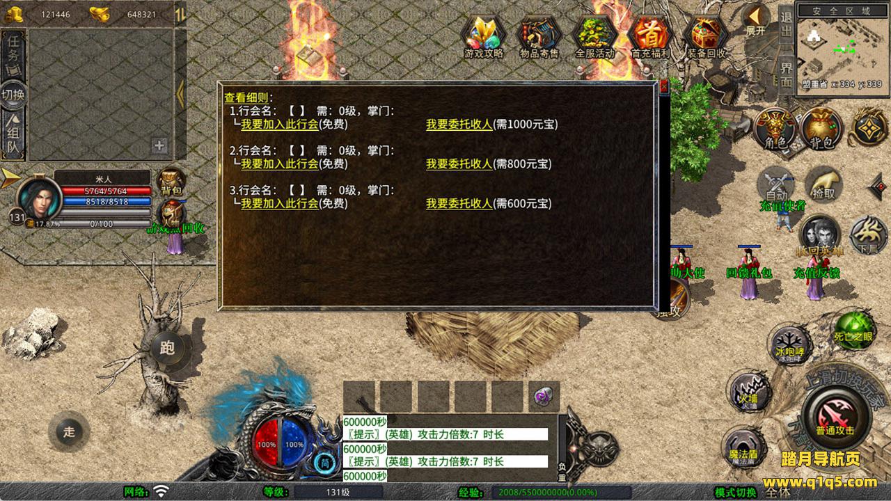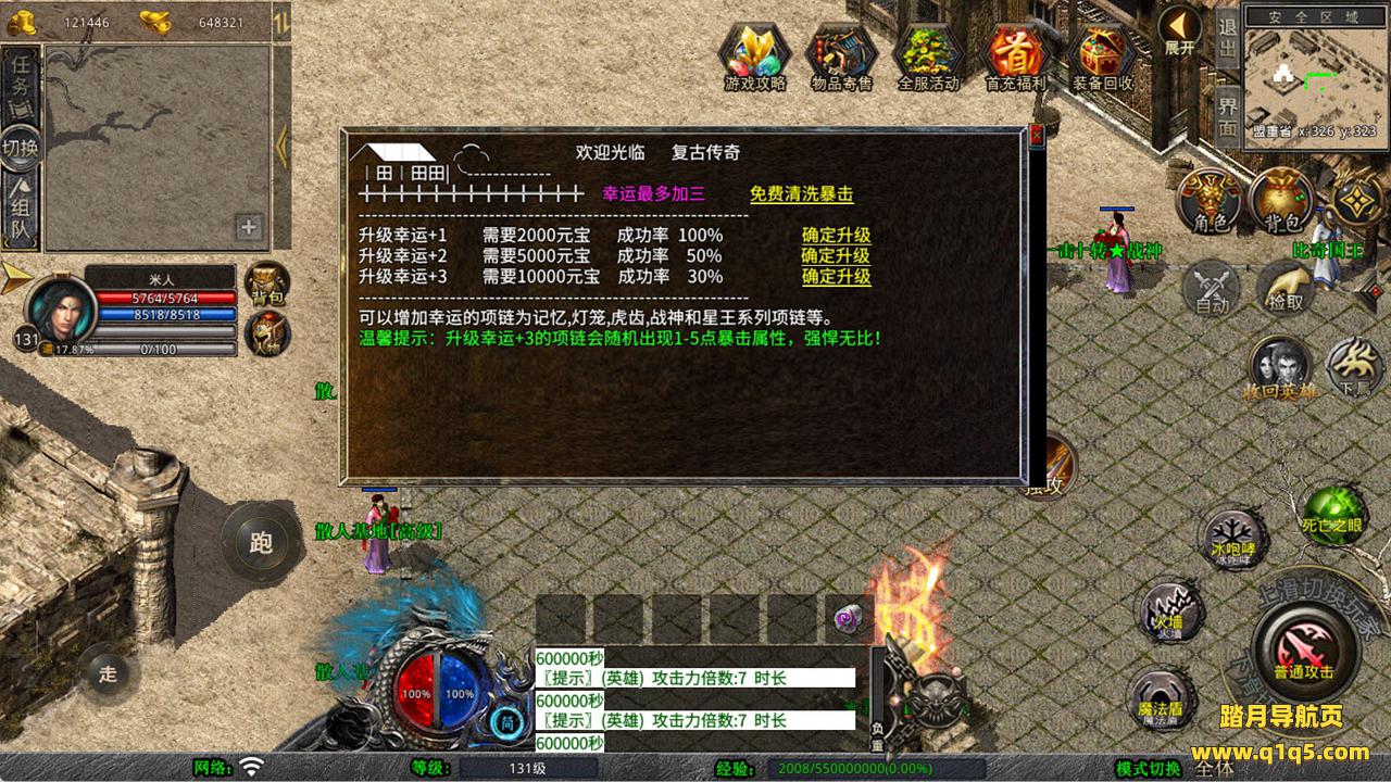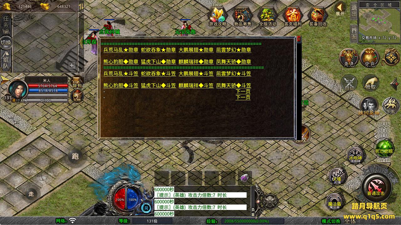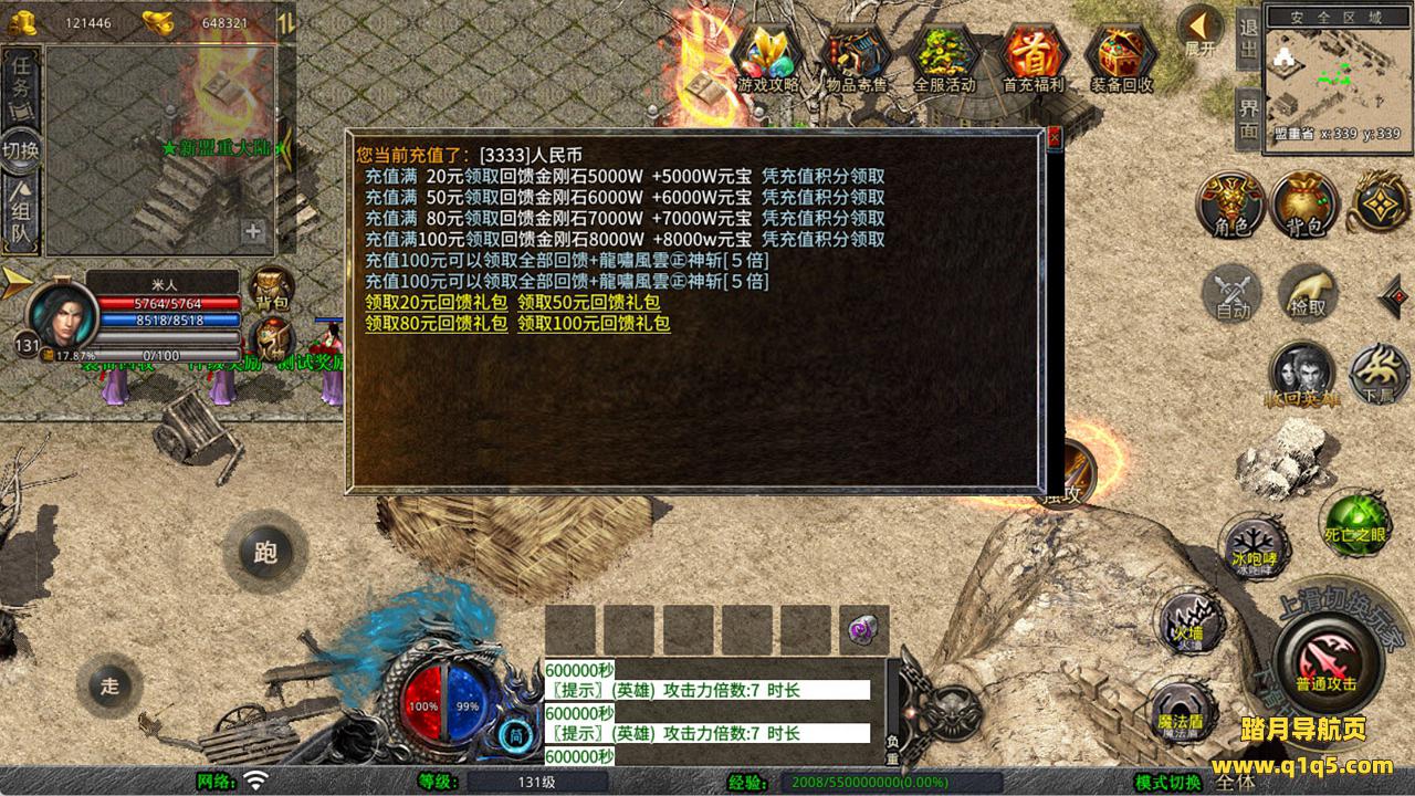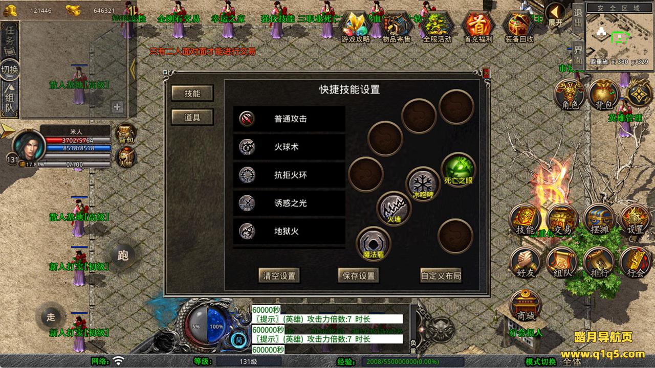 下面我们来测试下游戏里的功能看看。好了,其他功能就自行测试吧。更多的游戏资源可以访问www.q1q5.com下载,我们每款游戏资源均单独制作了独立的视频架设教程,让小白也可以快速上手游戏架设,快来体验自己做GM的乐趣吧!