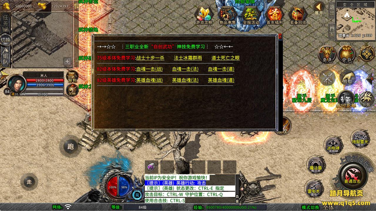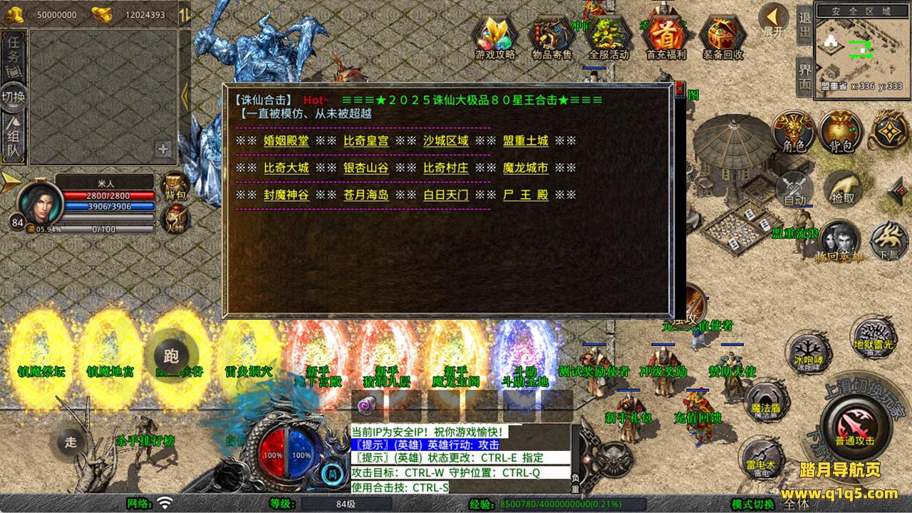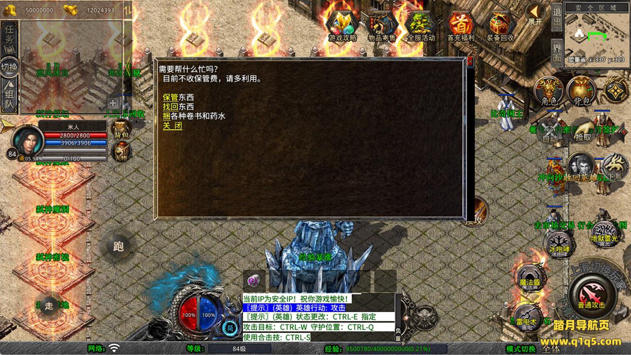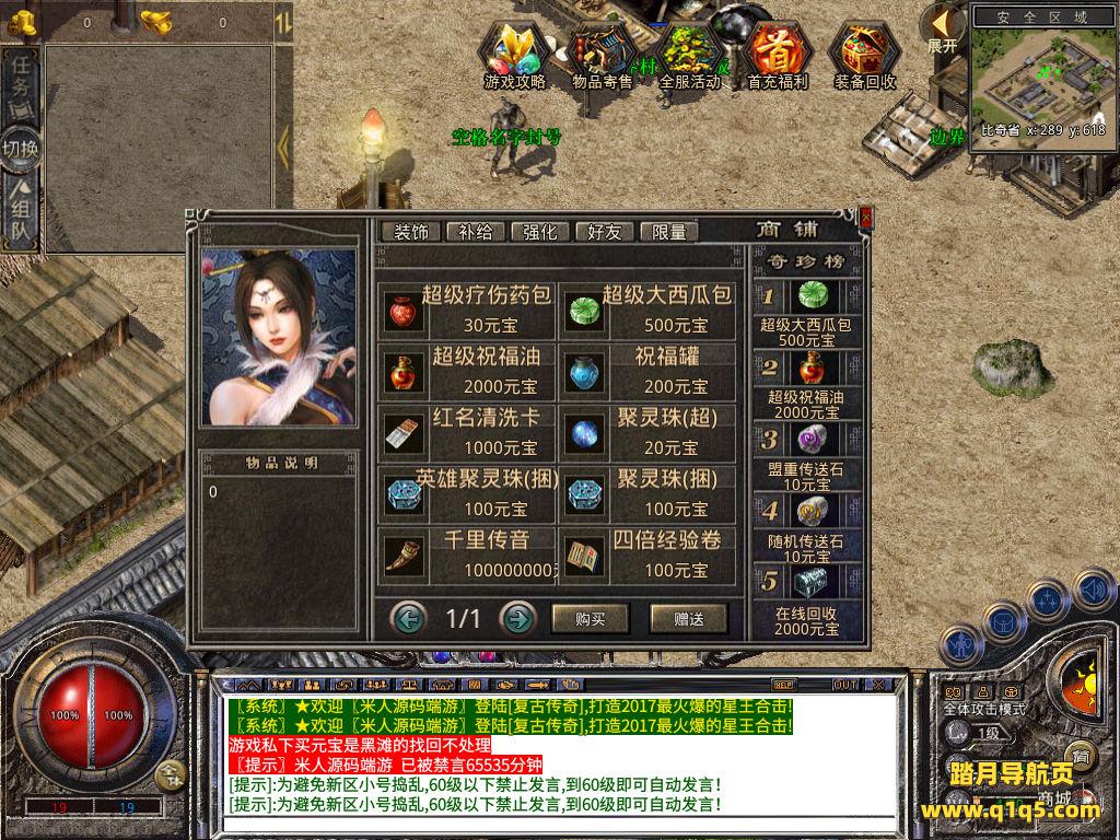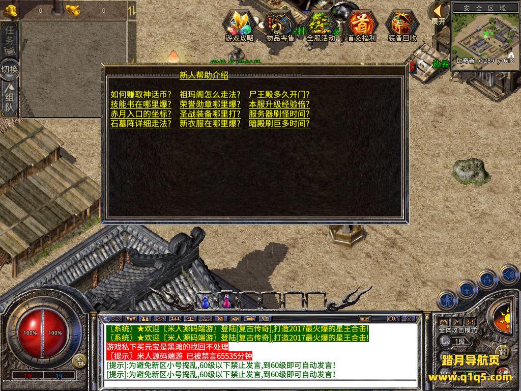 下面我们来测试下游戏里的功能看看。好了,其他功能就自行测试吧。更多的游戏资源可以访问www.q1q5.com下载,我们每款游戏资源均单独制作了独立的视频架设教程,让小白也可以快速上手游戏架设,快来体验自己做GM的乐趣吧!