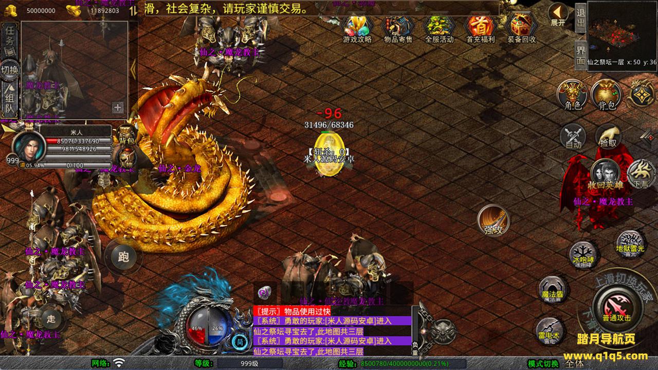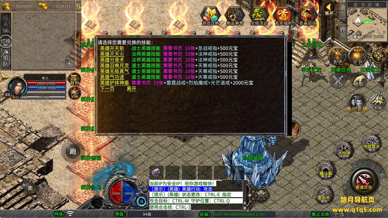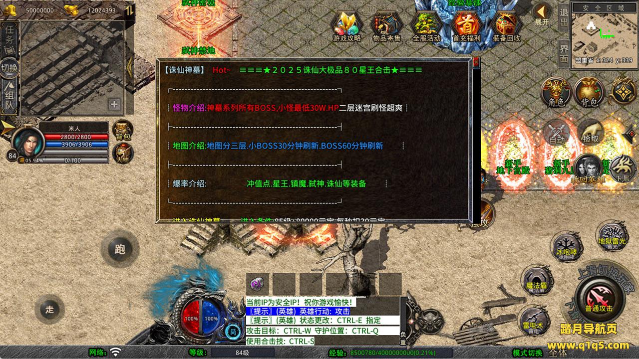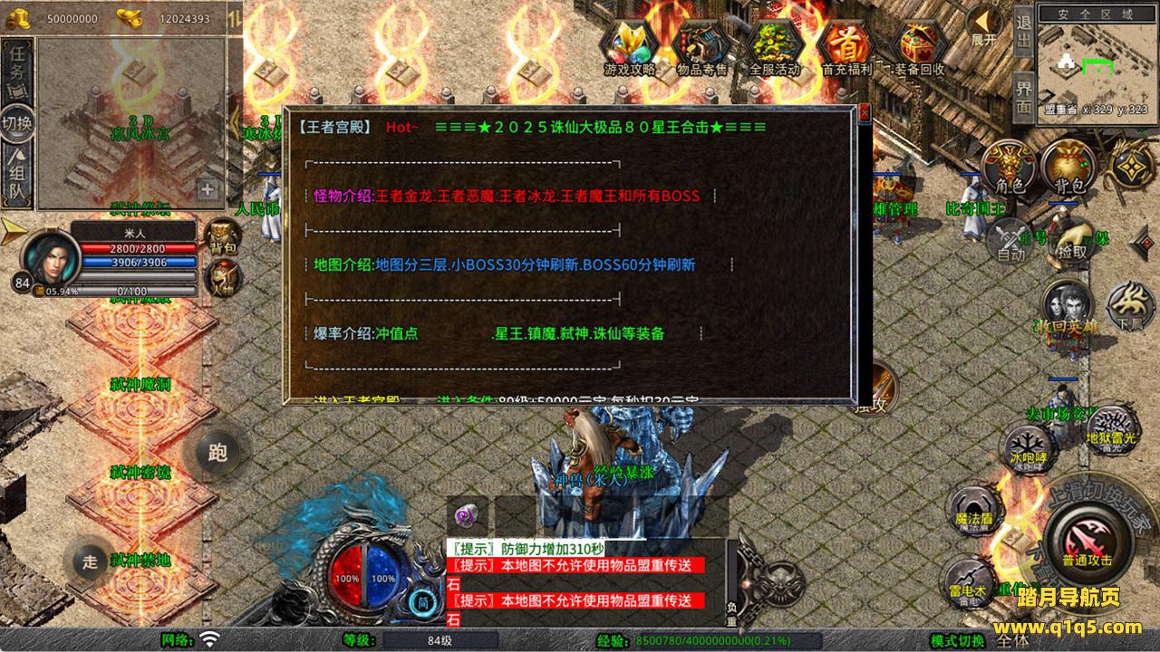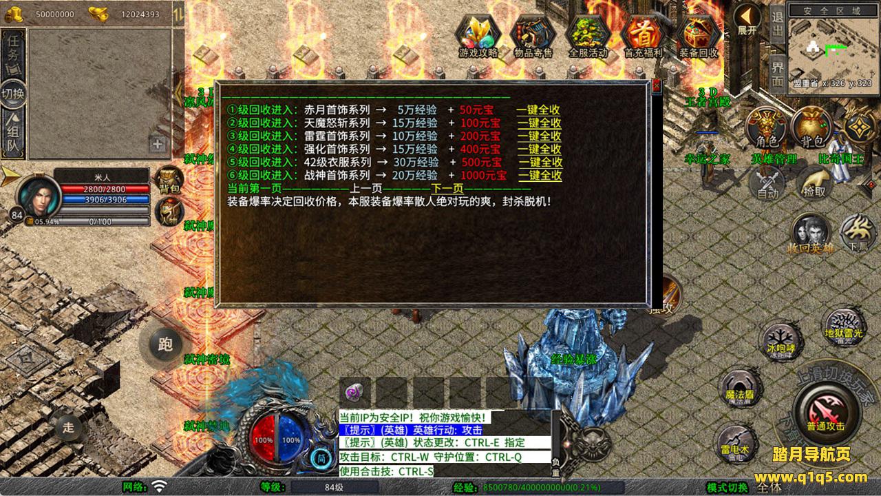 下面我们来测试下游戏里的功能看看。好了,其他功能就自行测试吧。更多的游戏资源可以访问www.q1q5.com下载,我们每款游戏资源均单独制作了独立的视频架设教程,让小白也可以快速上手游戏架设,快来体验自己做GM的乐趣吧!