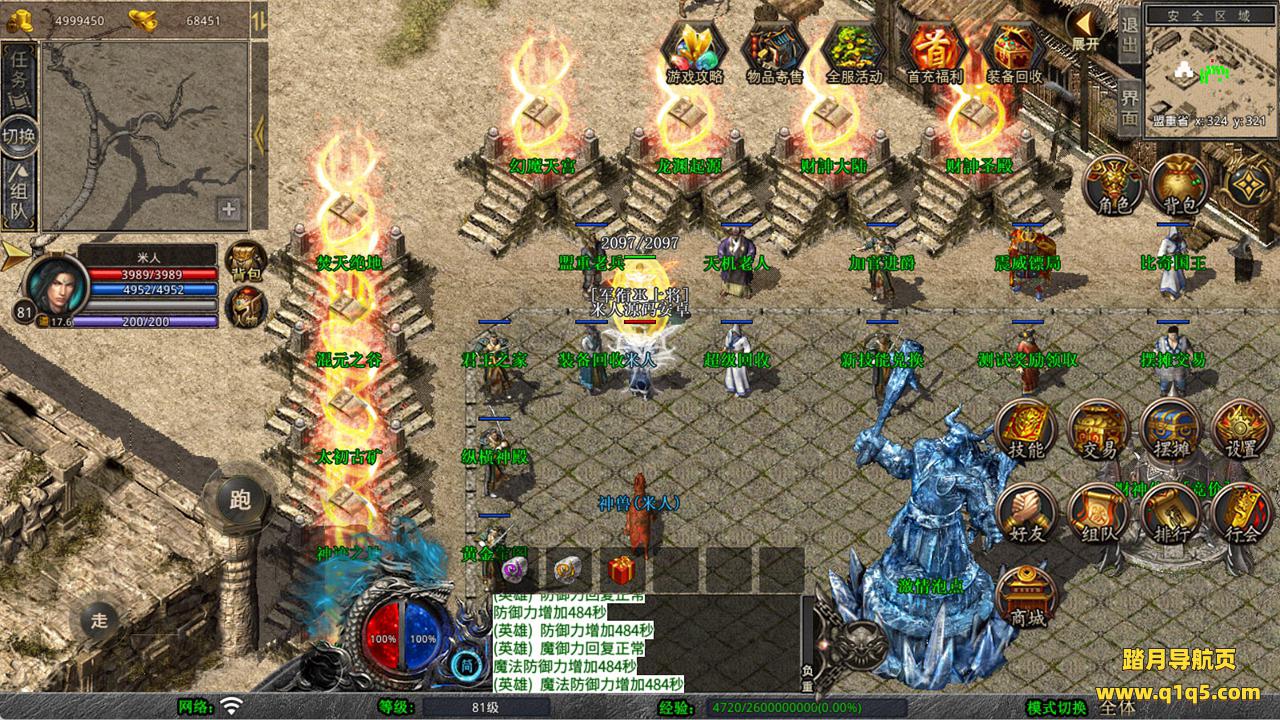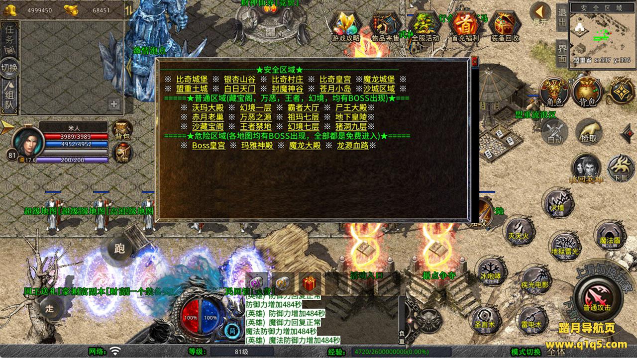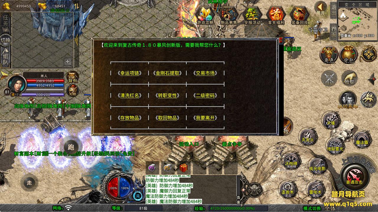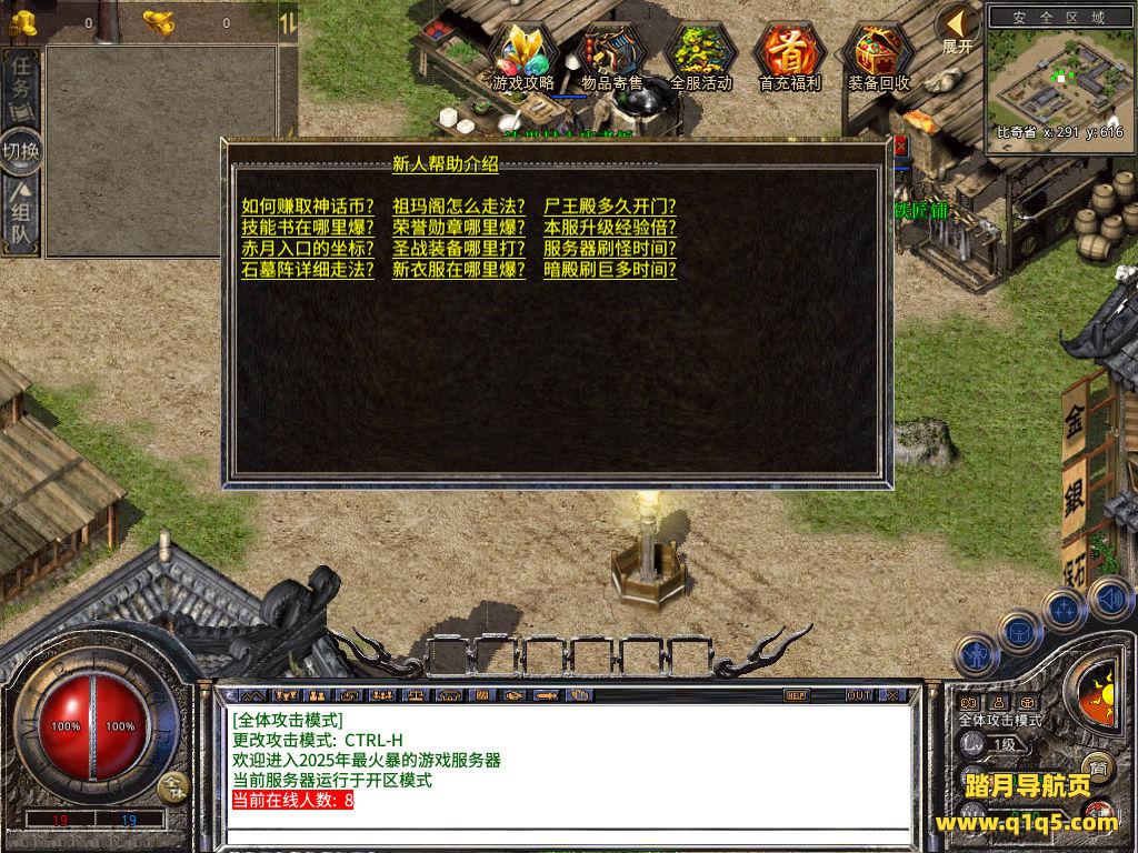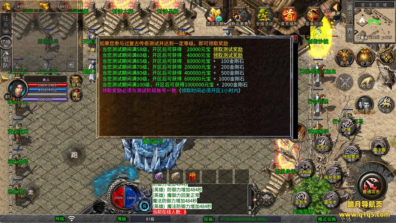 下面我们来测试下游戏里的功能看看吧。好了,其他功能就自行测试吧。更多的游戏资源可以访问www.q1q5.com下载,我们每款游戏资源均单独制作了独立的视频架设教程,让小白也可以快速上手游戏架设,快来体验自己做GM的乐趣吧!