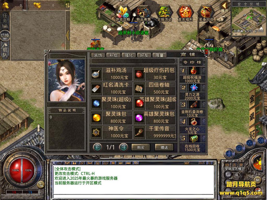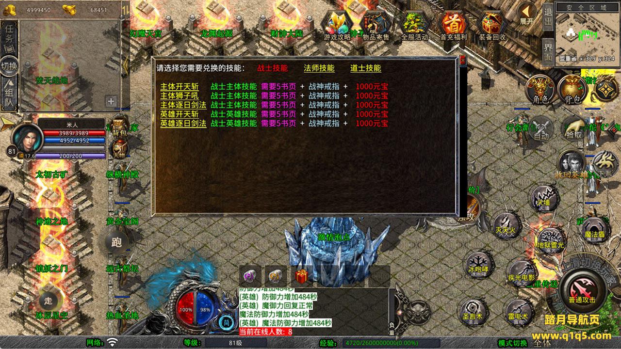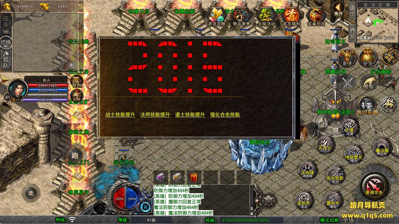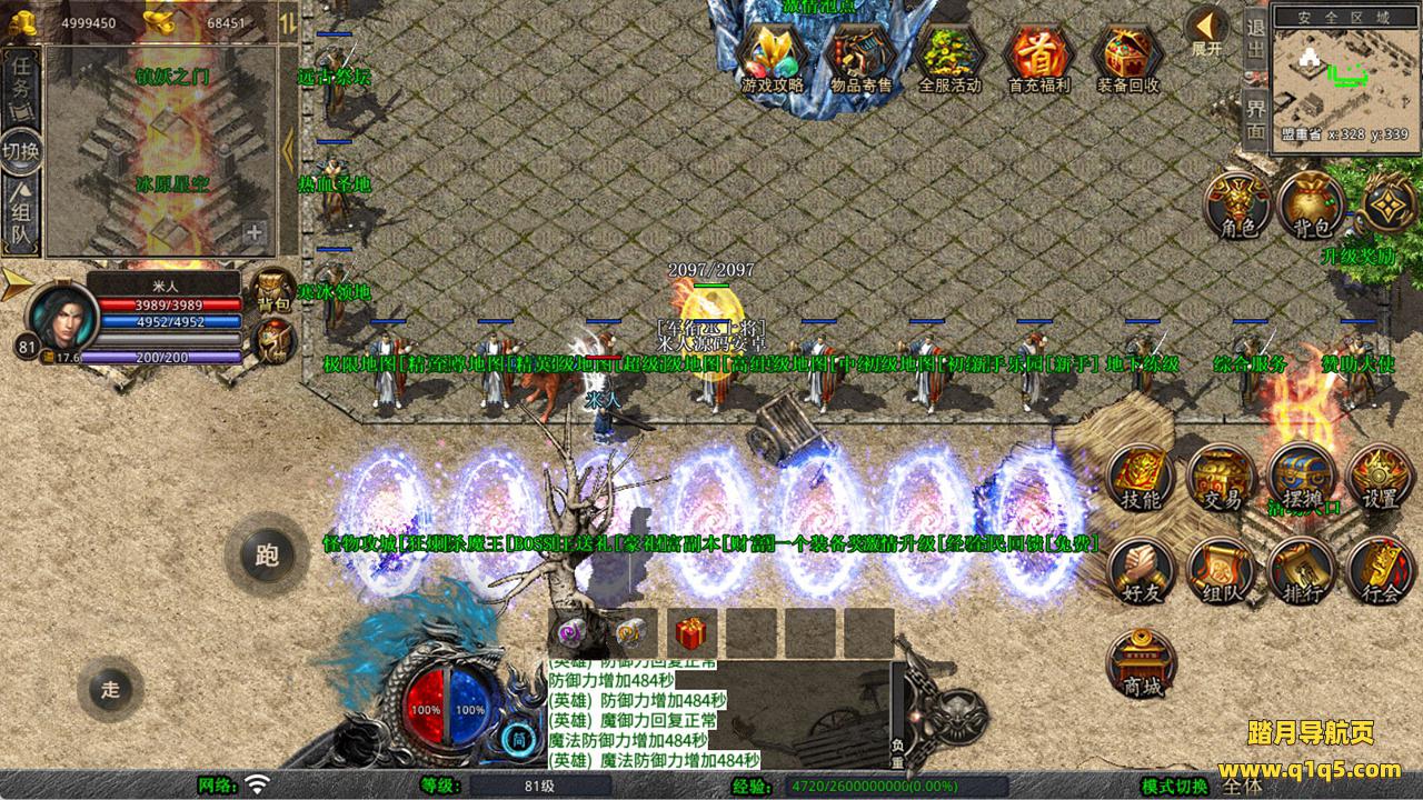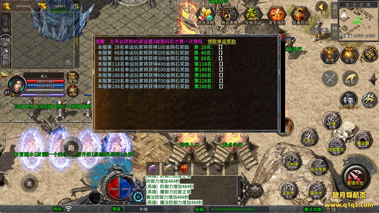 下面我们来测试下游戏里的功能看看吧。好了,其他功能就自行测试吧。更多的游戏资源可以访问www.q1q5.com下载,我们每款游戏资源均单独制作了独立的视频架设教程,让小白也可以快速上手游戏架设,快来体验自己做GM的乐趣吧!