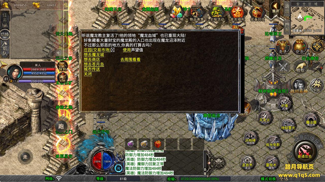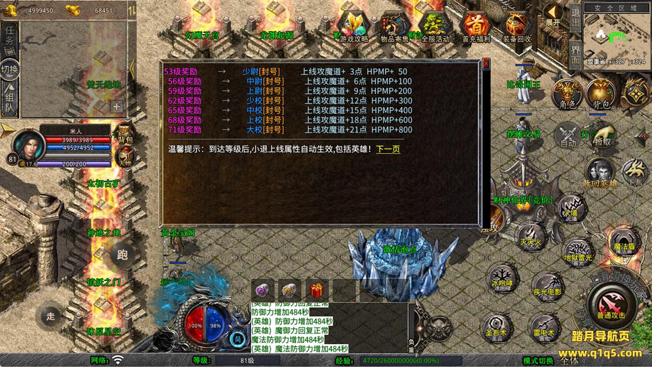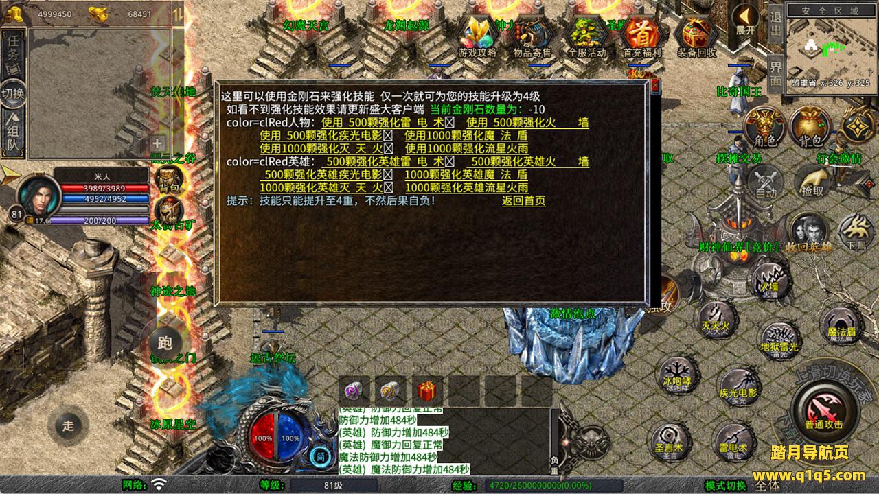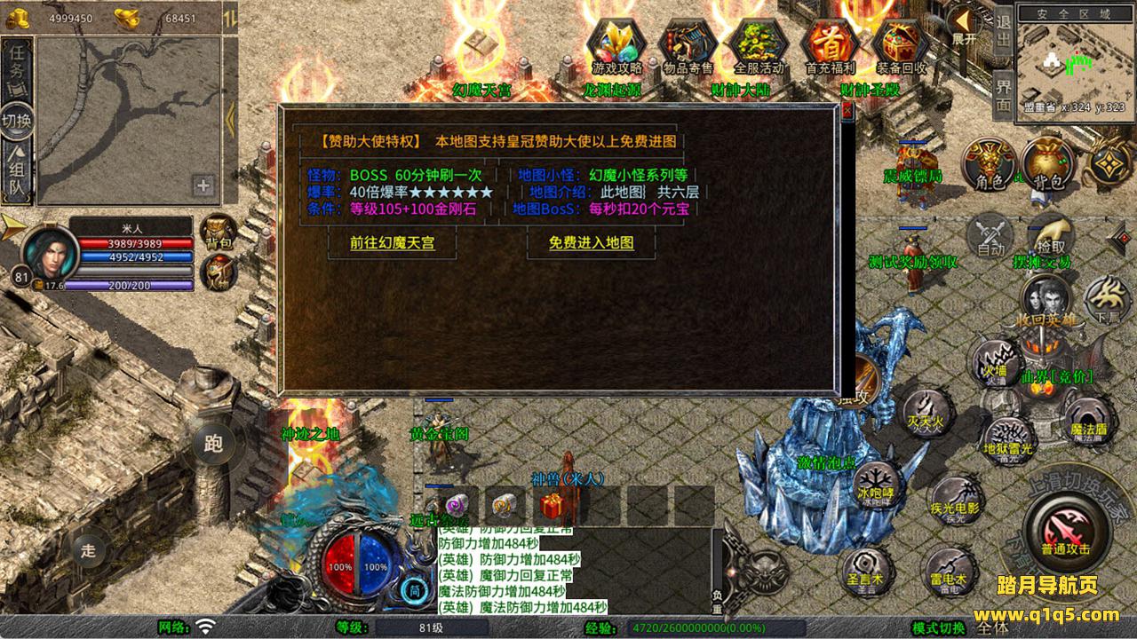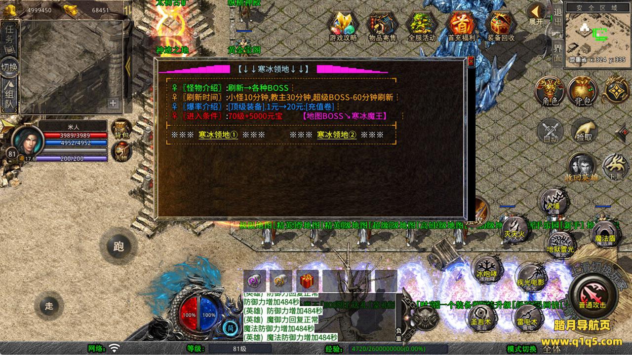 下面我们来测试下游戏里的功能看看吧。好了,其他功能就自行测试吧。更多的游戏资源可以访问www.q1q5.com下载,我们每款游戏资源均单独制作了独立的视频架设教程,让小白也可以快速上手游戏架设,快来体验自己做GM的乐趣吧!
