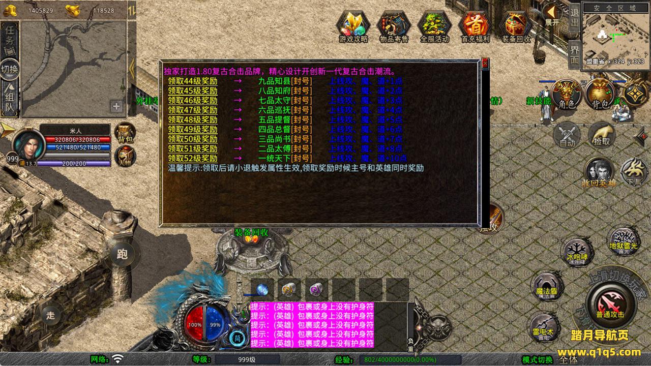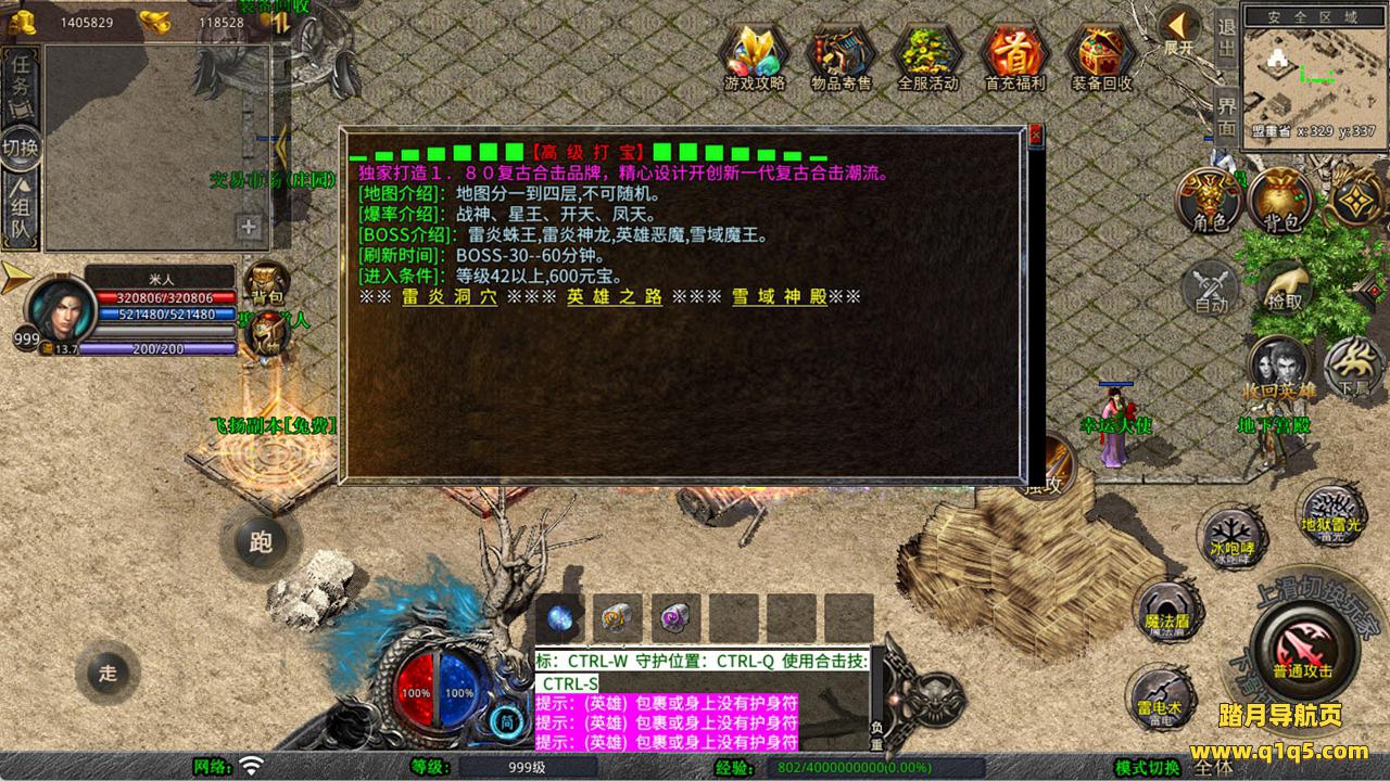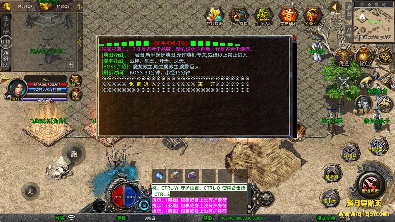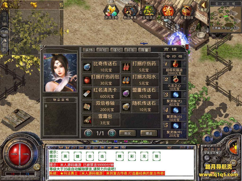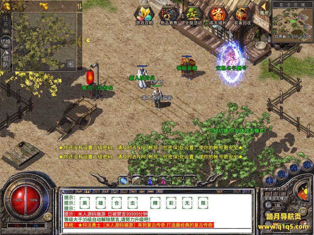 下面我们来测试下游戏里的功能看看。好了,其他功能就自行测试吧。更多的游戏资源可以访问www.q1q5.com下载,我们每款游戏资源均单独制作了独立的视频架设教程,让小白也可以快速上手游戏架设,快来体验自己做GM的乐趣吧!