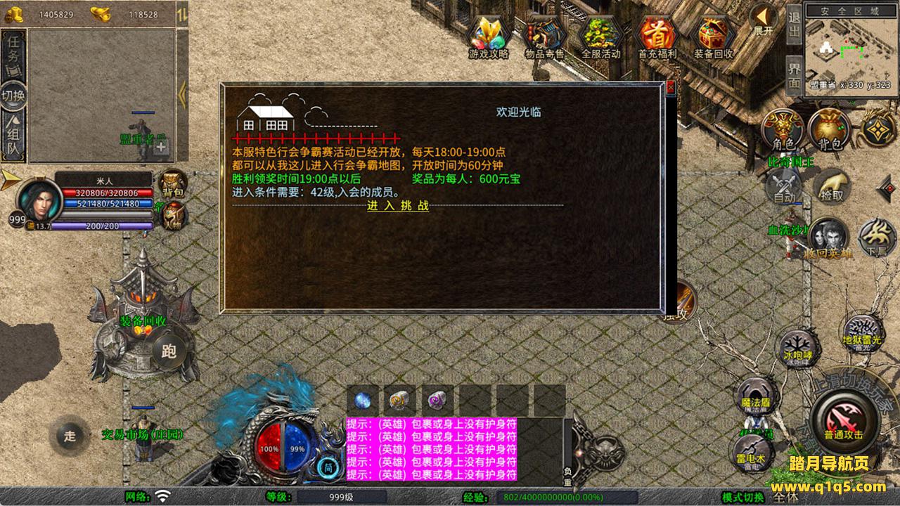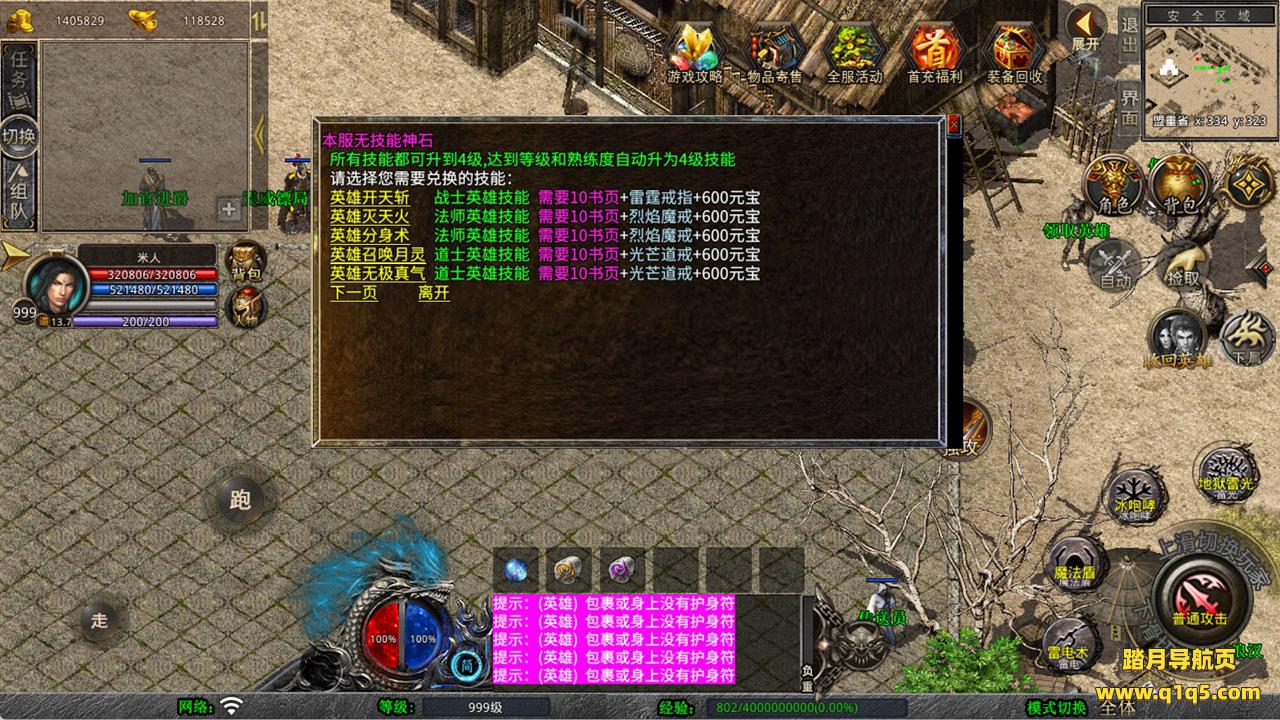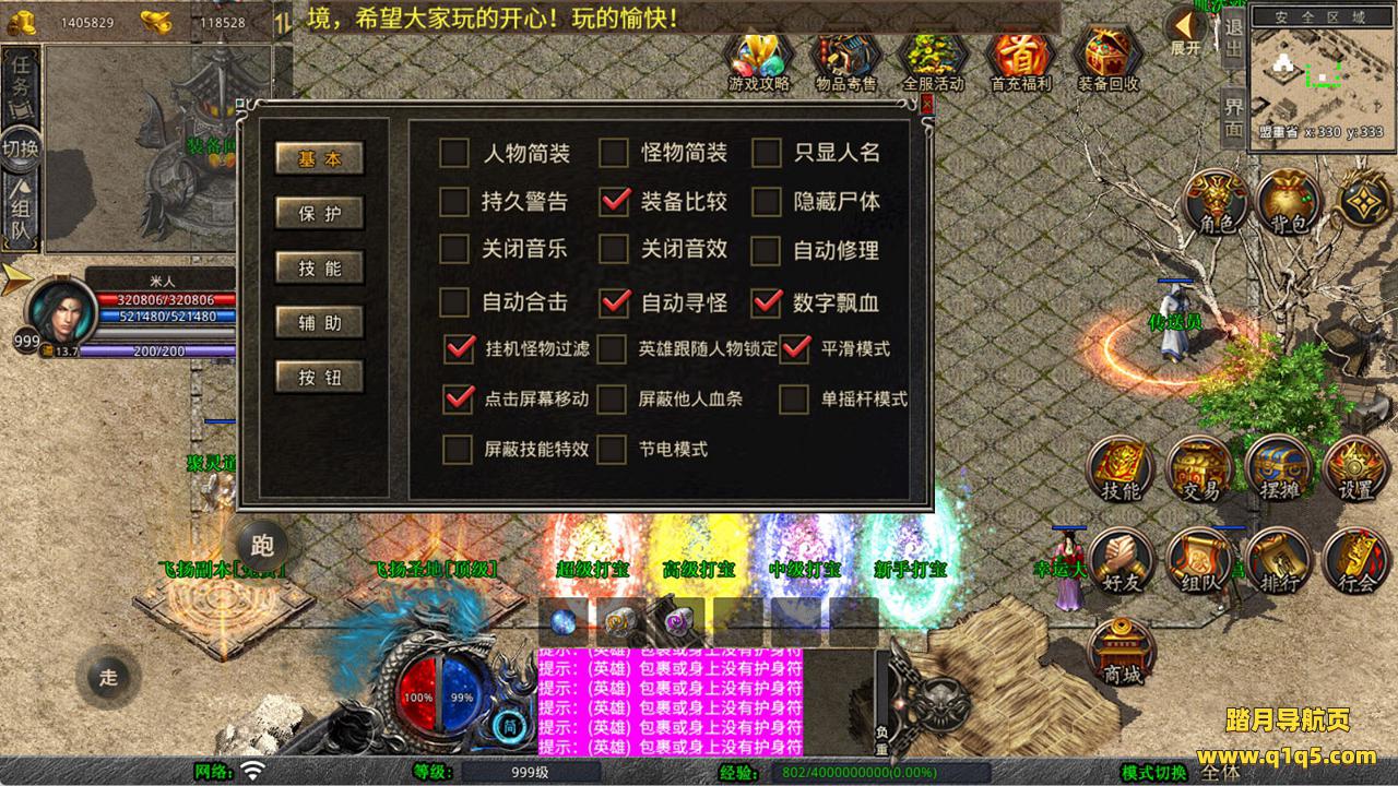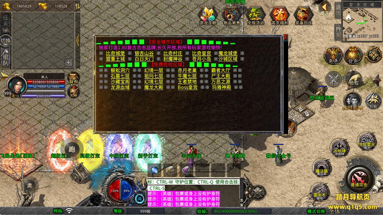 下面我们来测试下游戏里的功能看看。好了,其他功能就自行测试吧。更多的游戏资源可以访问www.q1q5.com下载,我们每款游戏资源均单独制作了独立的视频架设教程,让小白也可以快速上手游戏架设,快来体验自己做GM的乐趣吧!