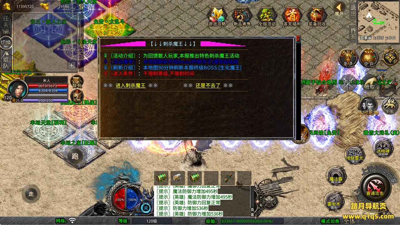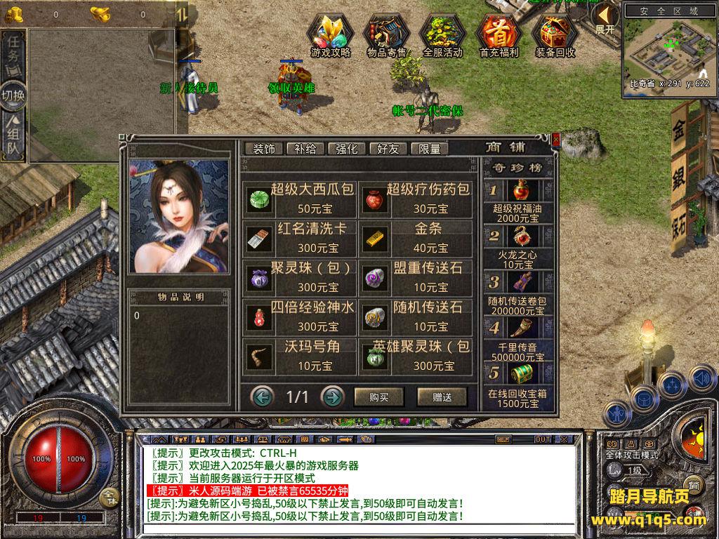 下面我们来测试下游戏里的功能看看。好了,其他功能就自行测试吧。更多的游戏资源可以访问www.q1q5.com下载,我们每款游戏资源均单独制作了独立的视频架设教程,让小白也可以快速上手游戏架设,快来体验自己做GM的乐趣吧!