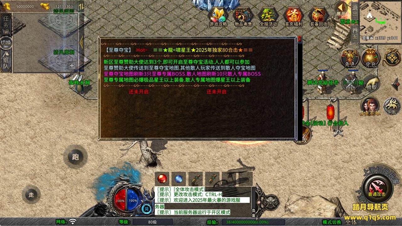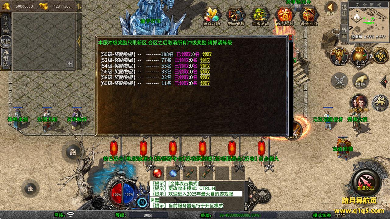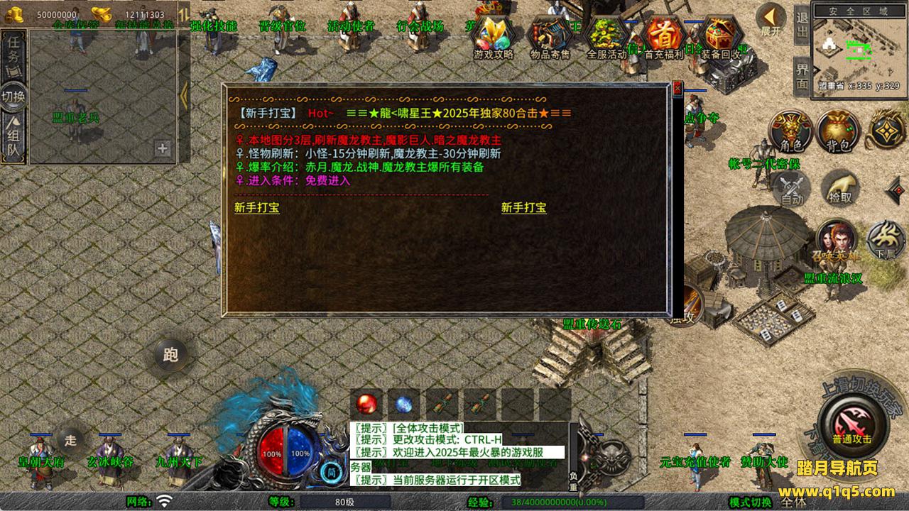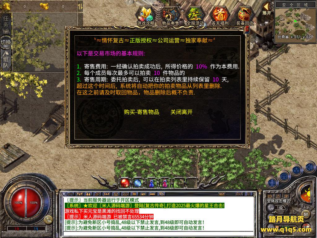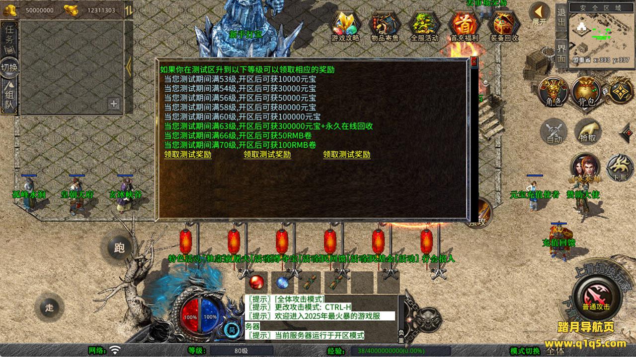 下面我们来测试下游戏里的功能看看。好了,其他功能就自行测试吧。更多的游戏资源可以访问www.q1q5.com下载,我们每款游戏资源均单独制作了独立的视频架设教程,让小白也可以快速上手游戏架设,快来体验自己做GM的乐趣吧!