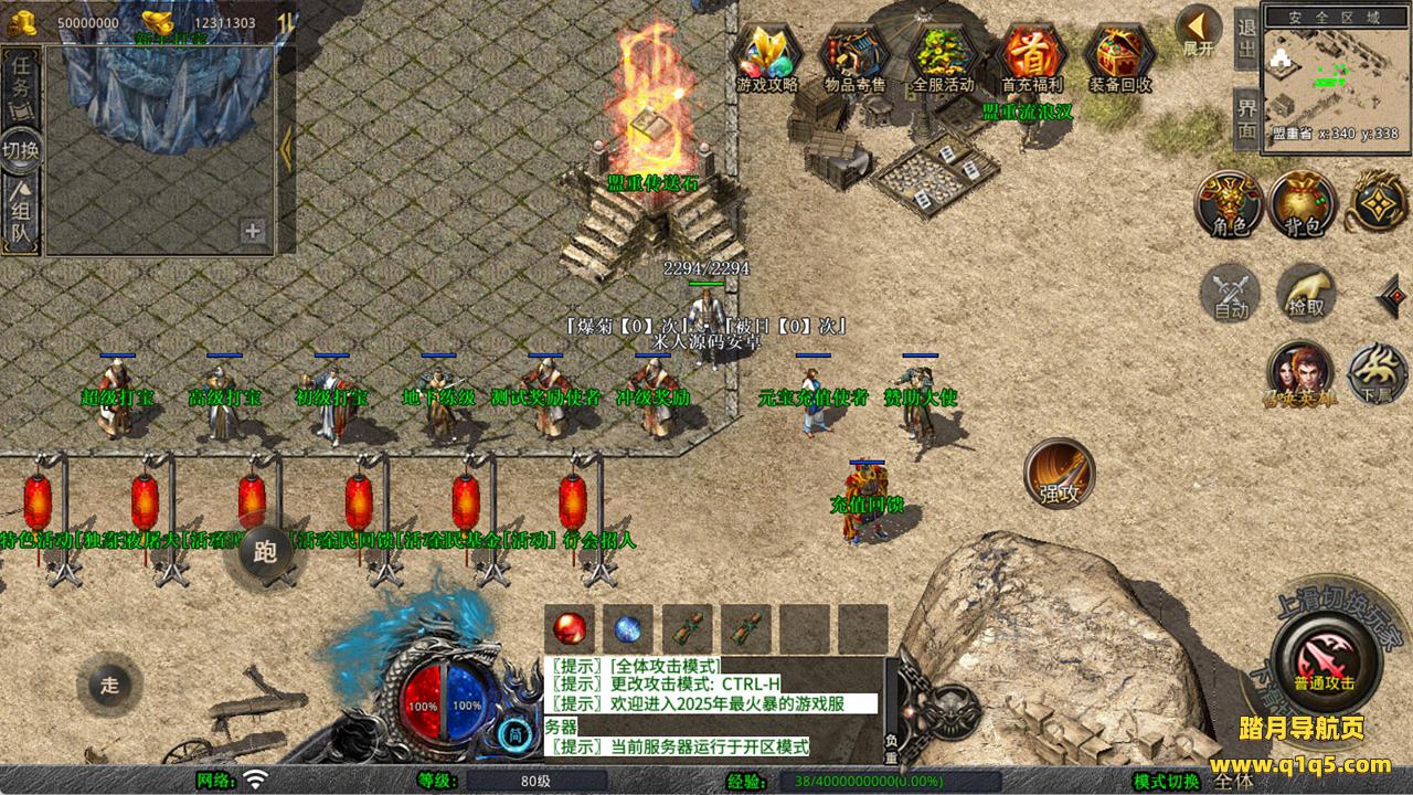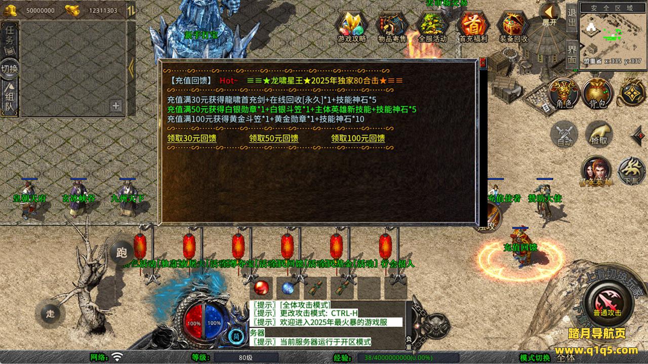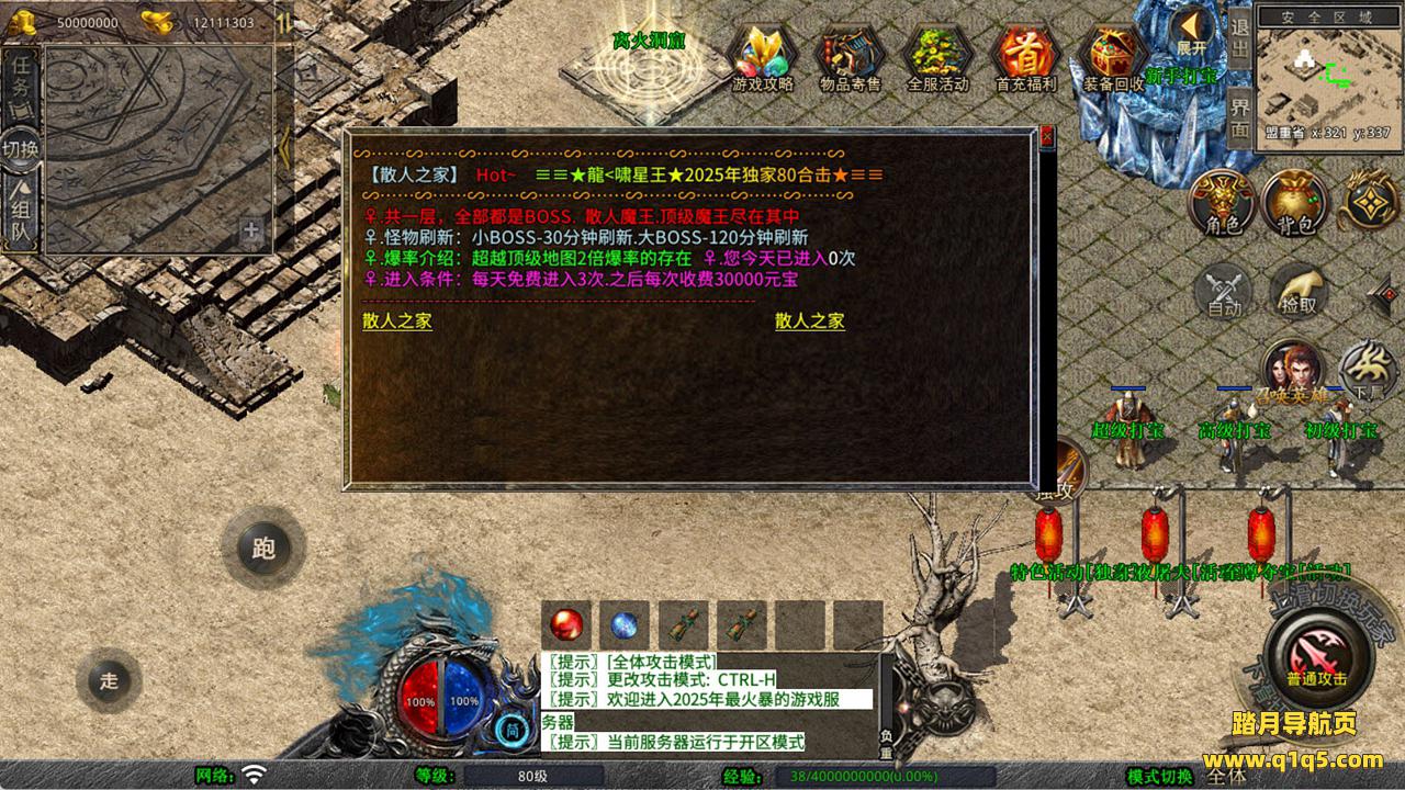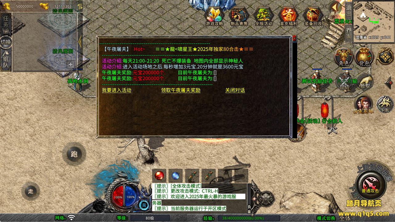 下面我们来测试下游戏里的功能看看。好了,其他功能就自行测试吧。更多的游戏资源可以访问www.q1q5.com下载,我们每款游戏资源均单独制作了独立的视频架设教程,让小白也可以快速上手游戏架设,快来体验自己做GM的乐趣吧!