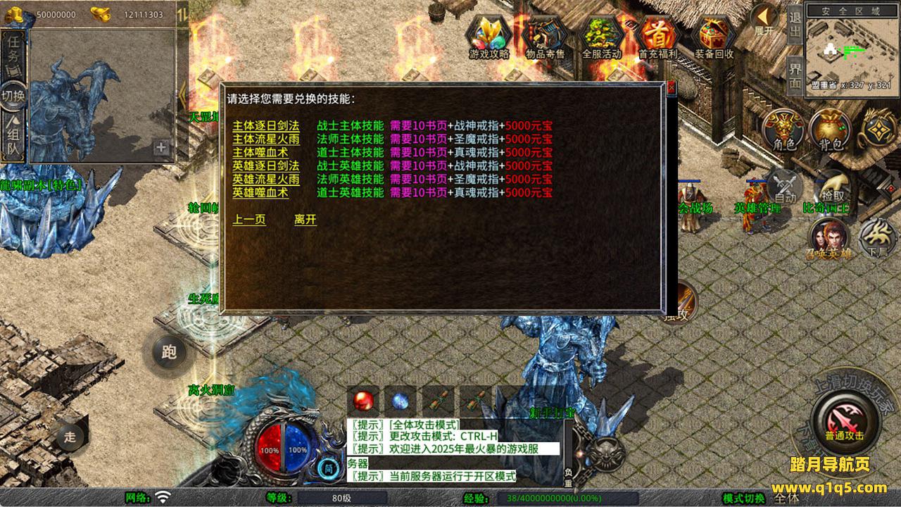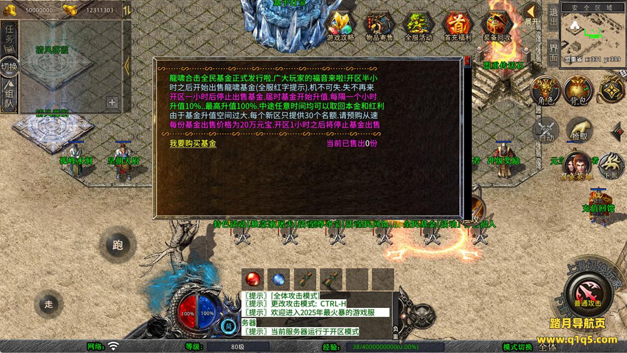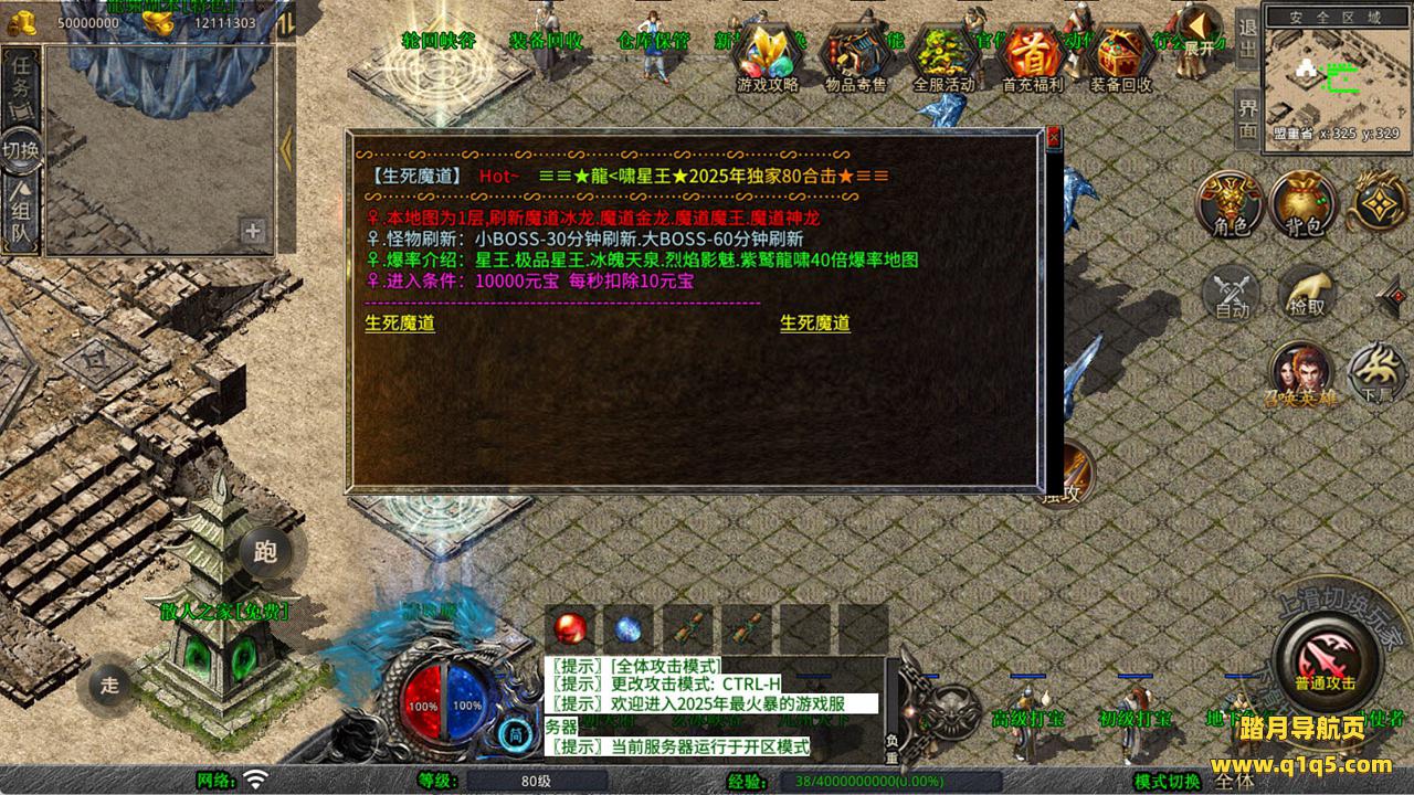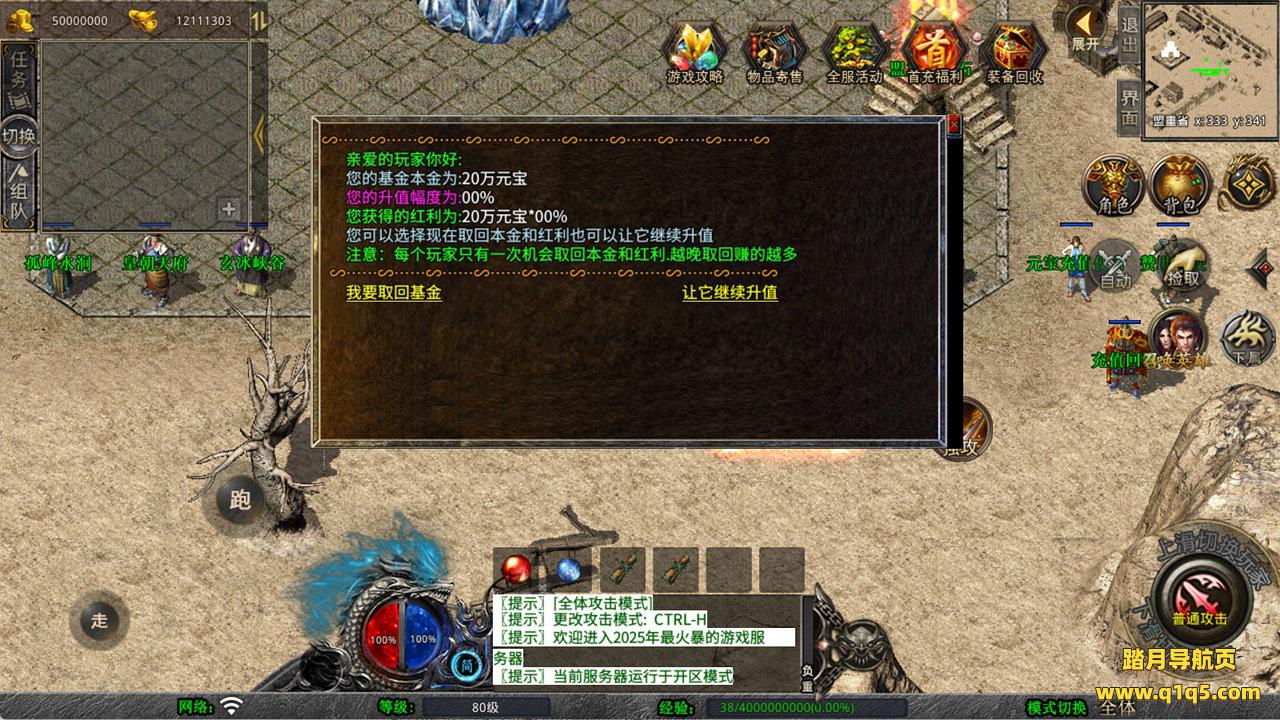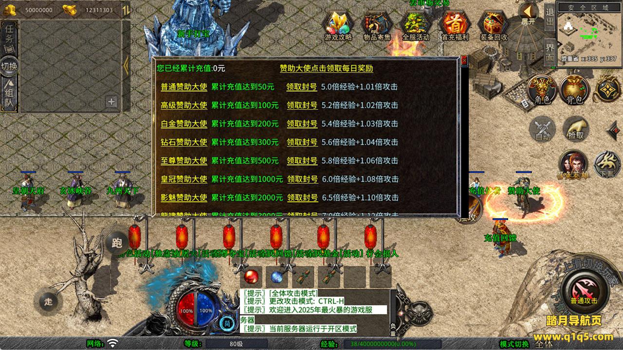 下面我们来测试下游戏里的功能看看。好了,其他功能就自行测试吧。更多的游戏资源可以访问www.q1q5.com下载,我们每款游戏资源均单独制作了独立的视频架设教程,让小白也可以快速上手游戏架设,快来体验自己做GM的乐趣吧!