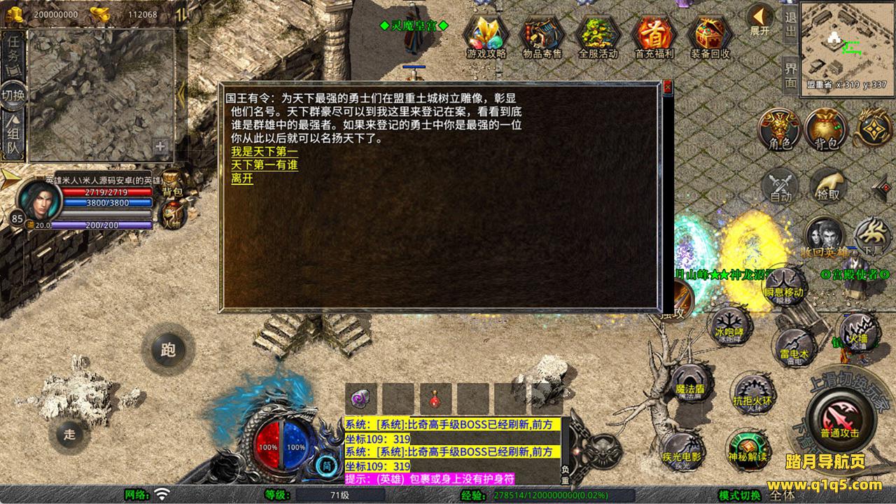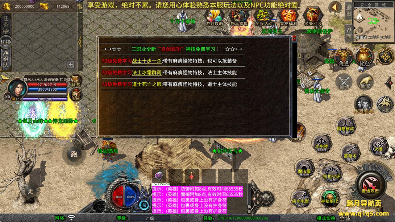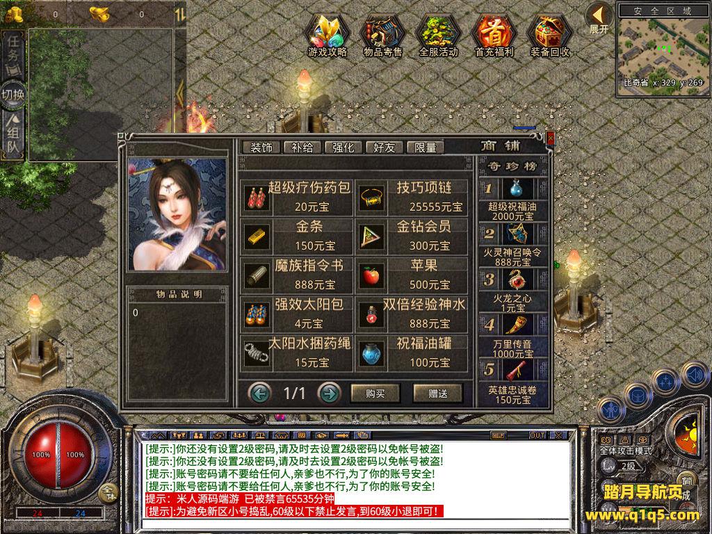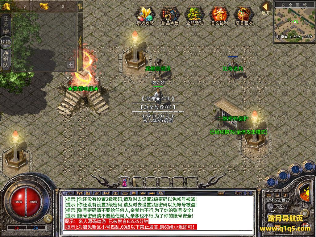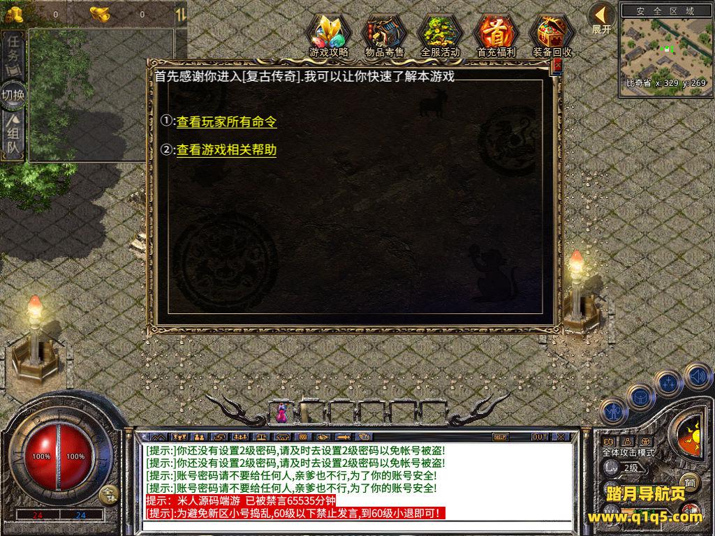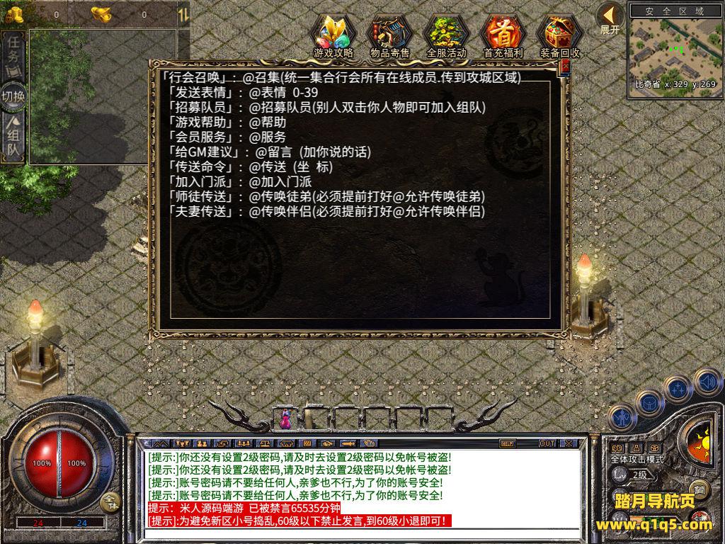 下面我们来测试下游戏里的功能看看。好了,其他功能就自行测试吧。更多的游戏资源可以访问www.q1q5.com下载,我们每款游戏资源均单独制作了独立的视频架设教程,让小白也可以快速上手游戏架设,快来体验自己做GM的乐趣吧!