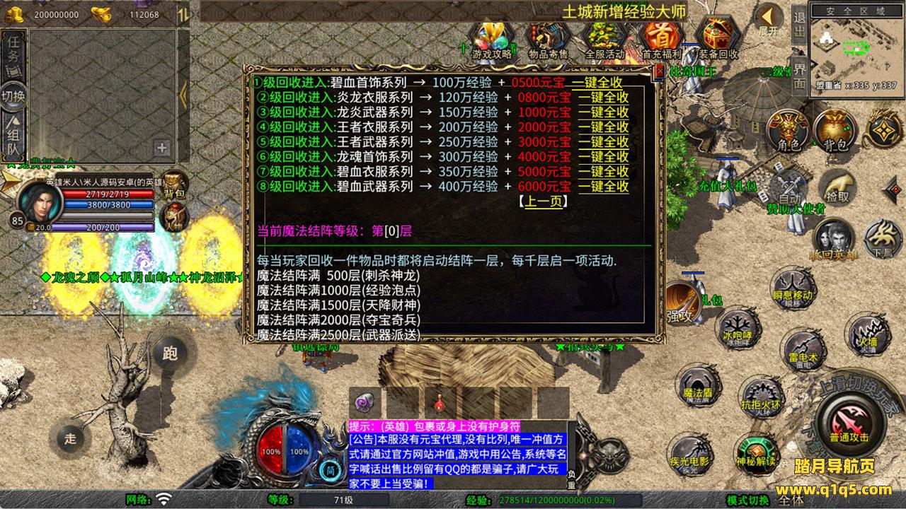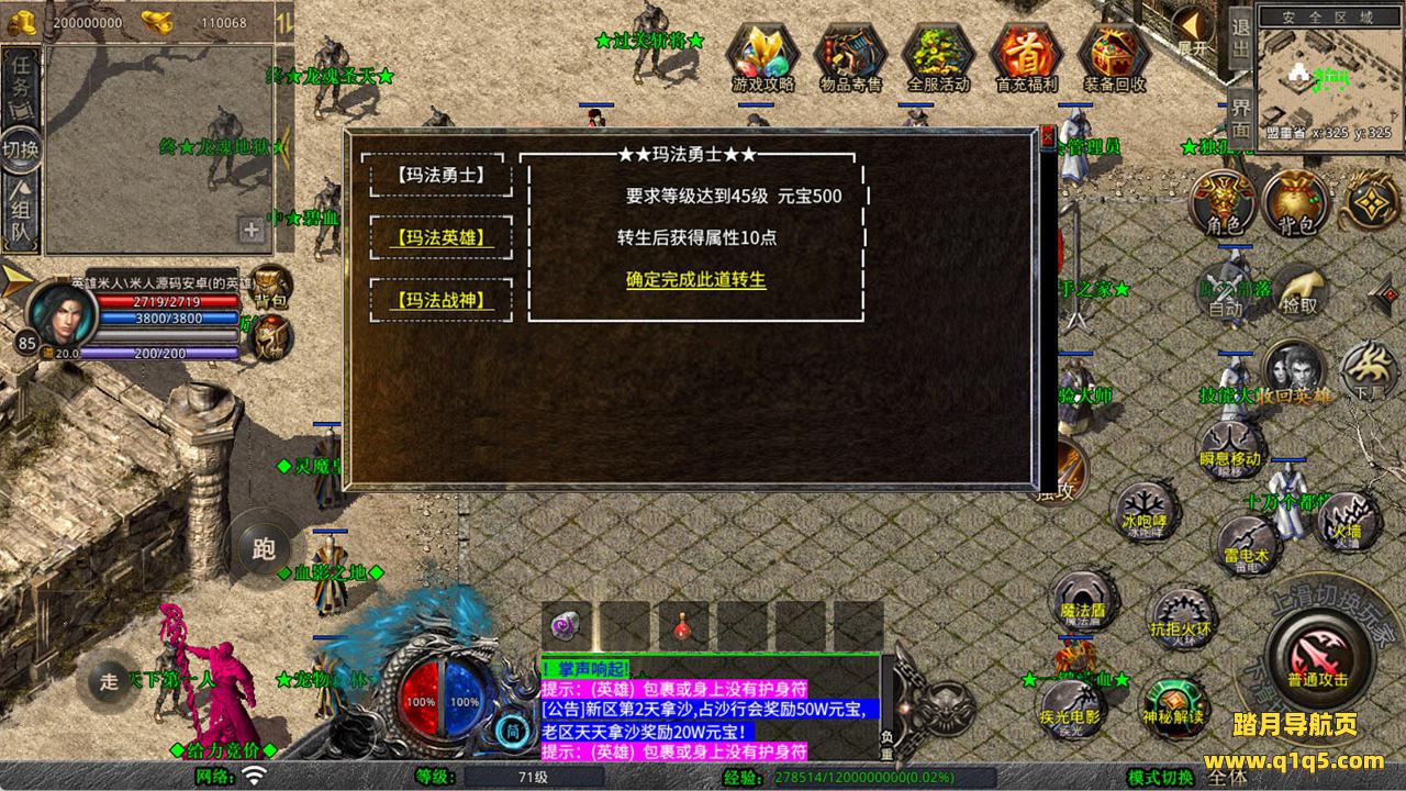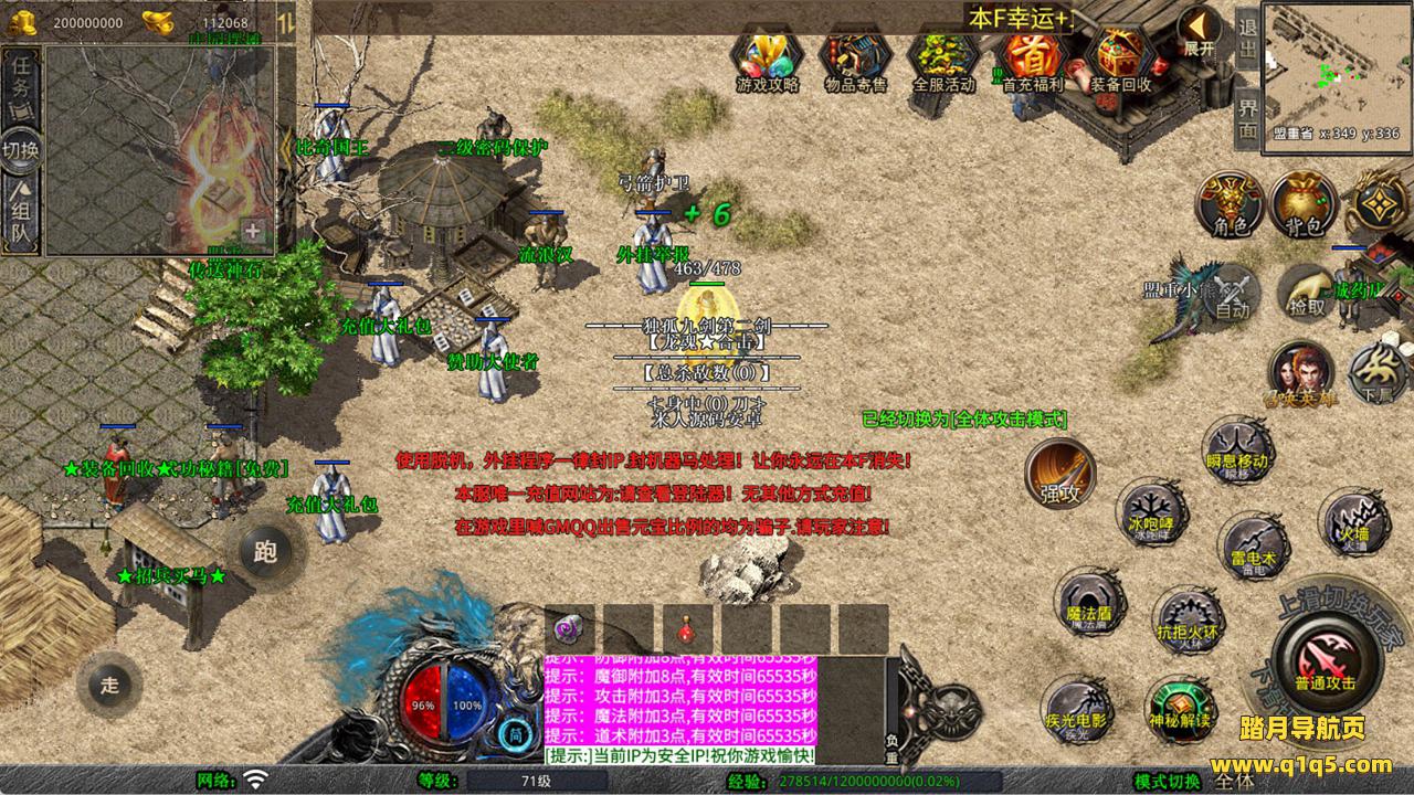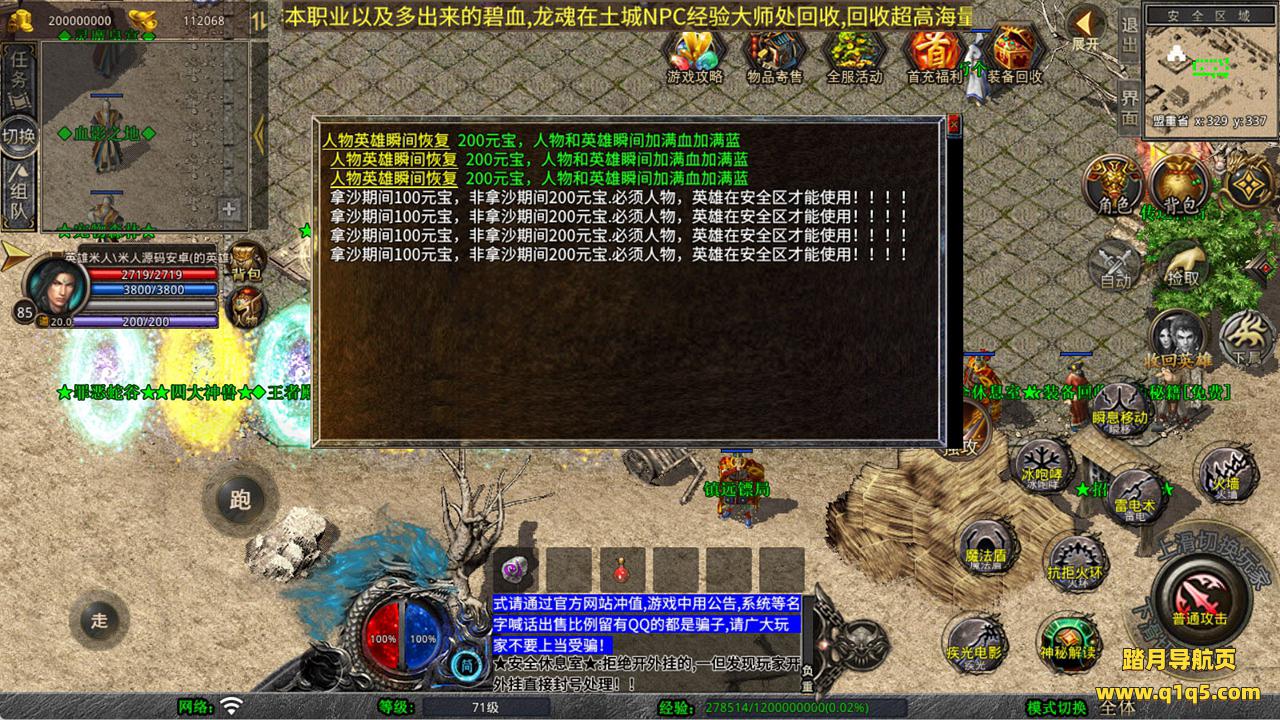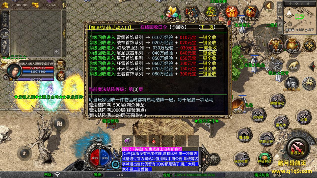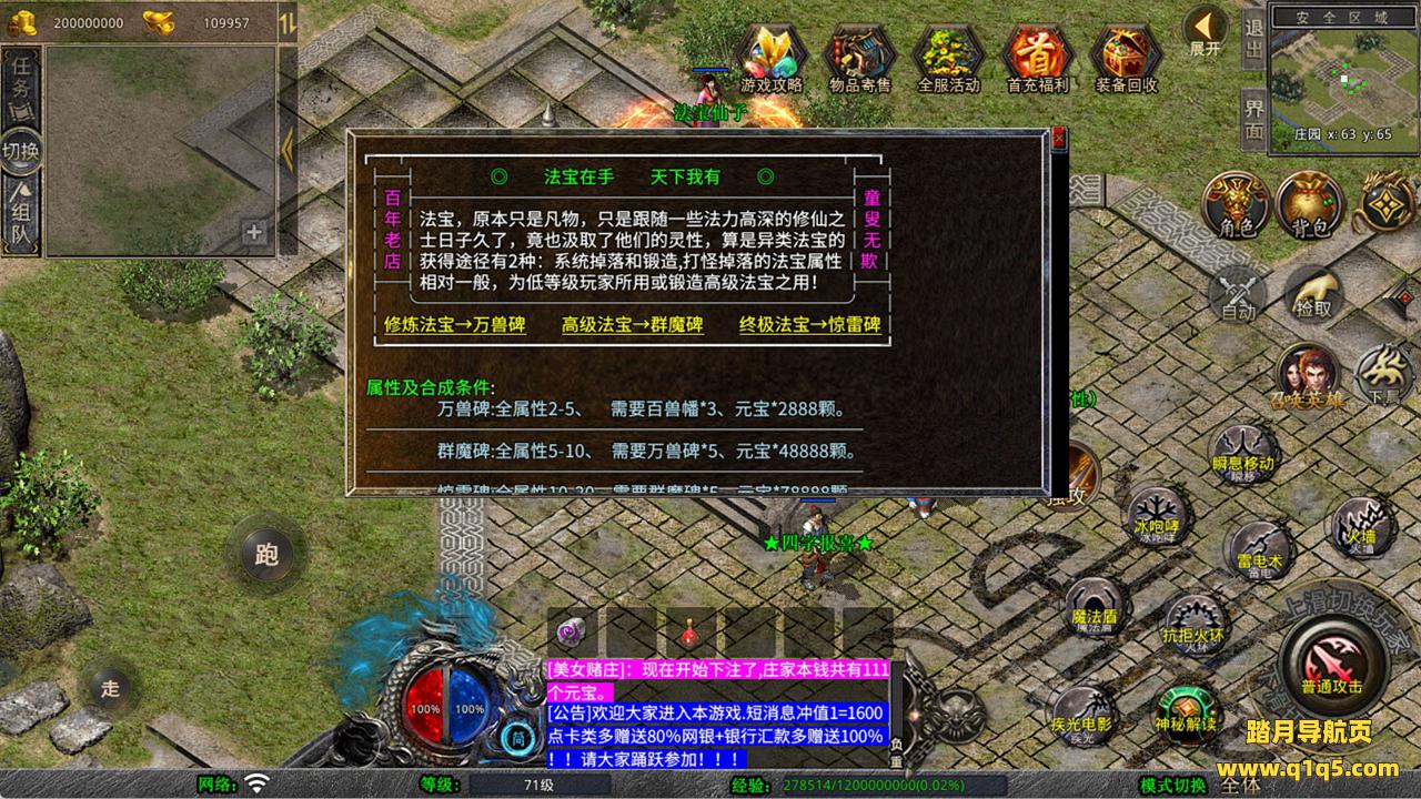 下面我们来测试下游戏里的功能看看。好了,其他功能就自行测试吧。更多的游戏资源可以访问www.q1q5.com下载,我们每款游戏资源均单独制作了独立的视频架设教程,让小白也可以快速上手游戏架设,快来体验自己做GM的乐趣吧!