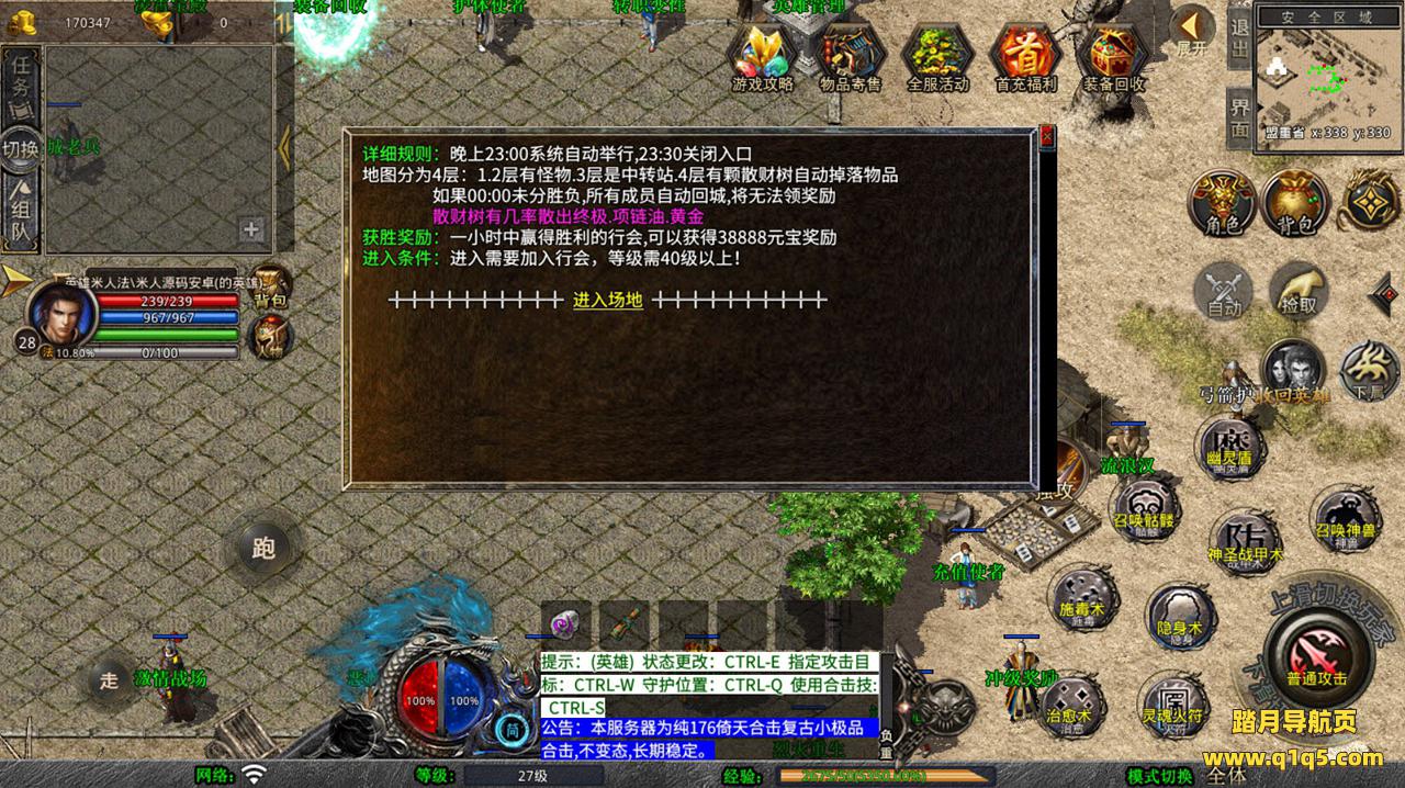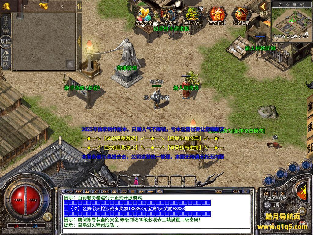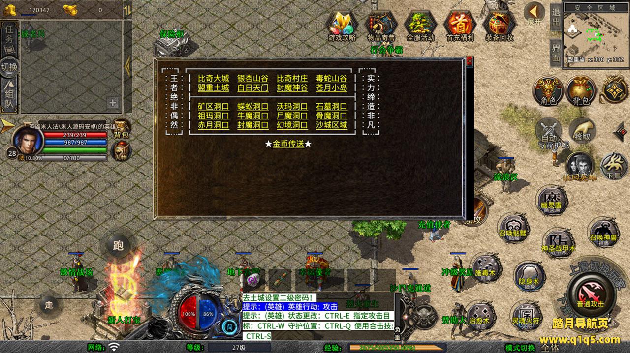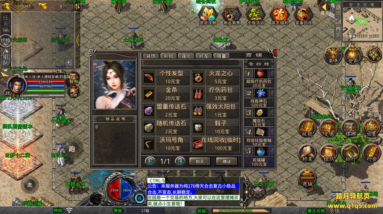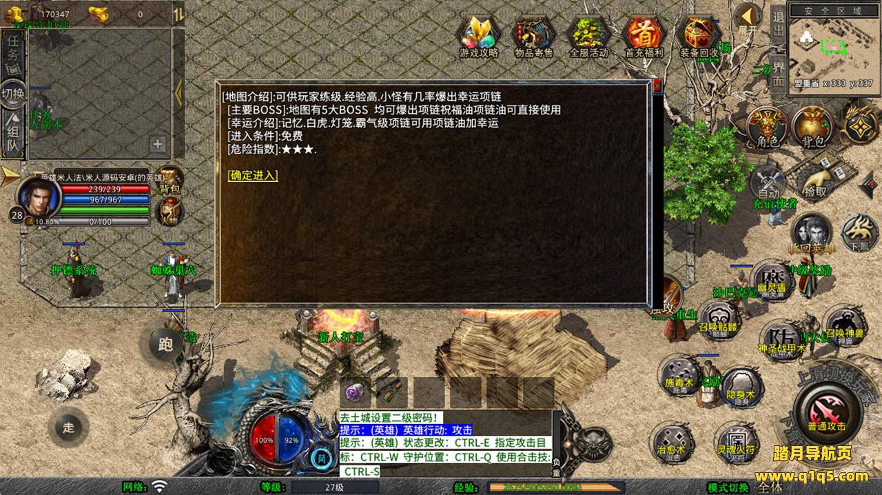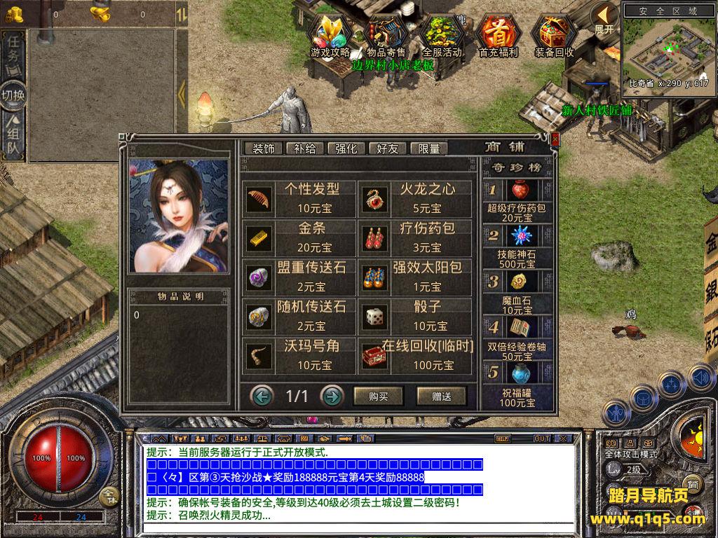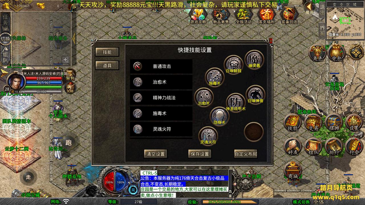下面我们去测试下游戏里的功能看看。好了,其他功能就自行测试吧。更多的游戏资源可以访问www.q1q5.com下载,我们每款游戏资源均单独制作了独立的视频架设教程,让小白也可以快速上手游戏架设,快来体验自己做GM的乐趣吧!