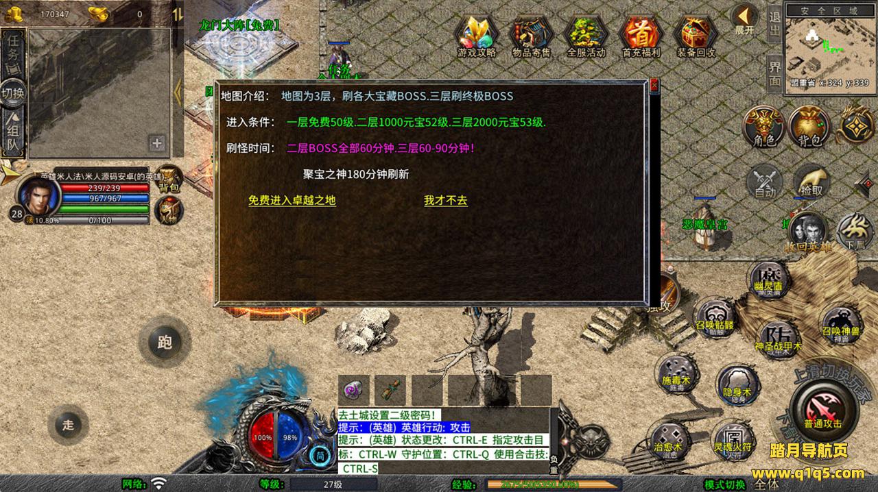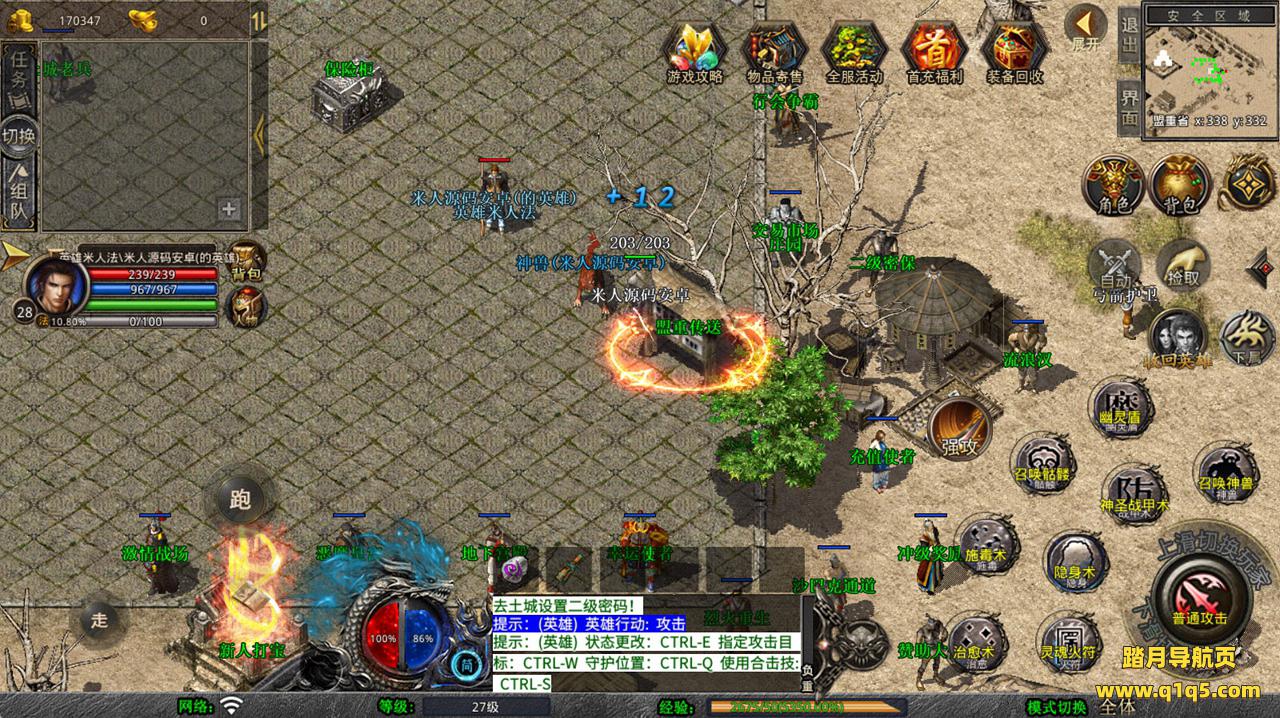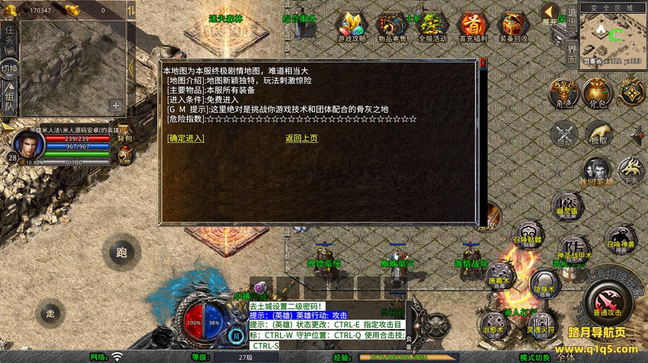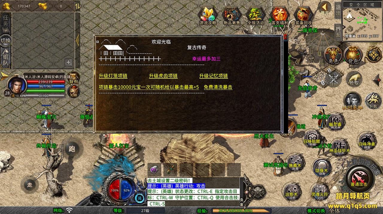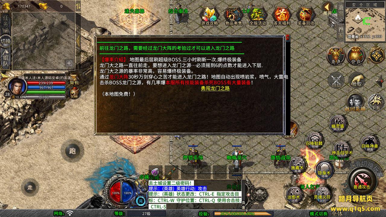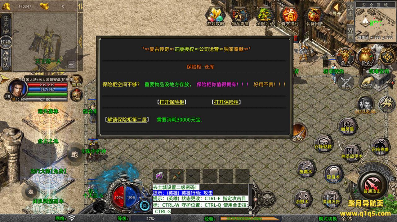 下面我们去测试下游戏里的功能看看。好了,其他功能就自行测试吧。更多的游戏资源可以访问www.q1q5.com下载,我们每款游戏资源均单独制作了独立的视频架设教程,让小白也可以快速上手游戏架设,快来体验自己做GM的乐趣吧!