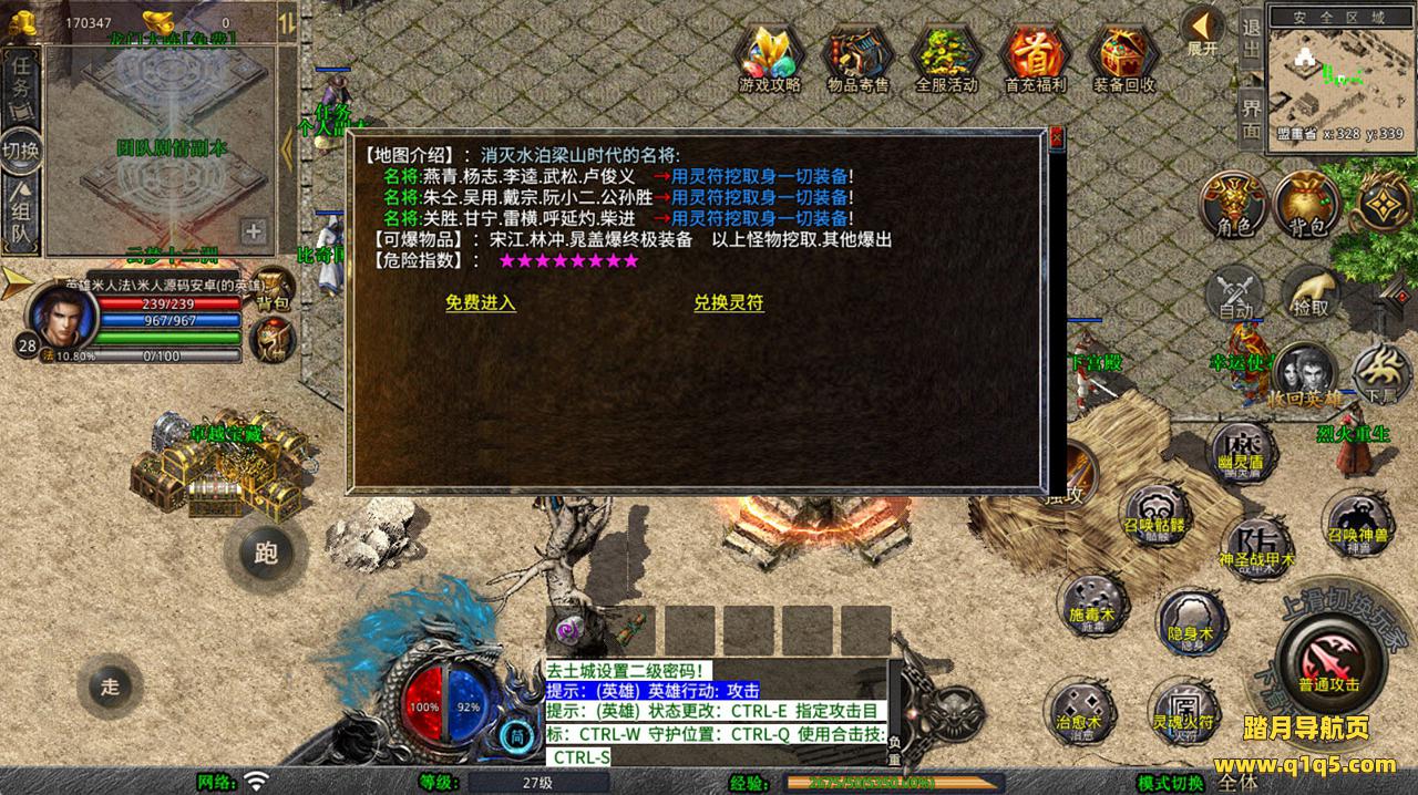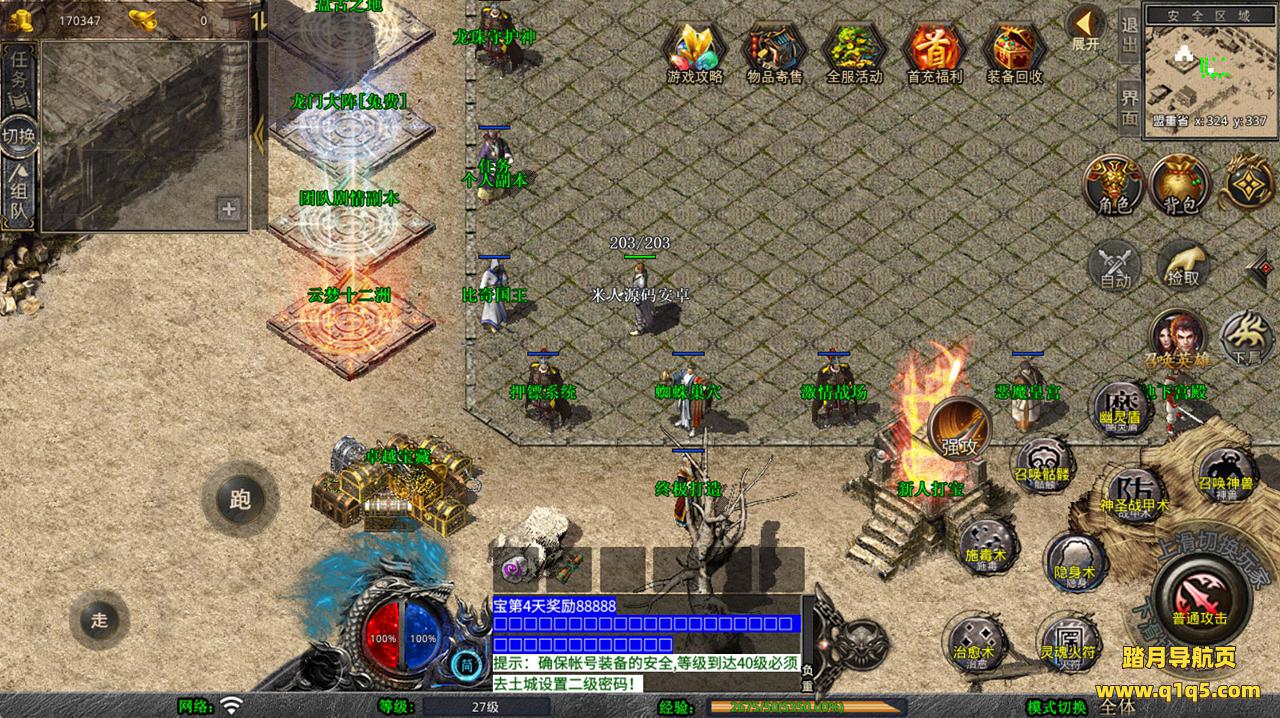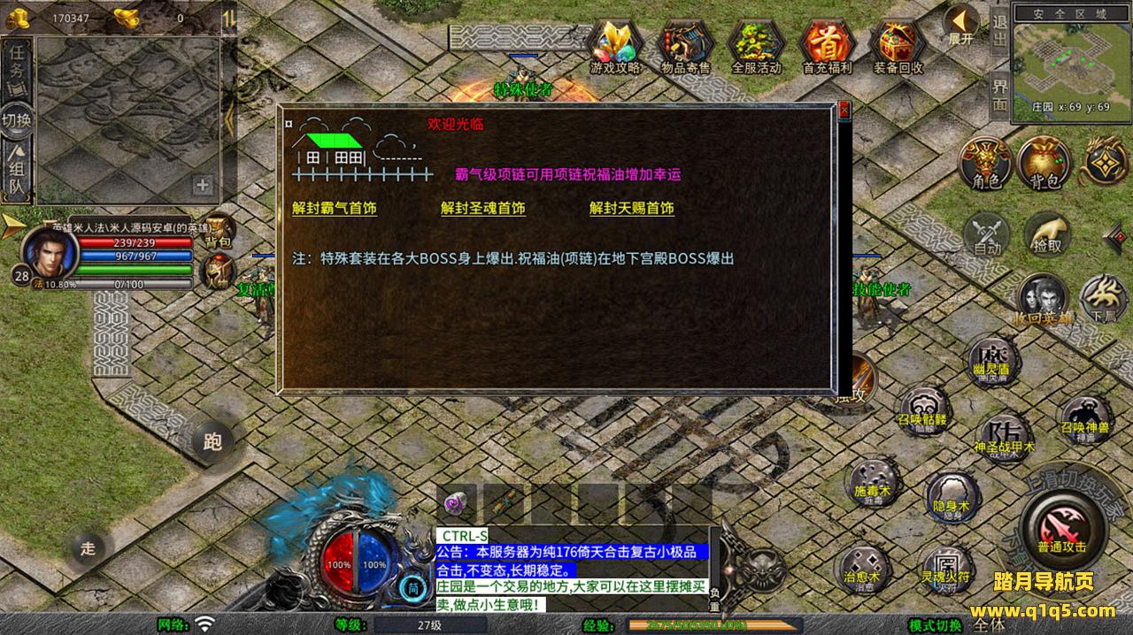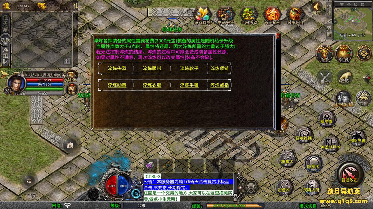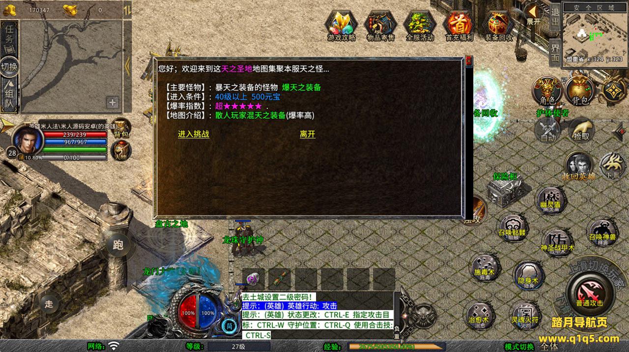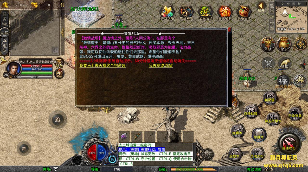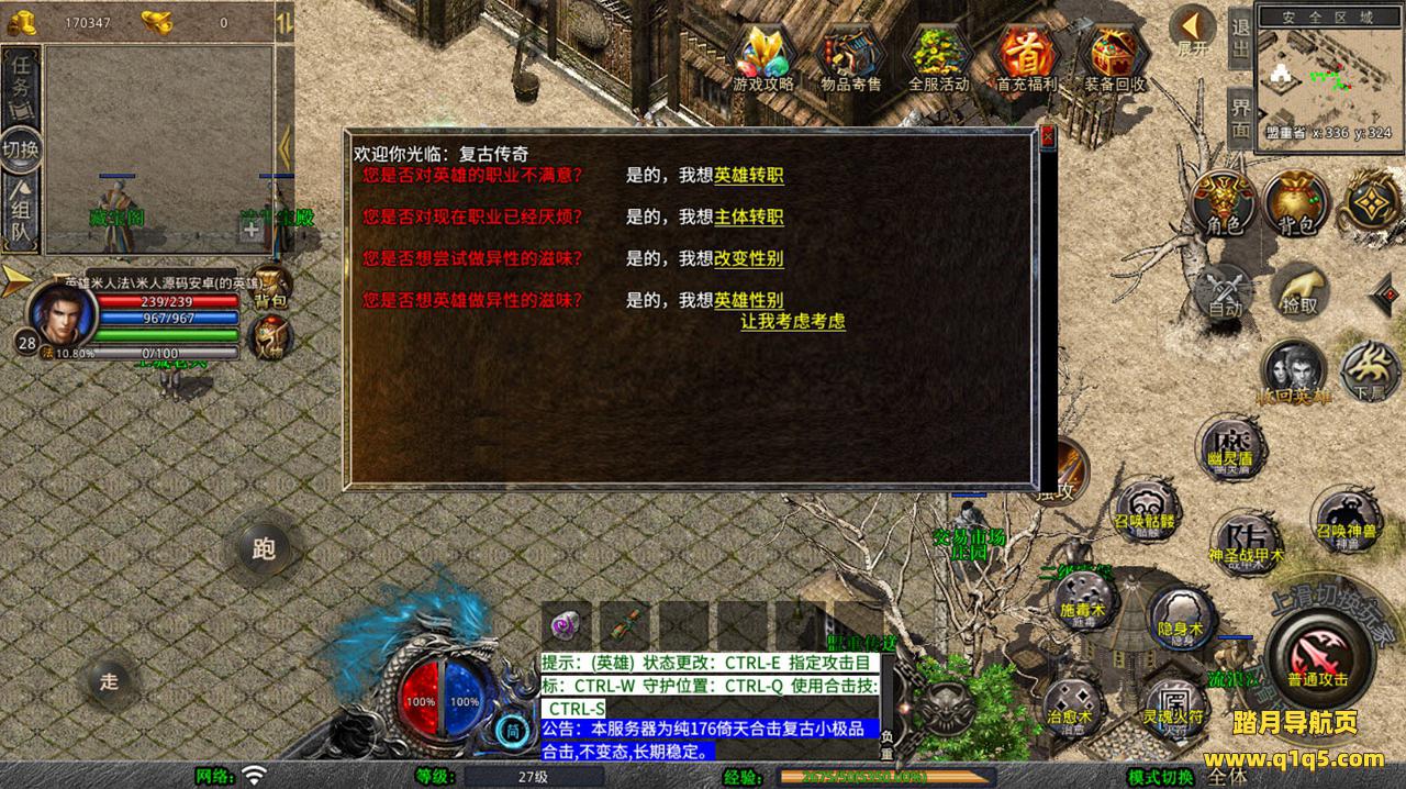 下面我们去测试下游戏里的功能看看。好了,其他功能就自行测试吧。更多的游戏资源可以访问www.q1q5.com下载,我们每款游戏资源均单独制作了独立的视频架设教程,让小白也可以快速上手游戏架设,快来体验自己做GM的乐趣吧!