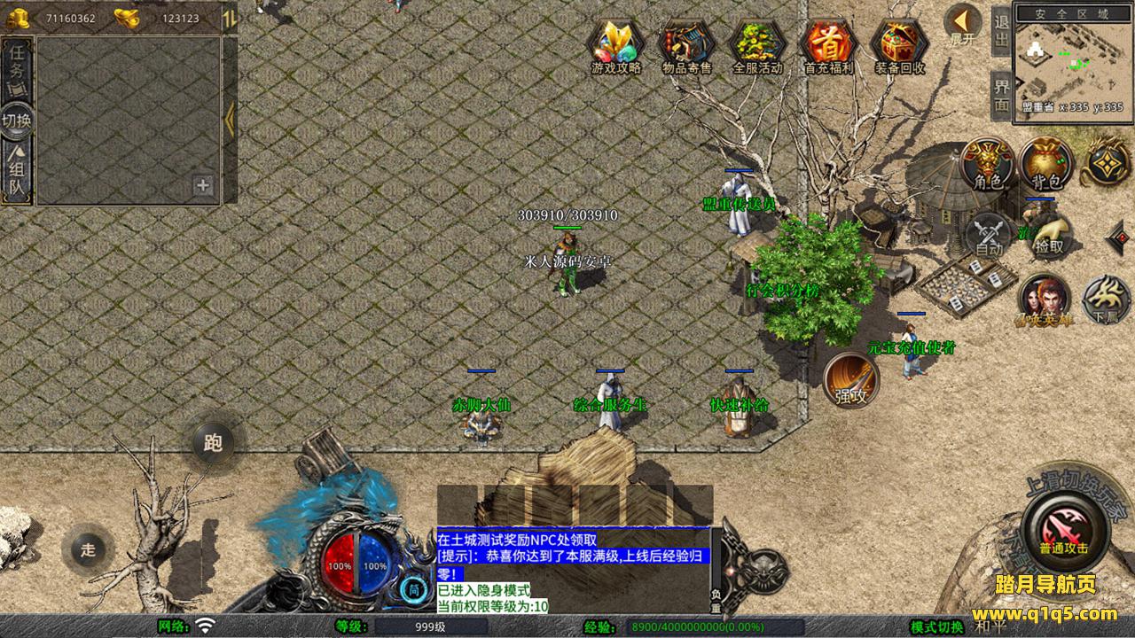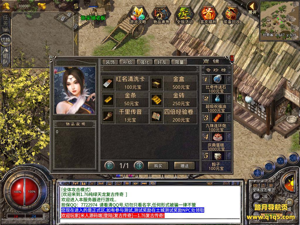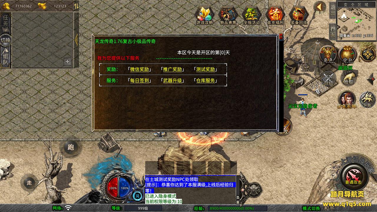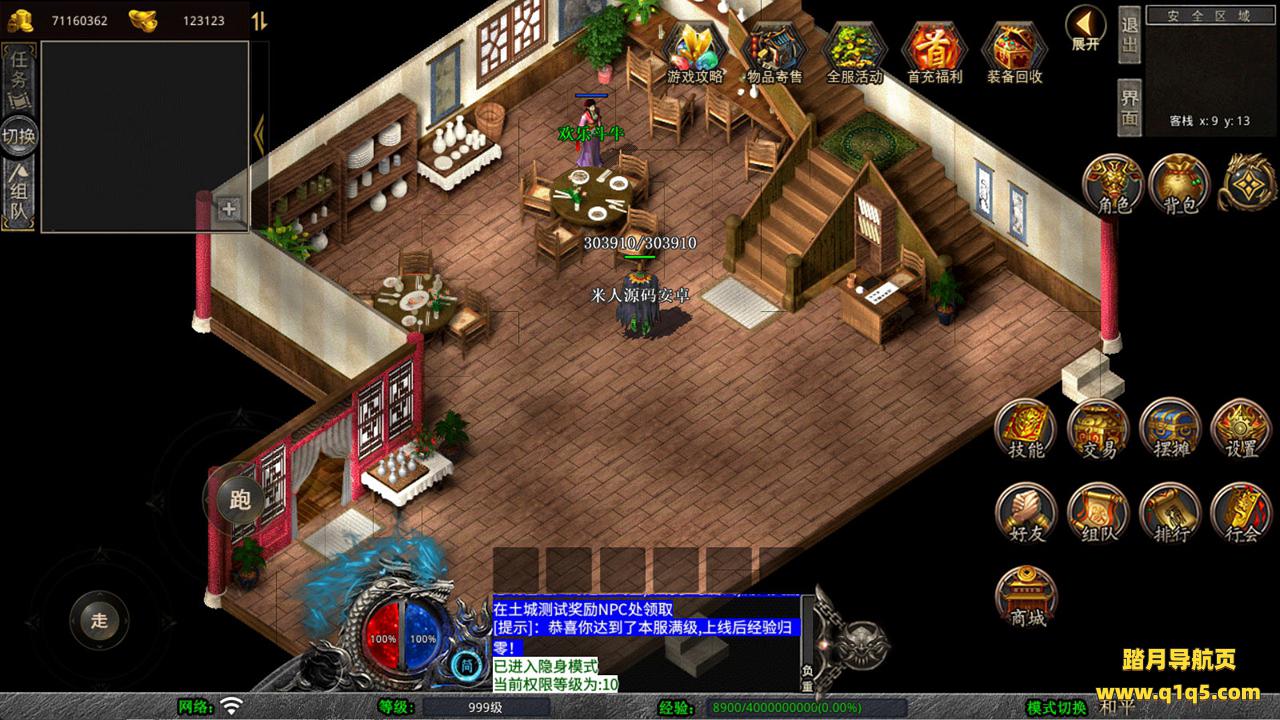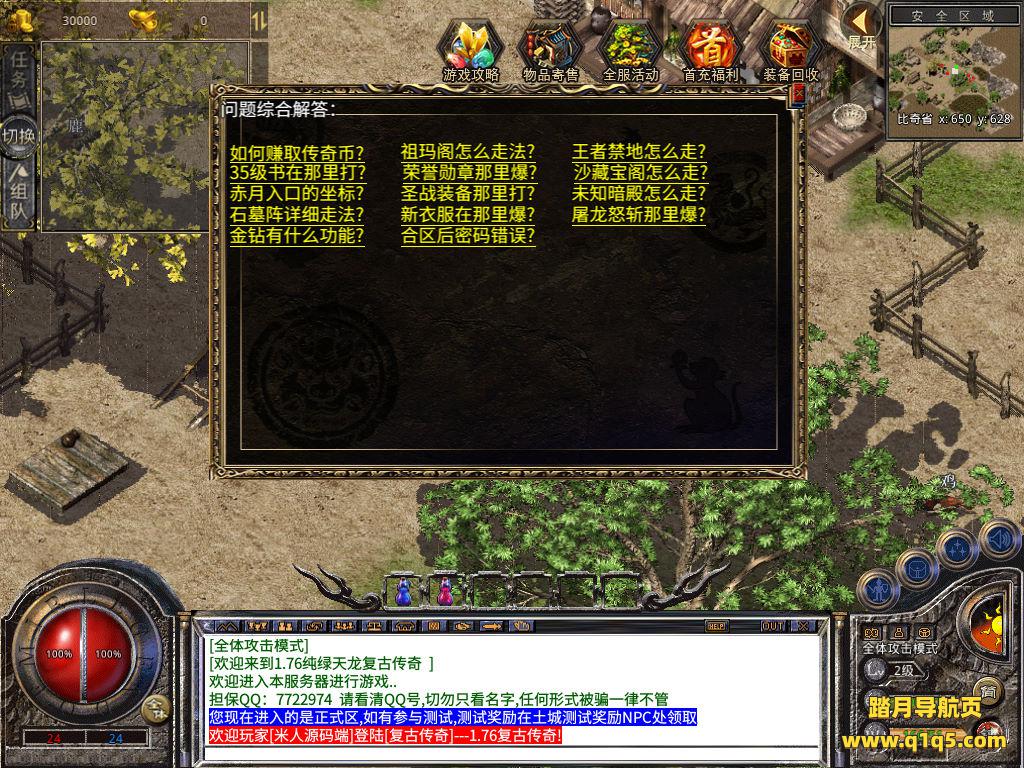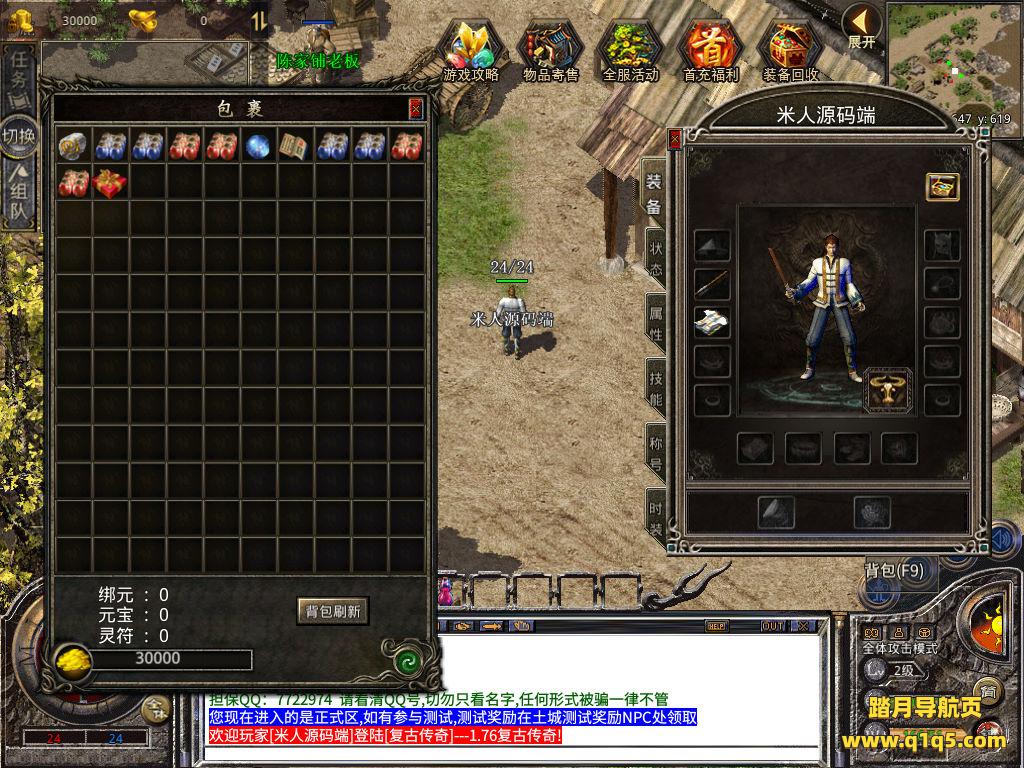 下面我们来测试下游戏里的功能看看。好了,其他功能就自行测试吧。更多的游戏资源可以访问www.q1q5.com下载,我们每款游戏资源均单独制作了独立的视频架设教程,让小白也可以快速上手游戏架设,快来体验自己做GM的乐趣吧!
