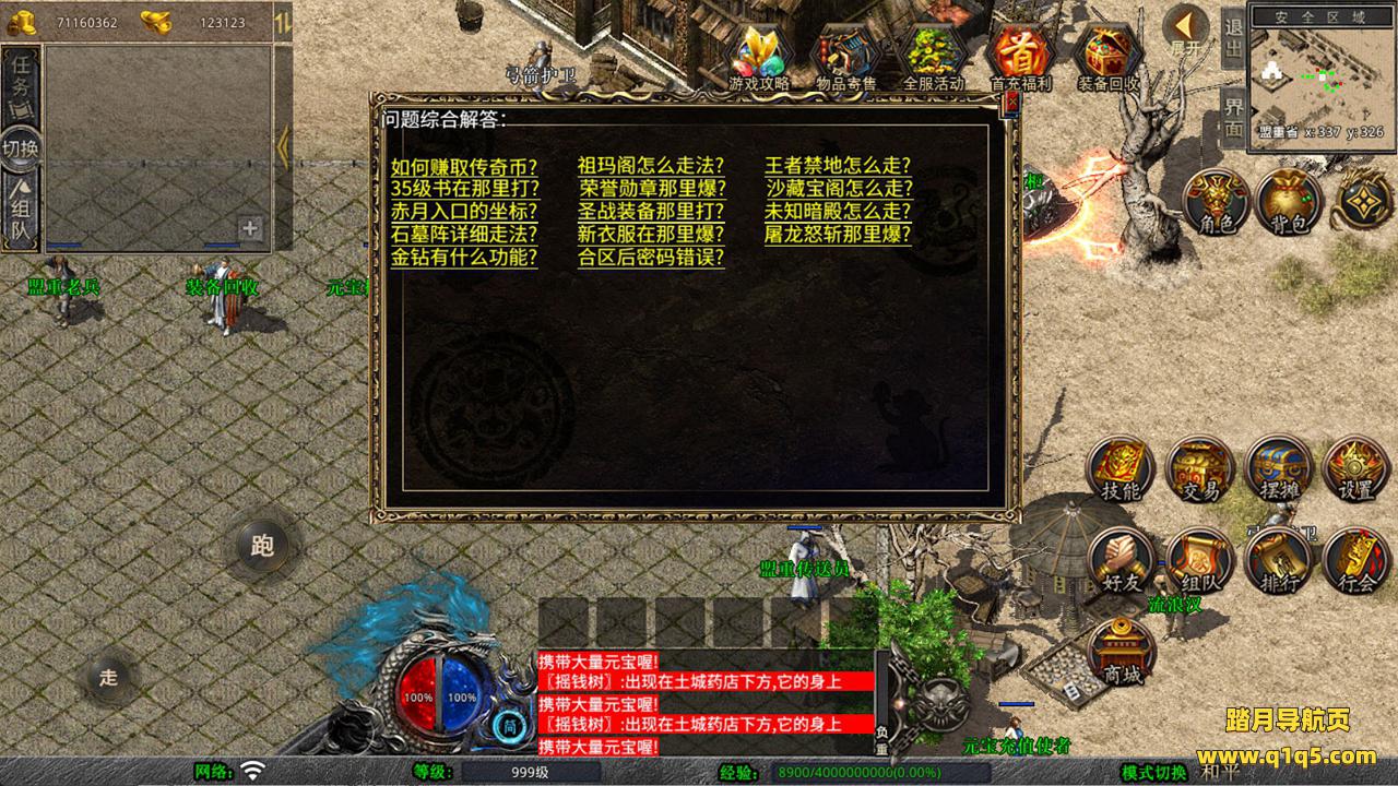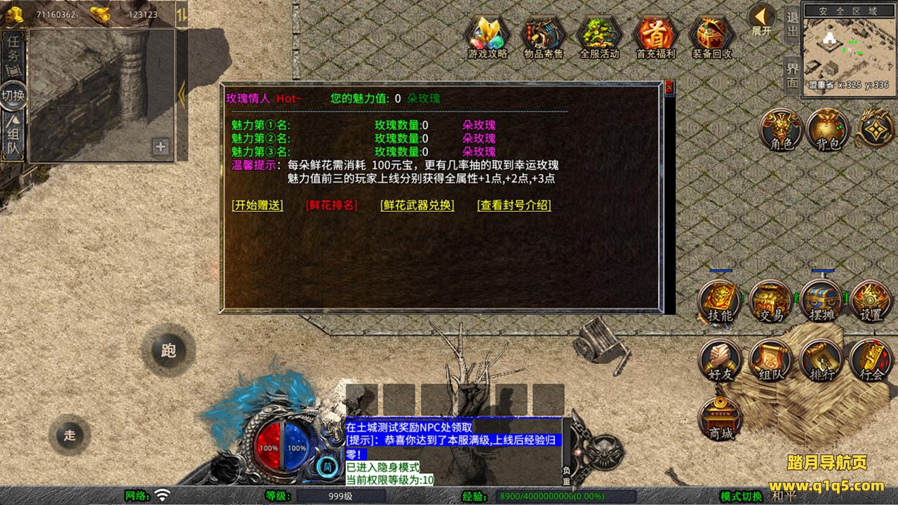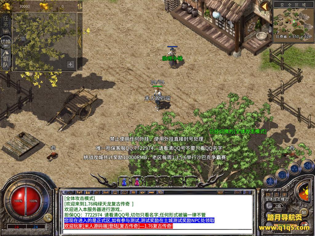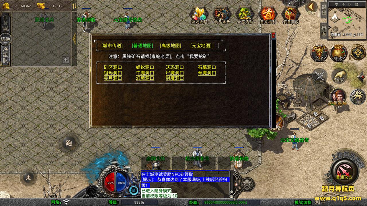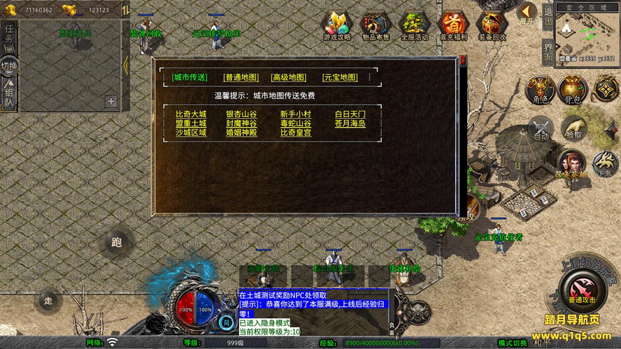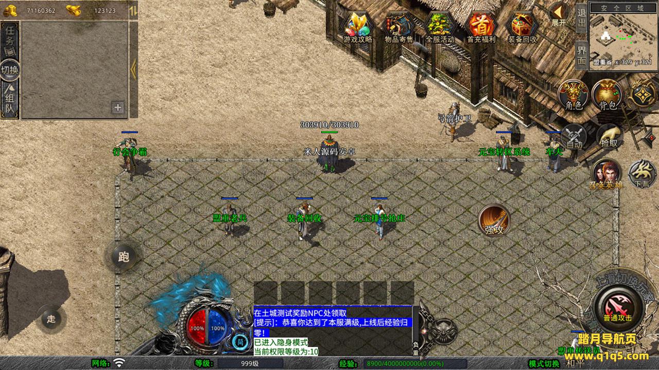 下面我们来测试下游戏里的功能看看。好了,其他功能就自行测试吧。更多的游戏资源可以访问www.q1q5.com下载,我们每款游戏资源均单独制作了独立的视频架设教程,让小白也可以快速上手游戏架设,快来体验自己做GM的乐趣吧!