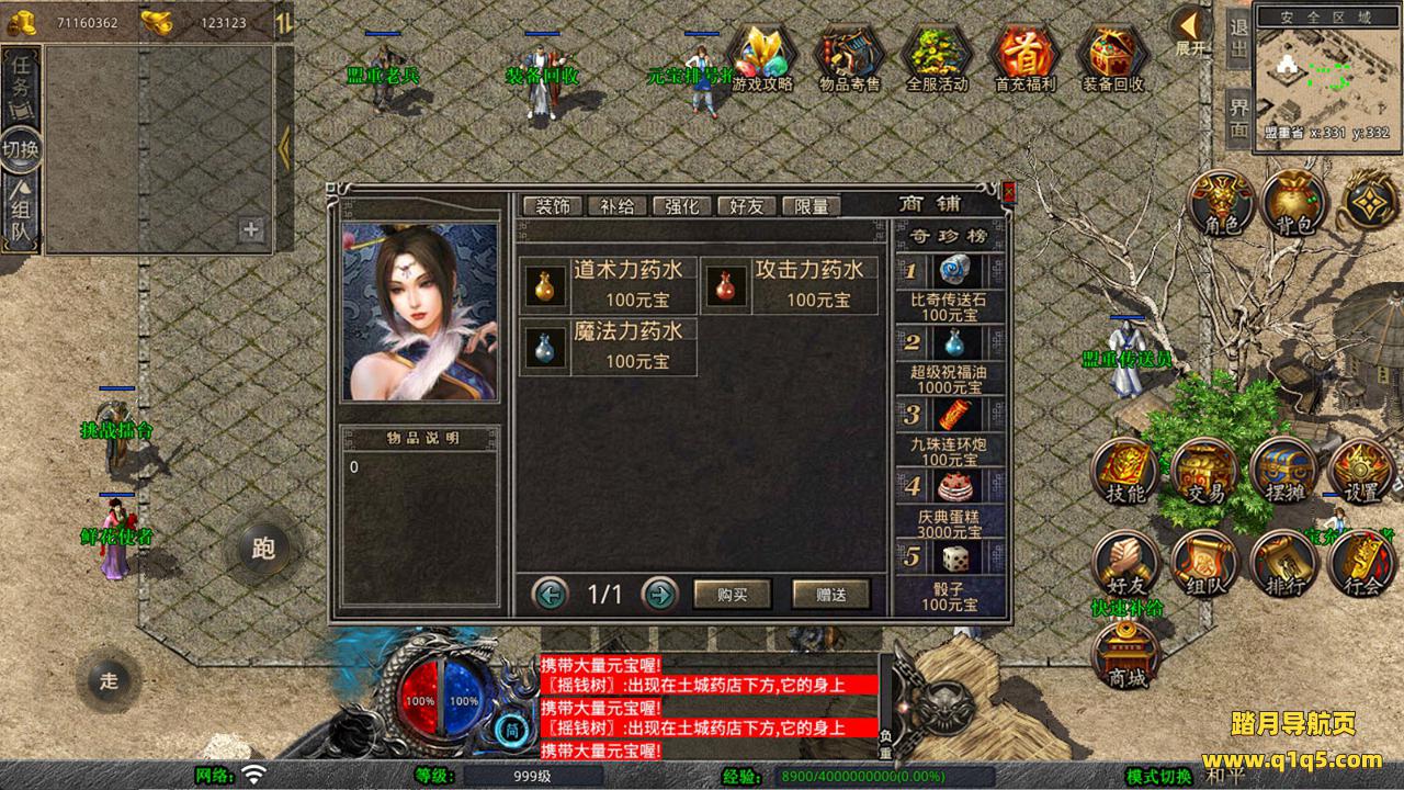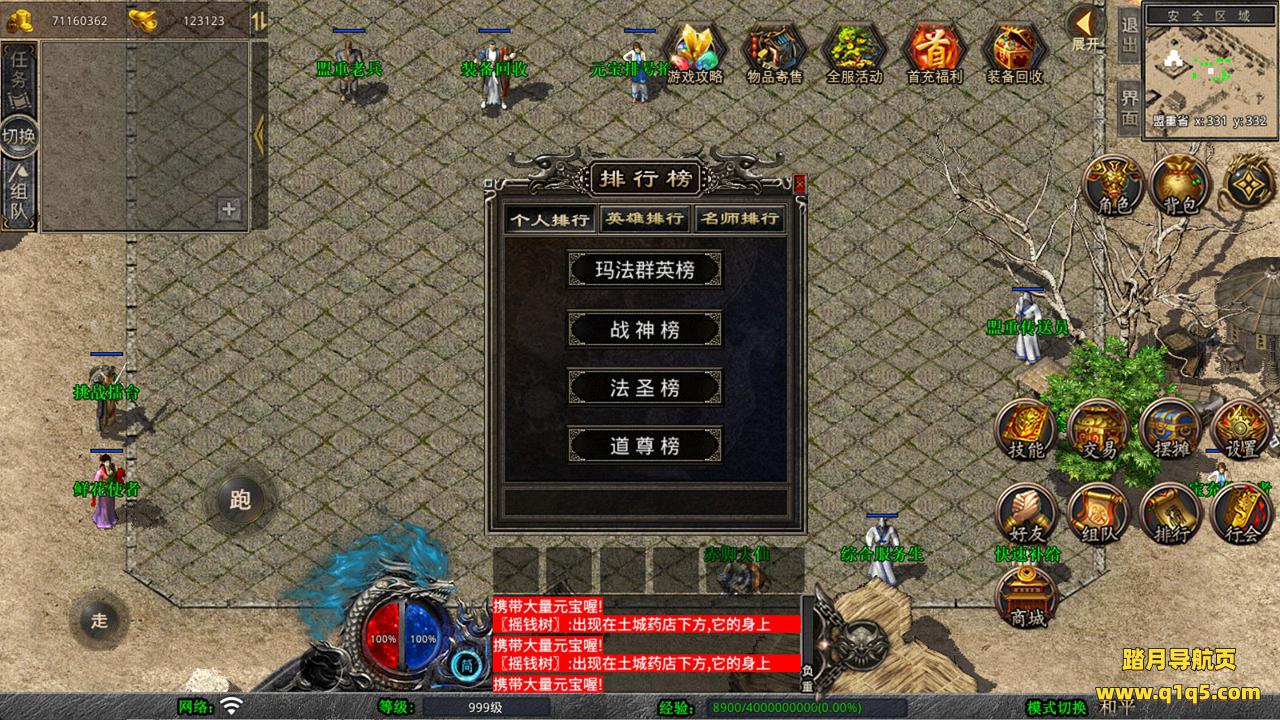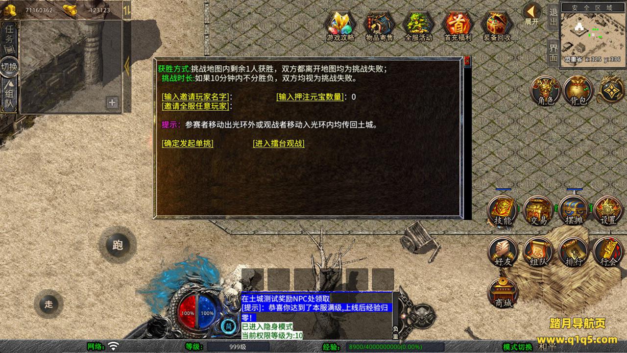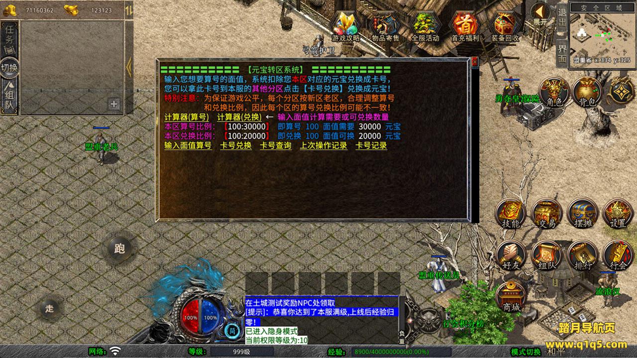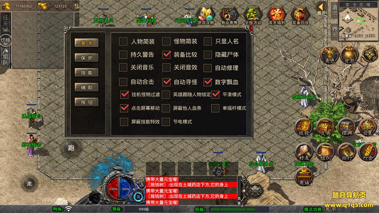 下面我们来测试下游戏里的功能看看。好了,其他功能就自行测试吧。更多的游戏资源可以访问www.q1q5.com下载,我们每款游戏资源均单独制作了独立的视频架设教程,让小白也可以快速上手游戏架设,快来体验自己做GM的乐趣吧!