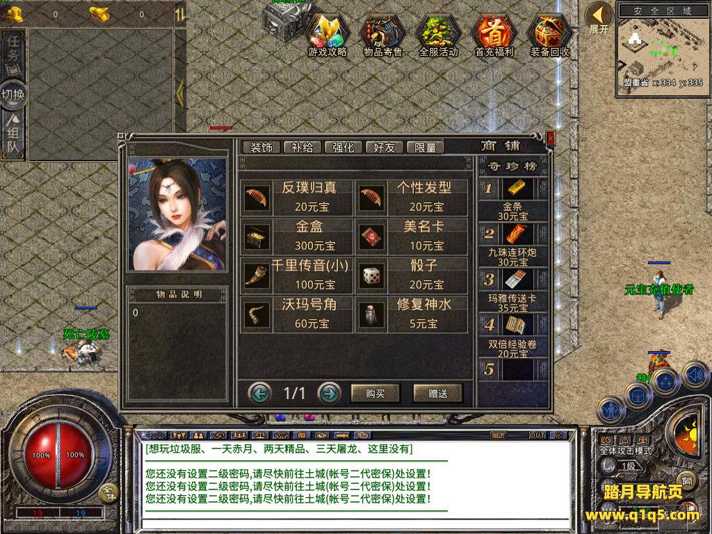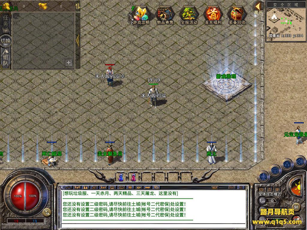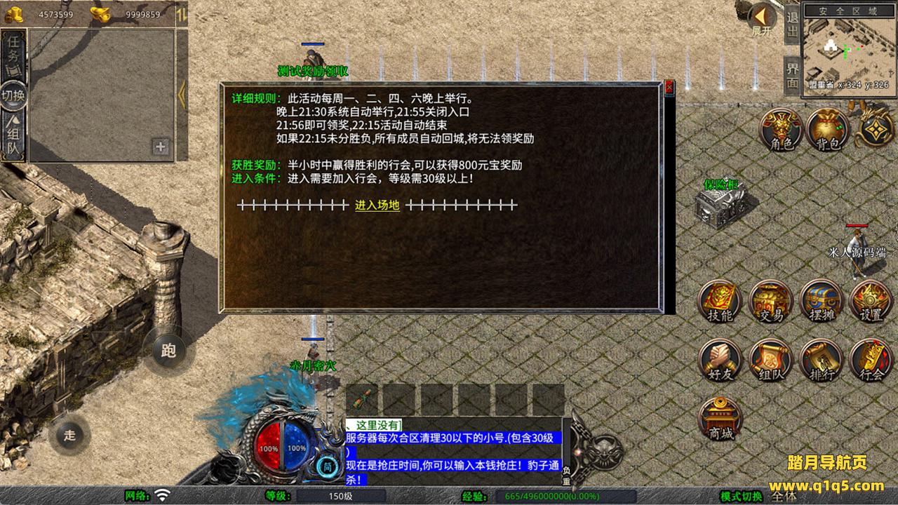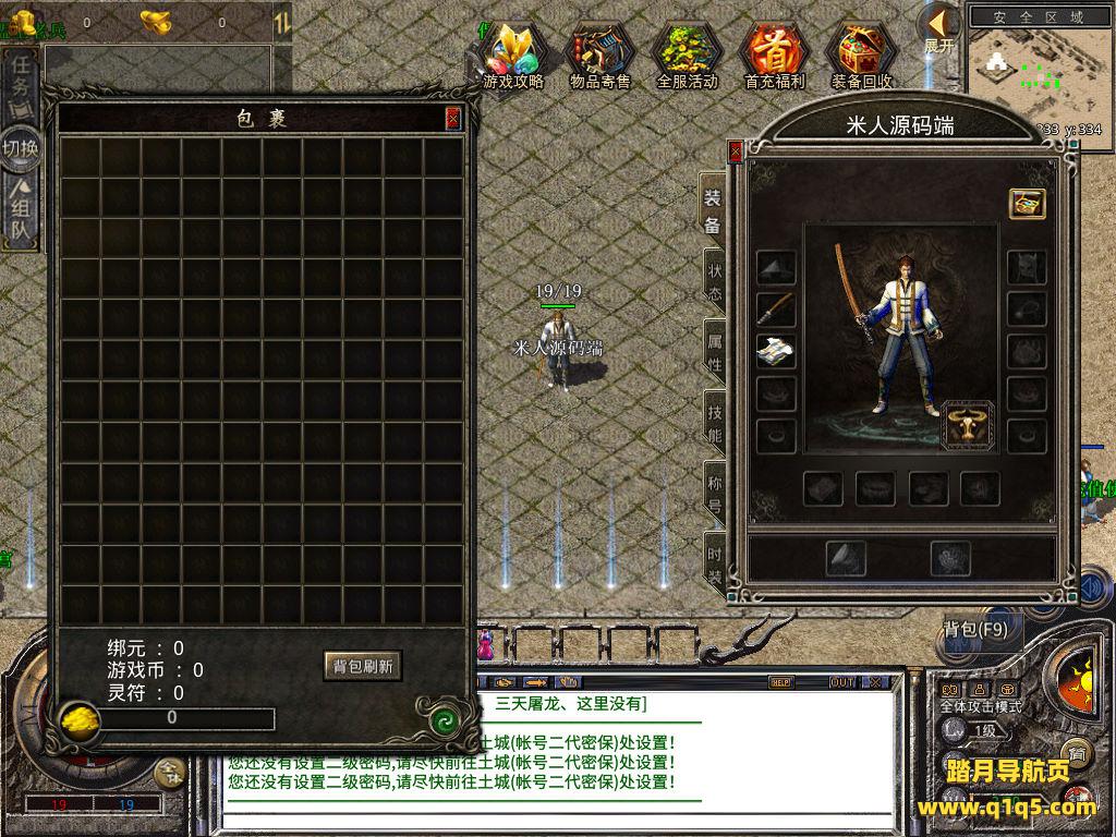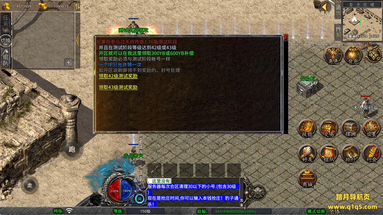 下面我们来测试下游戏里的功能看看。好了,其他功能就自行测试吧。更多的游戏资源可以访问www.q1q5.com下载,我们每款游戏资源均单独制作的有独立的视频架设教程,让小白也可以快速上手游戏架设,快来体验自己做GM的乐趣吧!