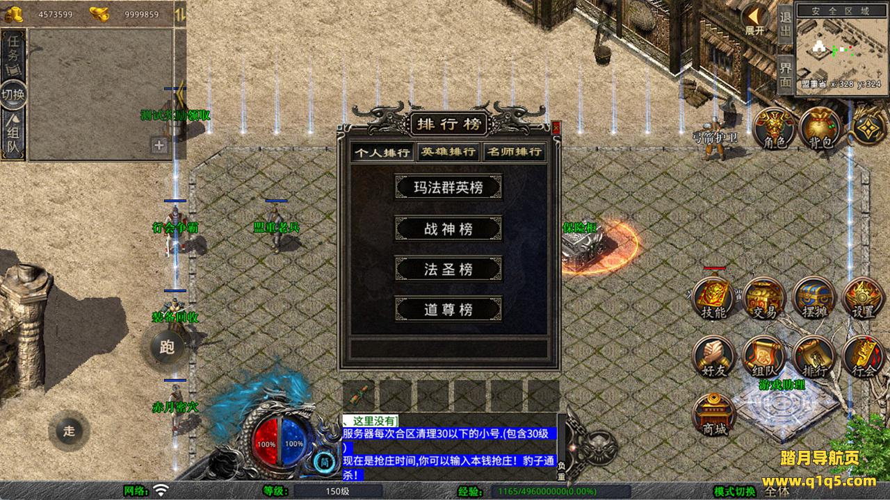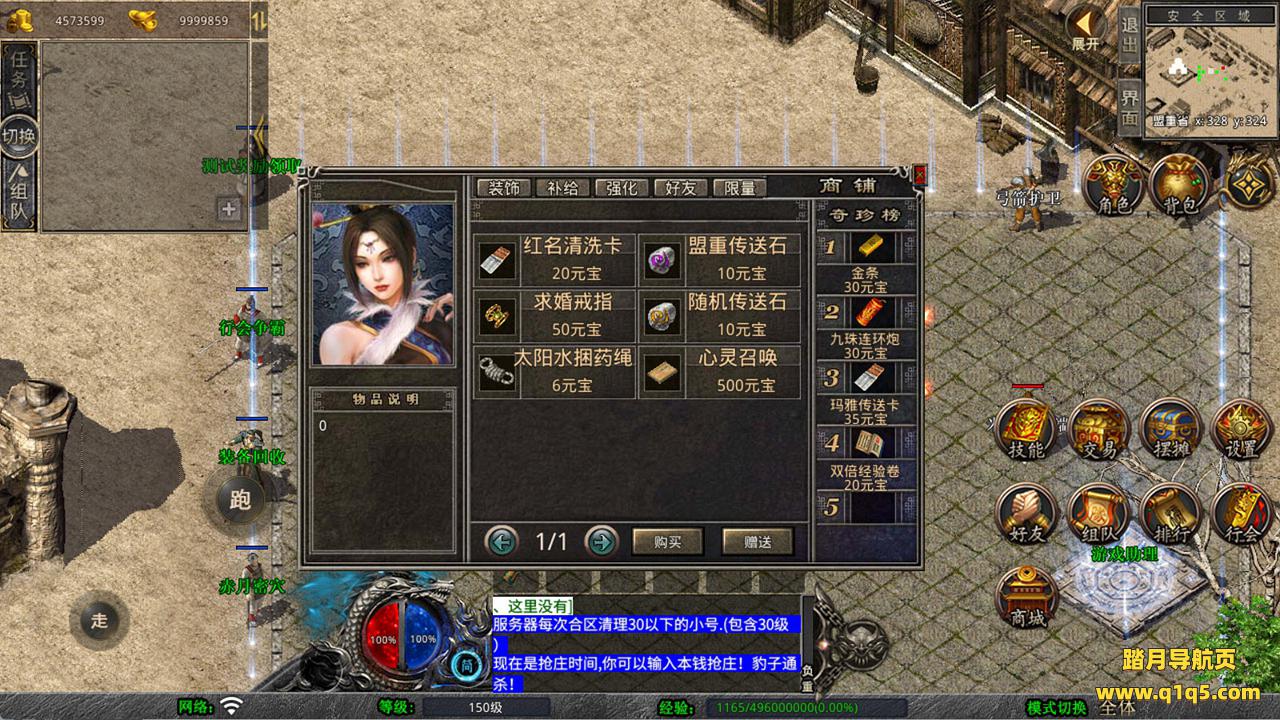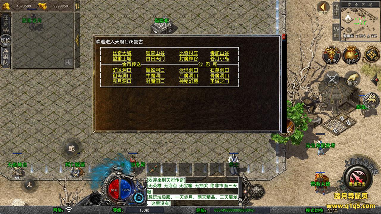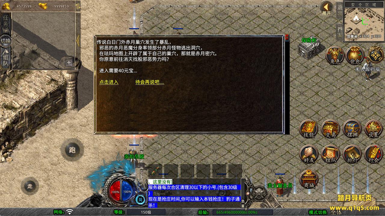 下面我们来测试下游戏里的功能看看。好了,其他功能就自行测试吧。更多的游戏资源可以访问www.q1q5.com下载,我们每款游戏资源均单独制作的有独立的视频架设教程,让小白也可以快速上手游戏架设,快来体验自己做GM的乐趣吧!