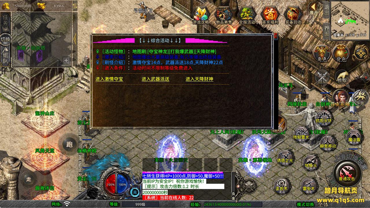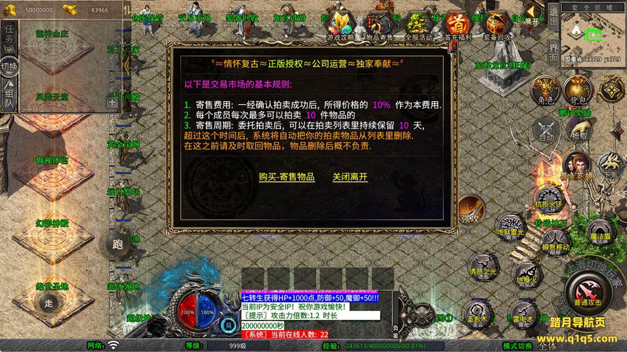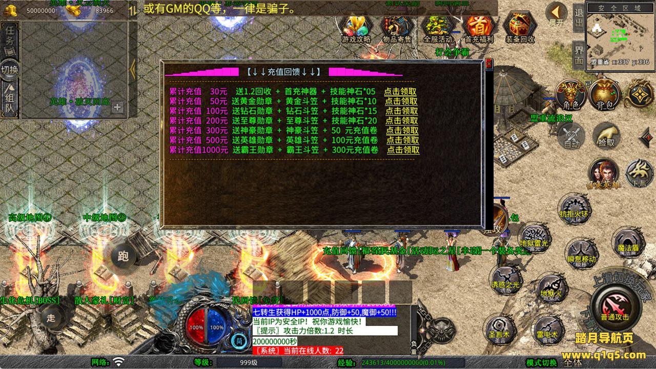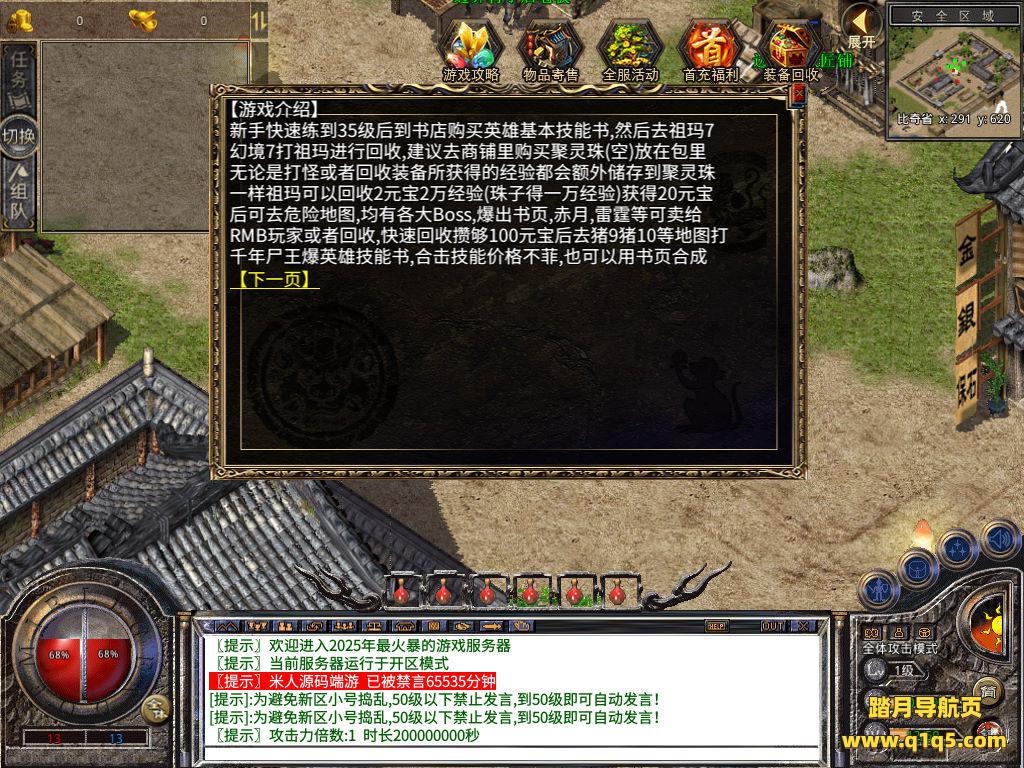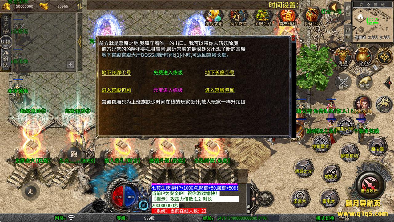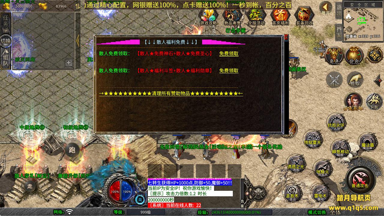 下面我们来测试下游戏里的功能看看。好了,其他功能就自行测试吧。更多的游戏资源可以访问www.q1q5.com下载,我们每款游戏资源均单独制作了独立的视频架设教程,让小白也可以快速上手游戏架设,快来体验自己做GM的乐趣吧!