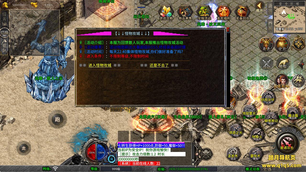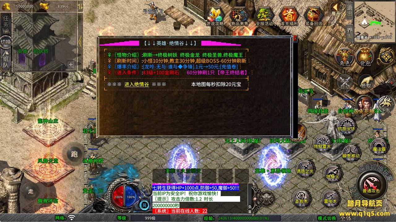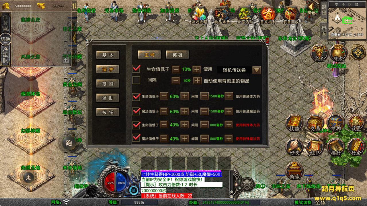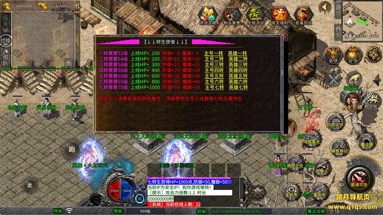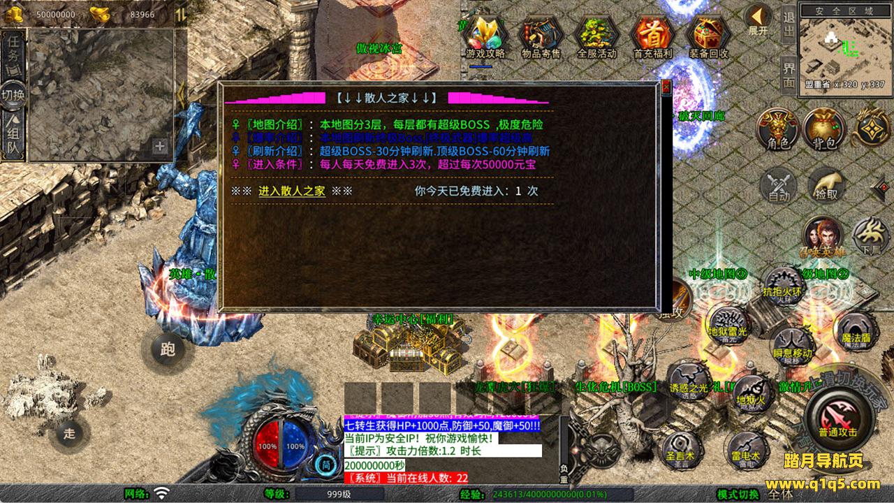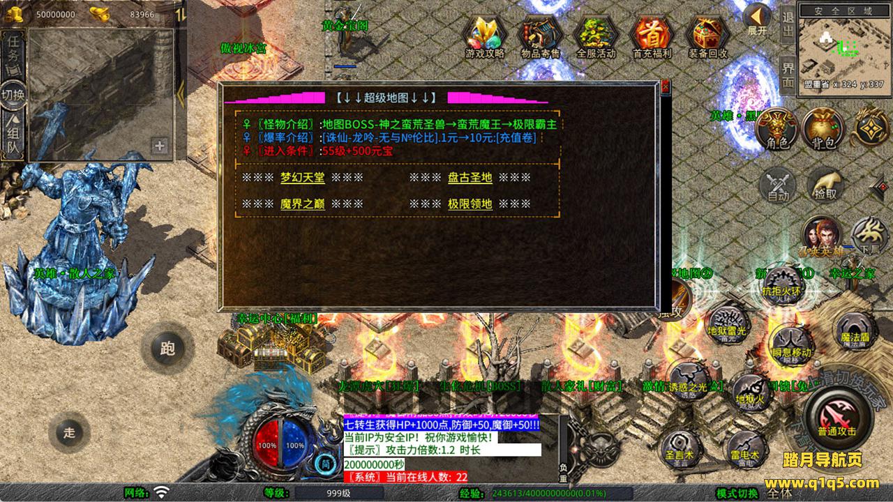 下面我们来测试下游戏里的功能看看。好了,其他功能就自行测试吧。更多的游戏资源可以访问www.q1q5.com下载,我们每款游戏资源均单独制作了独立的视频架设教程,让小白也可以快速上手游戏架设,快来体验自己做GM的乐趣吧!