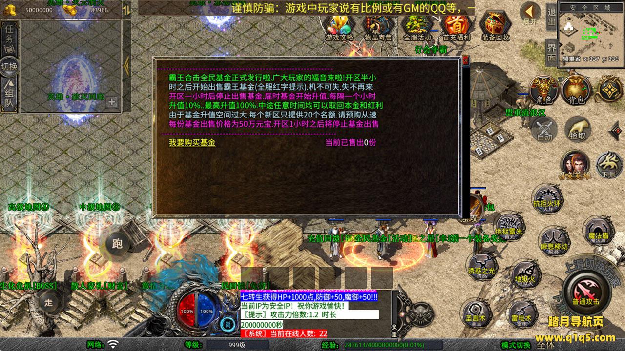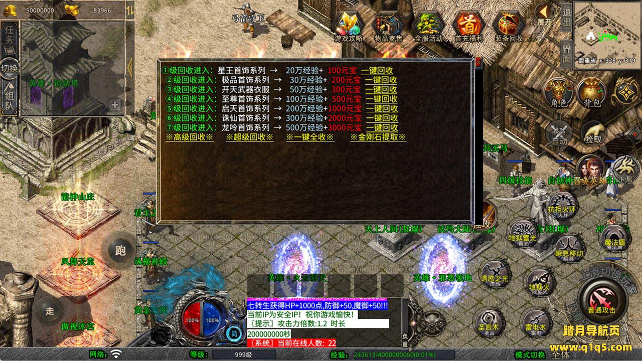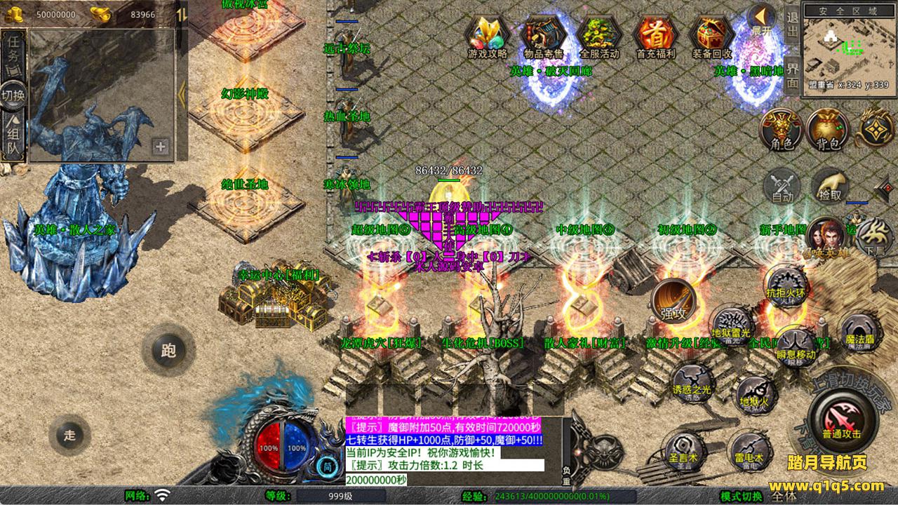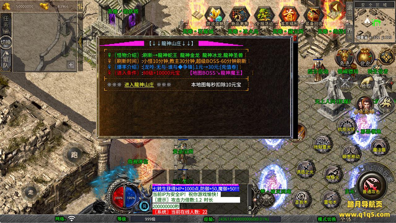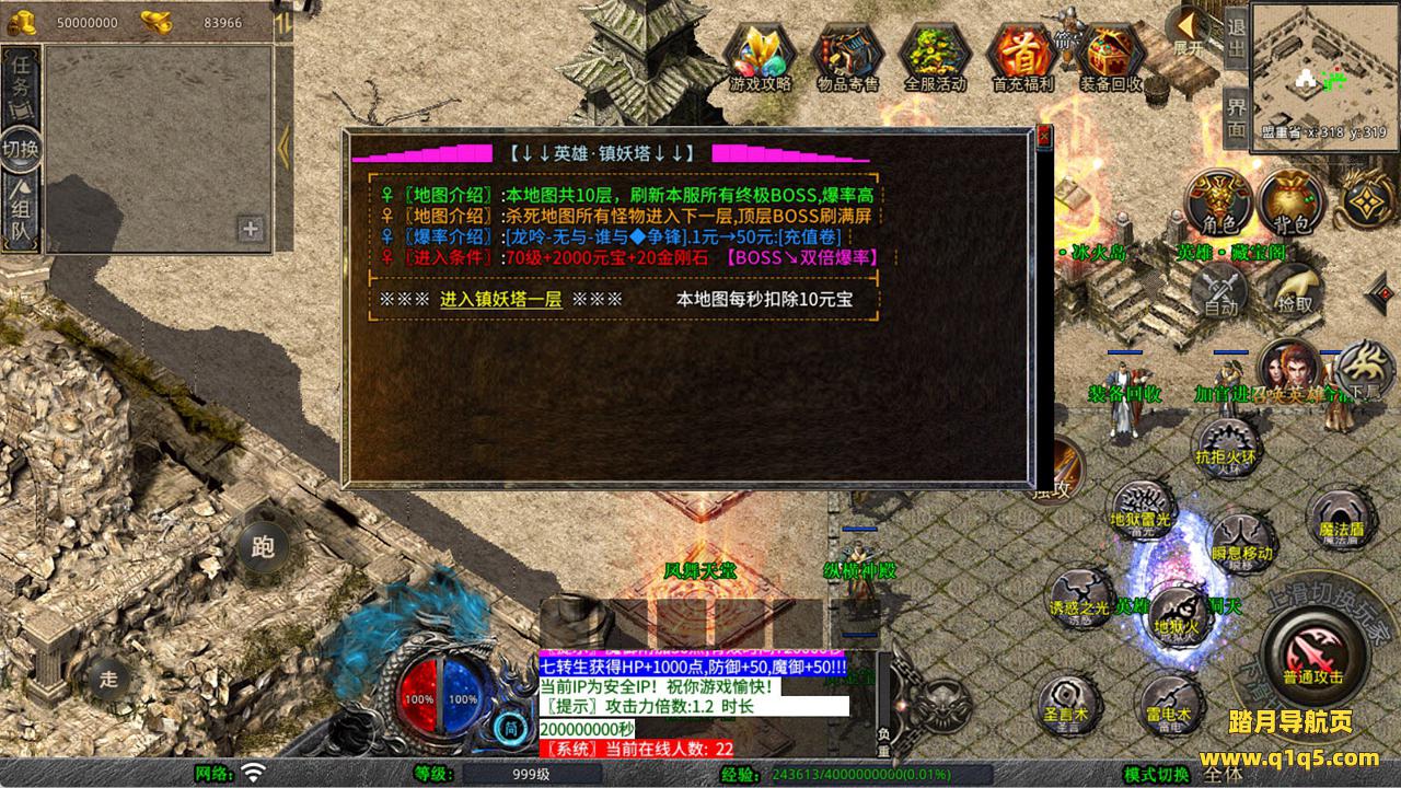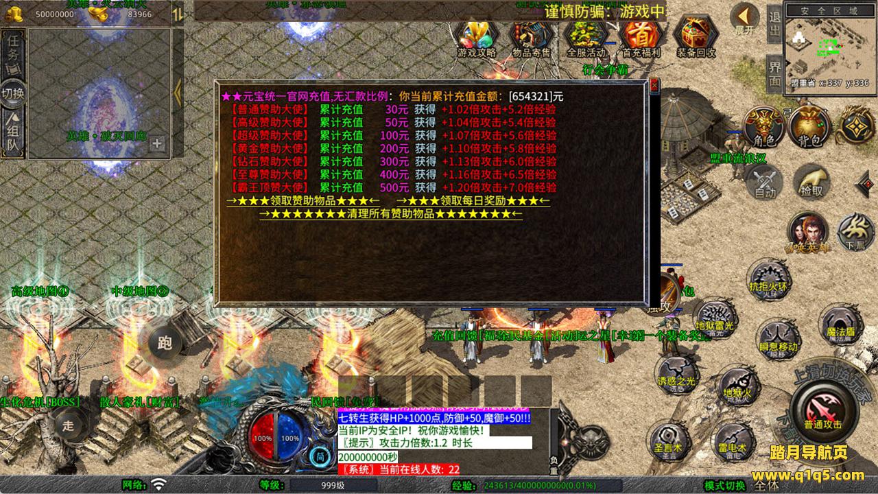 下面我们来测试下游戏里的功能看看。好了,其他功能就自行测试吧。更多的游戏资源可以访问www.q1q5.com下载,我们每款游戏资源均单独制作了独立的视频架设教程,让小白也可以快速上手游戏架设,快来体验自己做GM的乐趣吧!