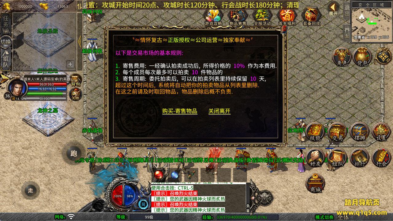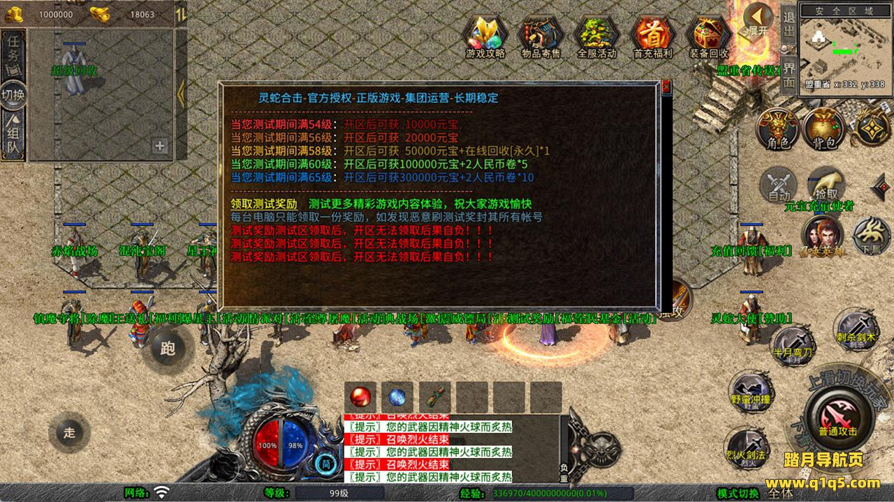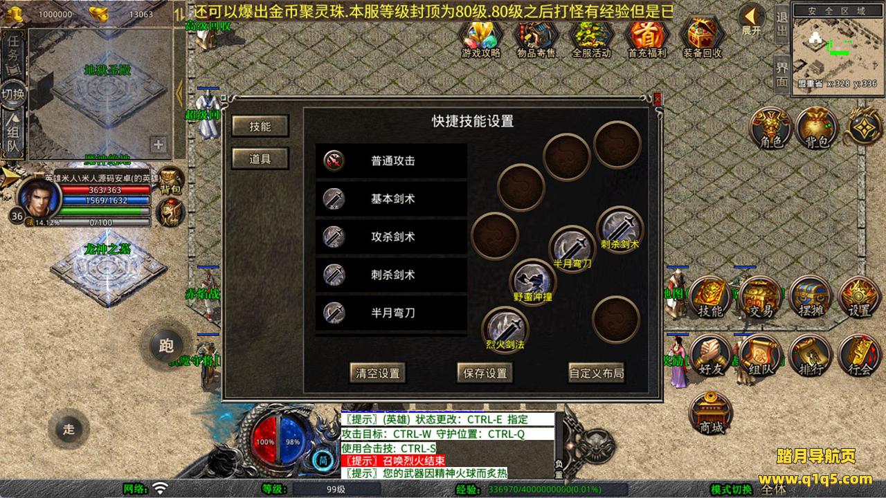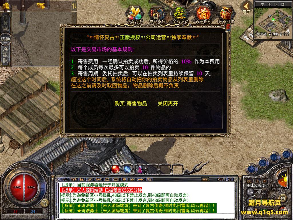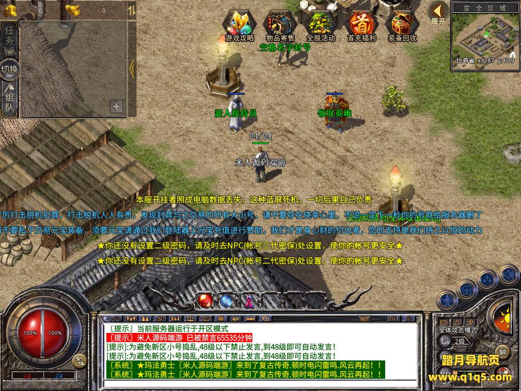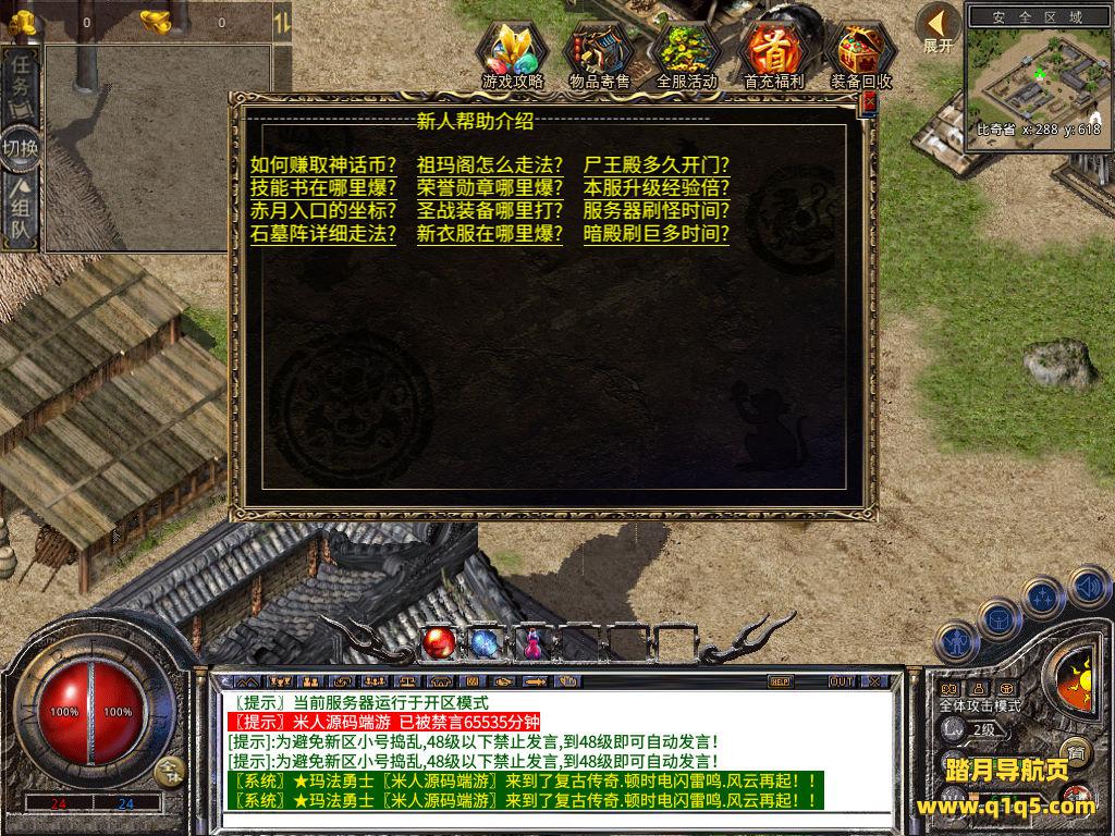 下面我们测试下游戏里的功能看看。好了,其他功能就自行测试吧。更多的游戏资源可以访问www.q1q5.com下载,我们每款游戏资源均单独制作的有独立的视频架设教程,让小白也可以快速上手游戏架设,快来体验自己做GM的乐趣吧!