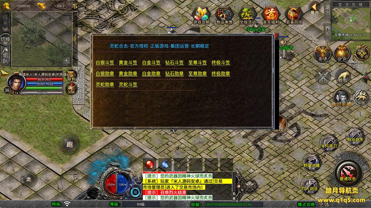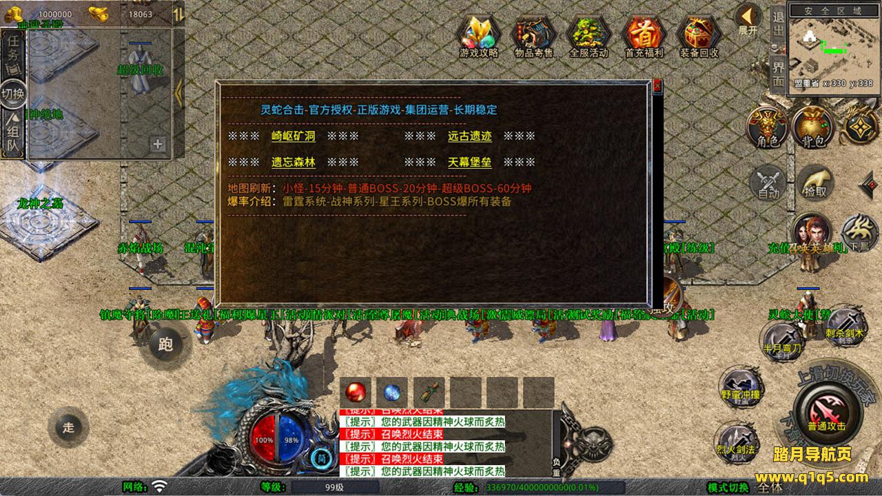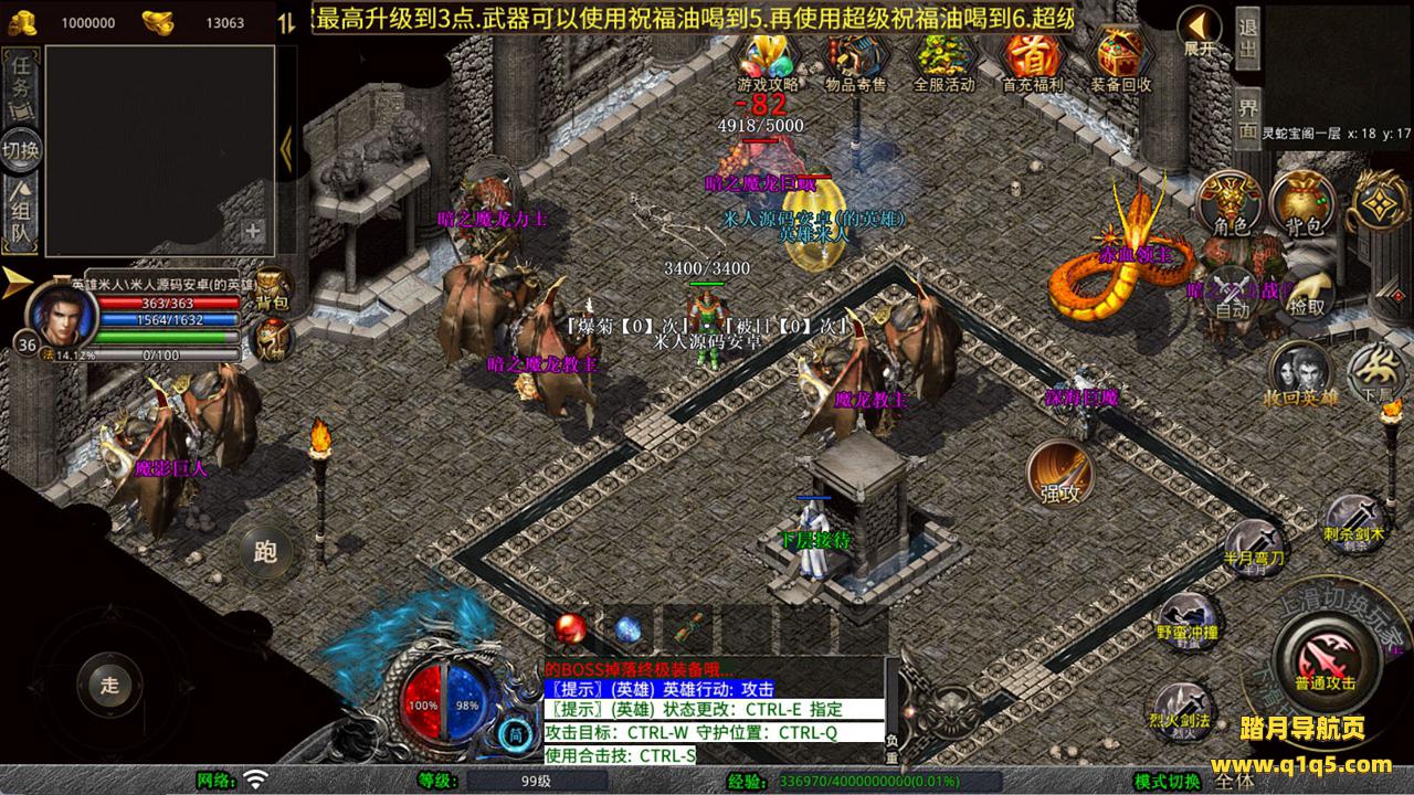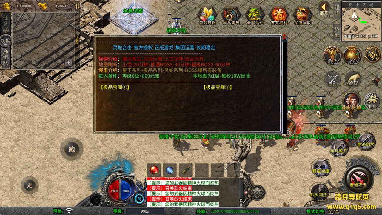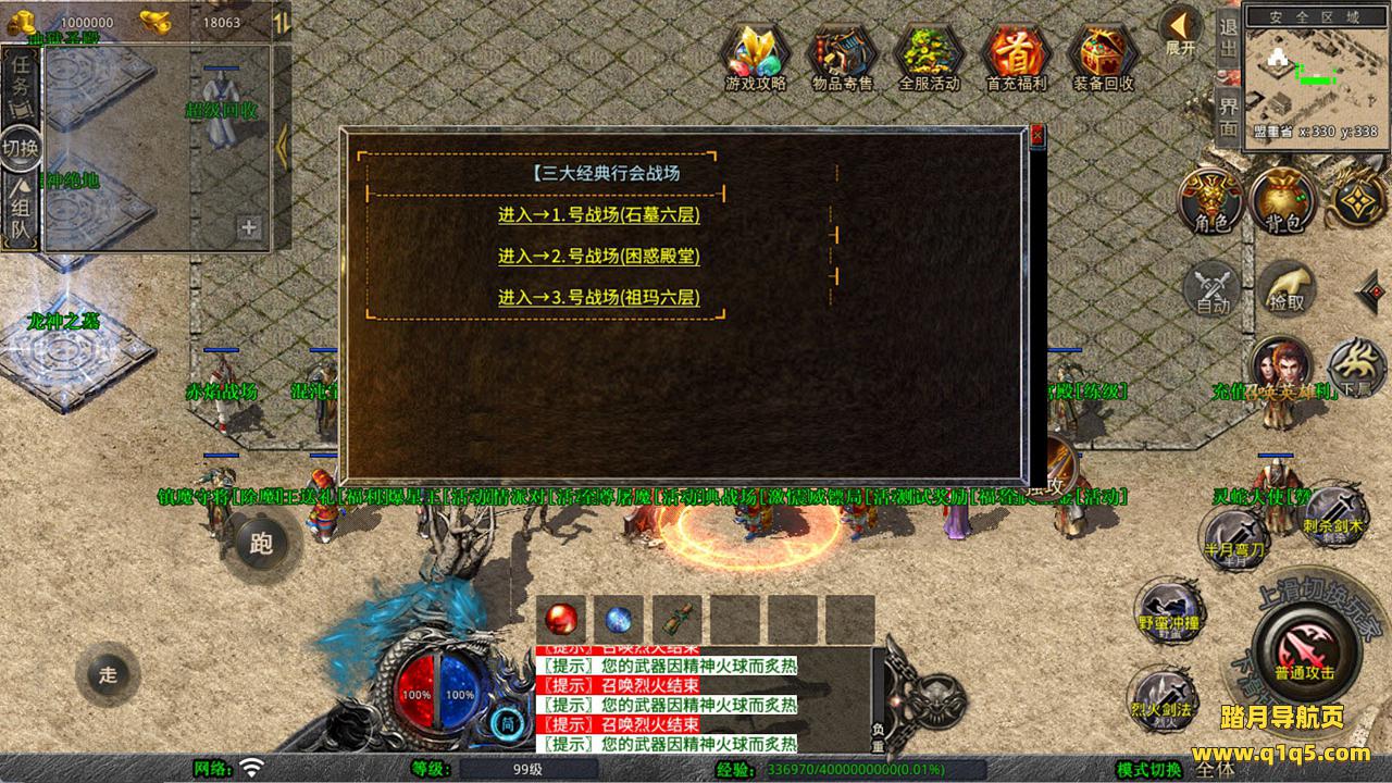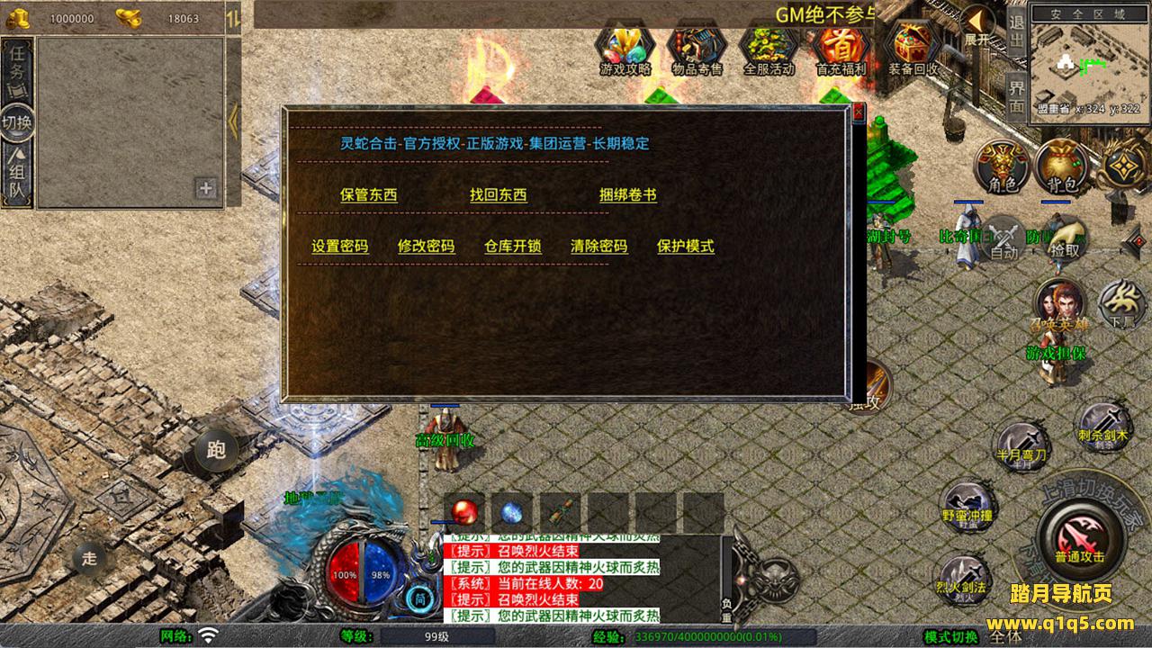 下面我们测试下游戏里的功能看看。好了,其他功能就自行测试吧。更多的游戏资源可以访问www.q1q5.com下载,我们每款游戏资源均单独制作的有独立的视频架设教程,让小白也可以快速上手游戏架设,快来体验自己做GM的乐趣吧!