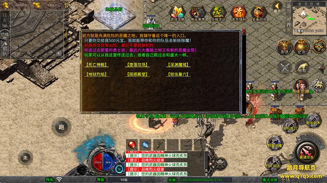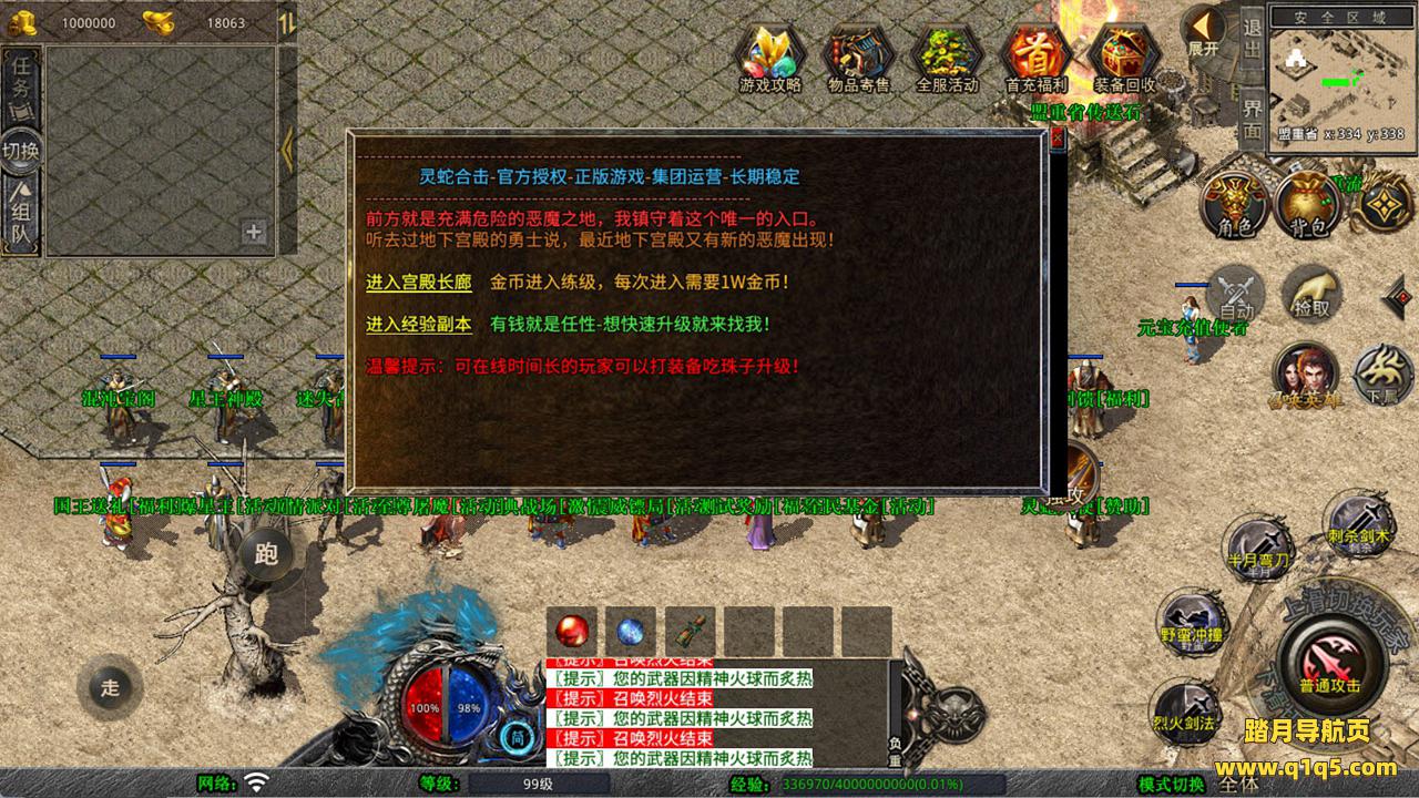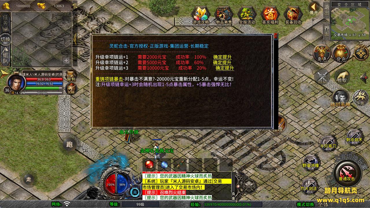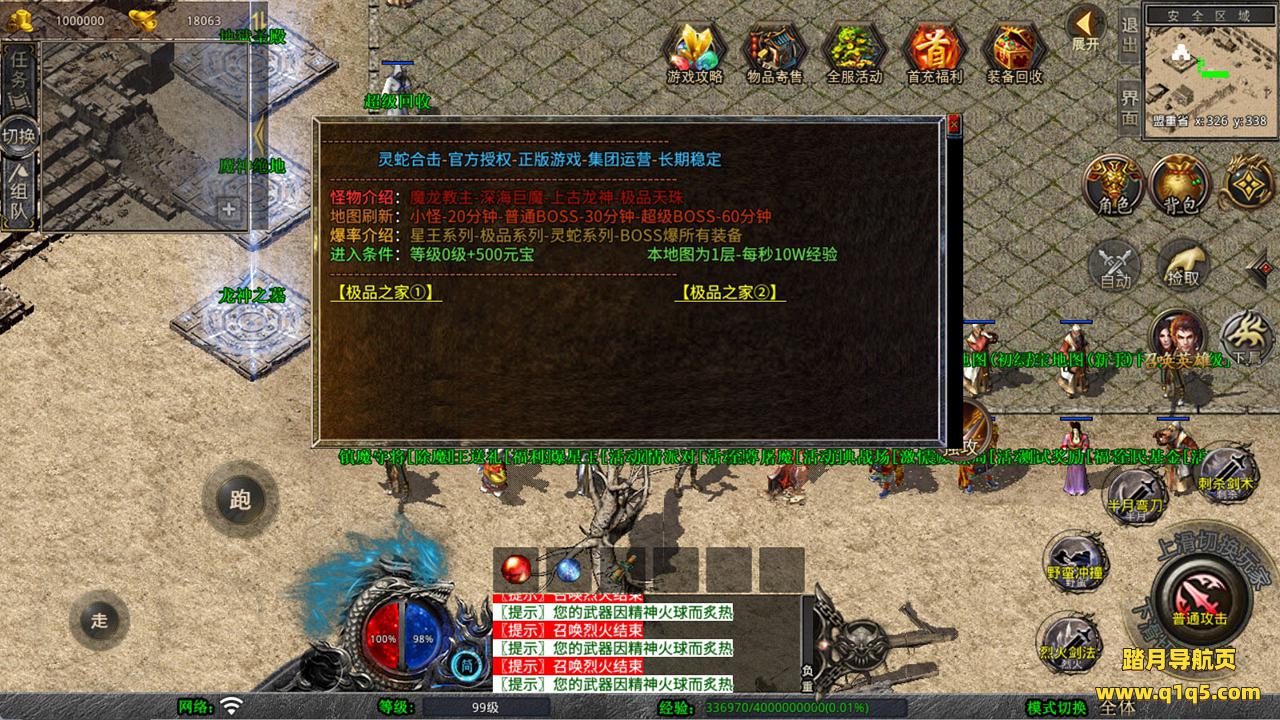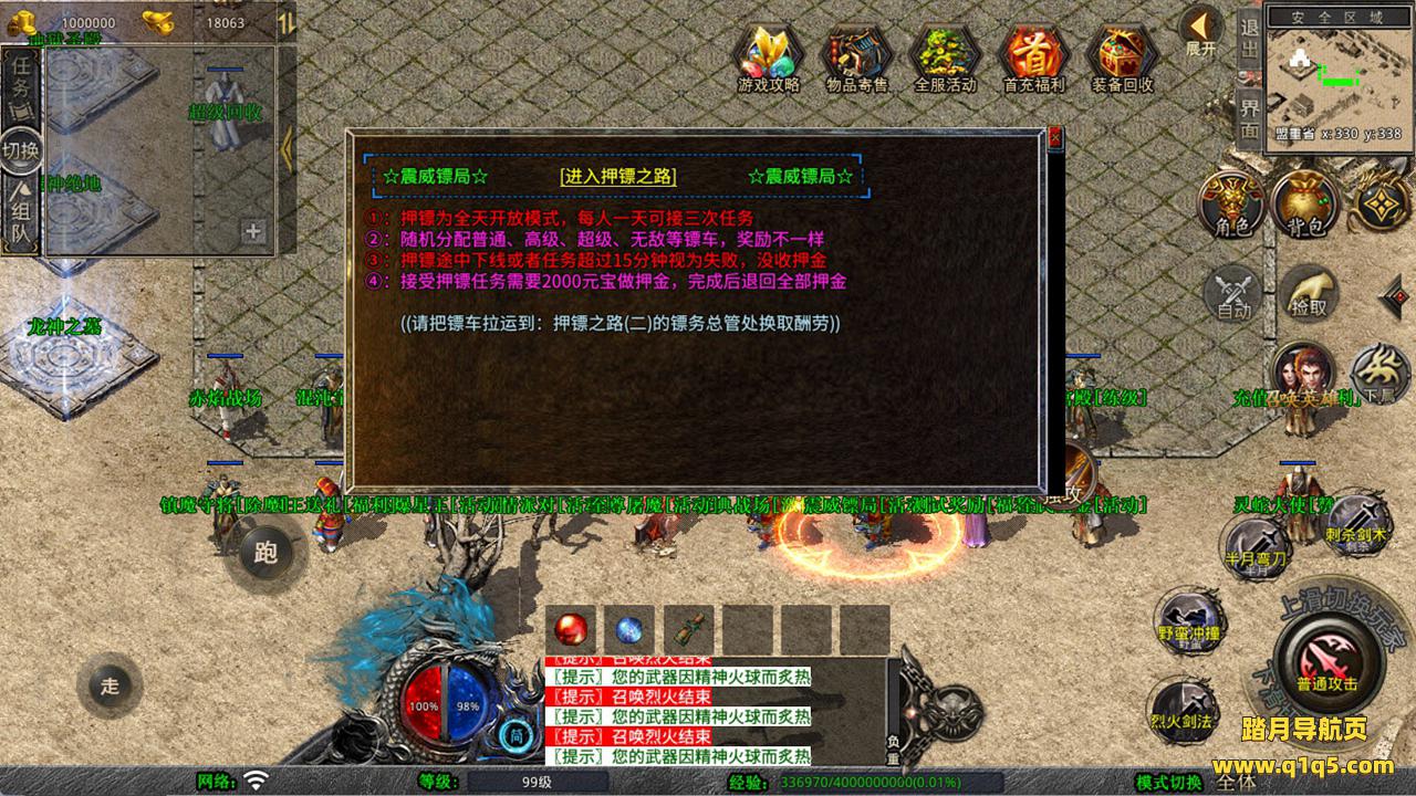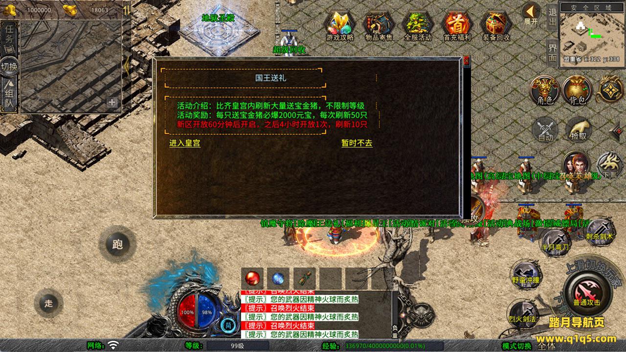 下面我们测试下游戏里的功能看看。好了,其他功能就自行测试吧。更多的游戏资源可以访问www.q1q5.com下载,我们每款游戏资源均单独制作的有独立的视频架设教程,让小白也可以快速上手游戏架设,快来体验自己做GM的乐趣吧!