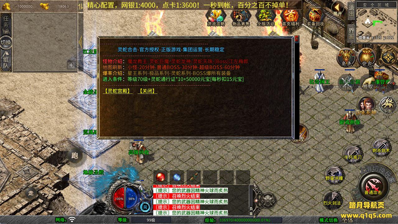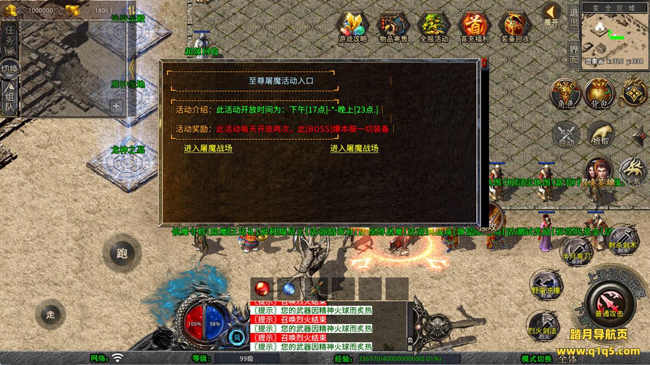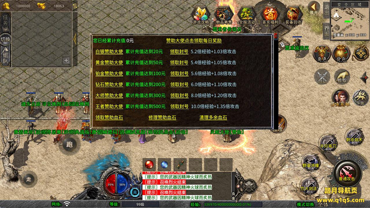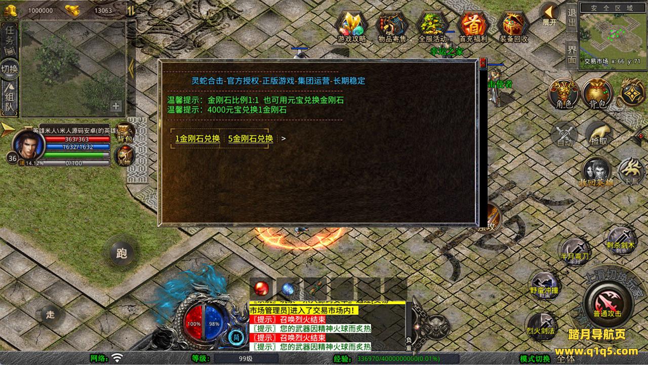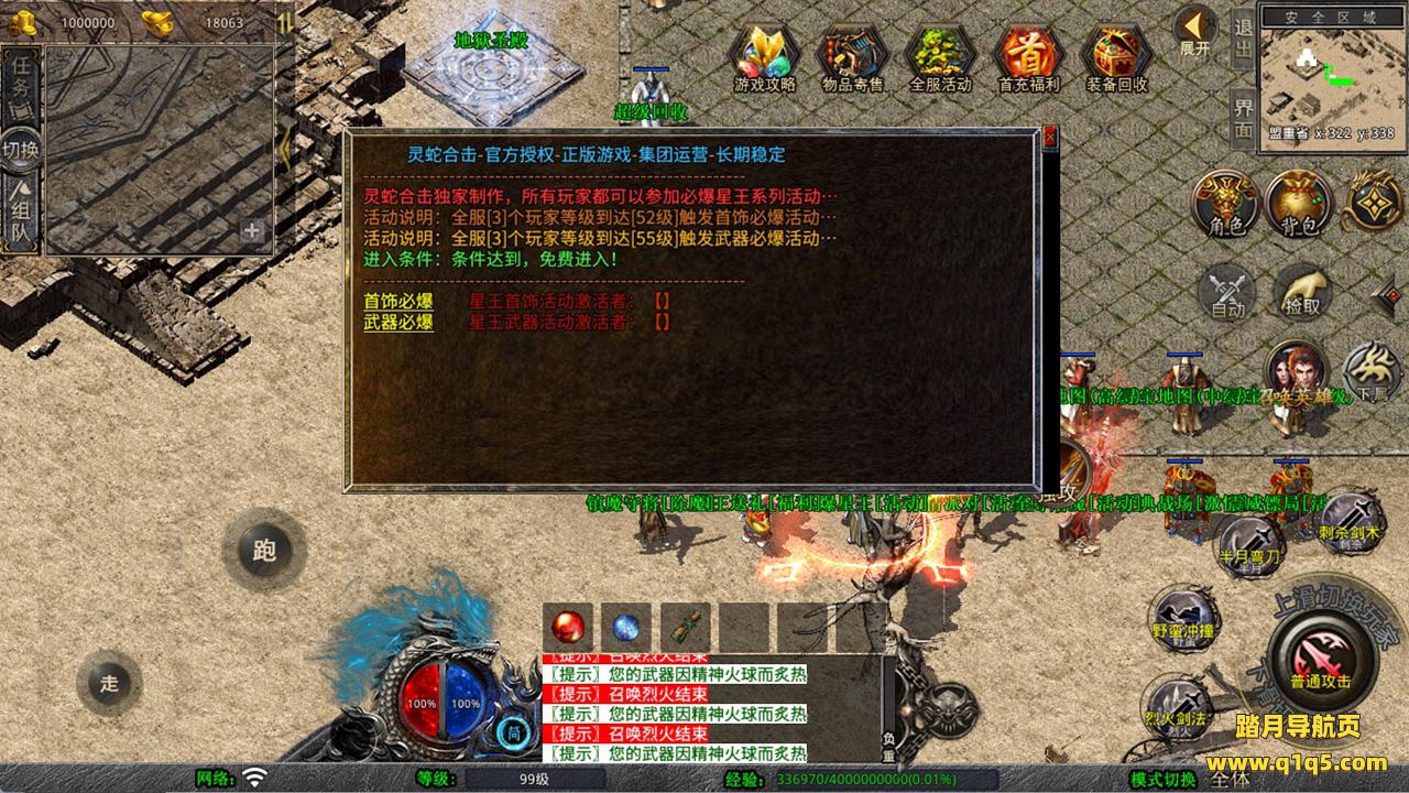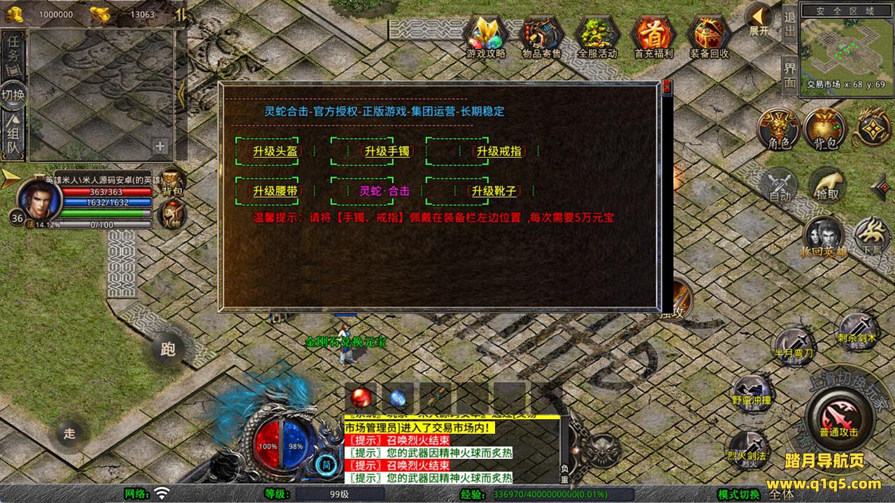 下面我们测试下游戏里的功能看看。好了,其他功能就自行测试吧。更多的游戏资源可以访问www.q1q5.com下载,我们每款游戏资源均单独制作的有独立的视频架设教程,让小白也可以快速上手游戏架设,快来体验自己做GM的乐趣吧!